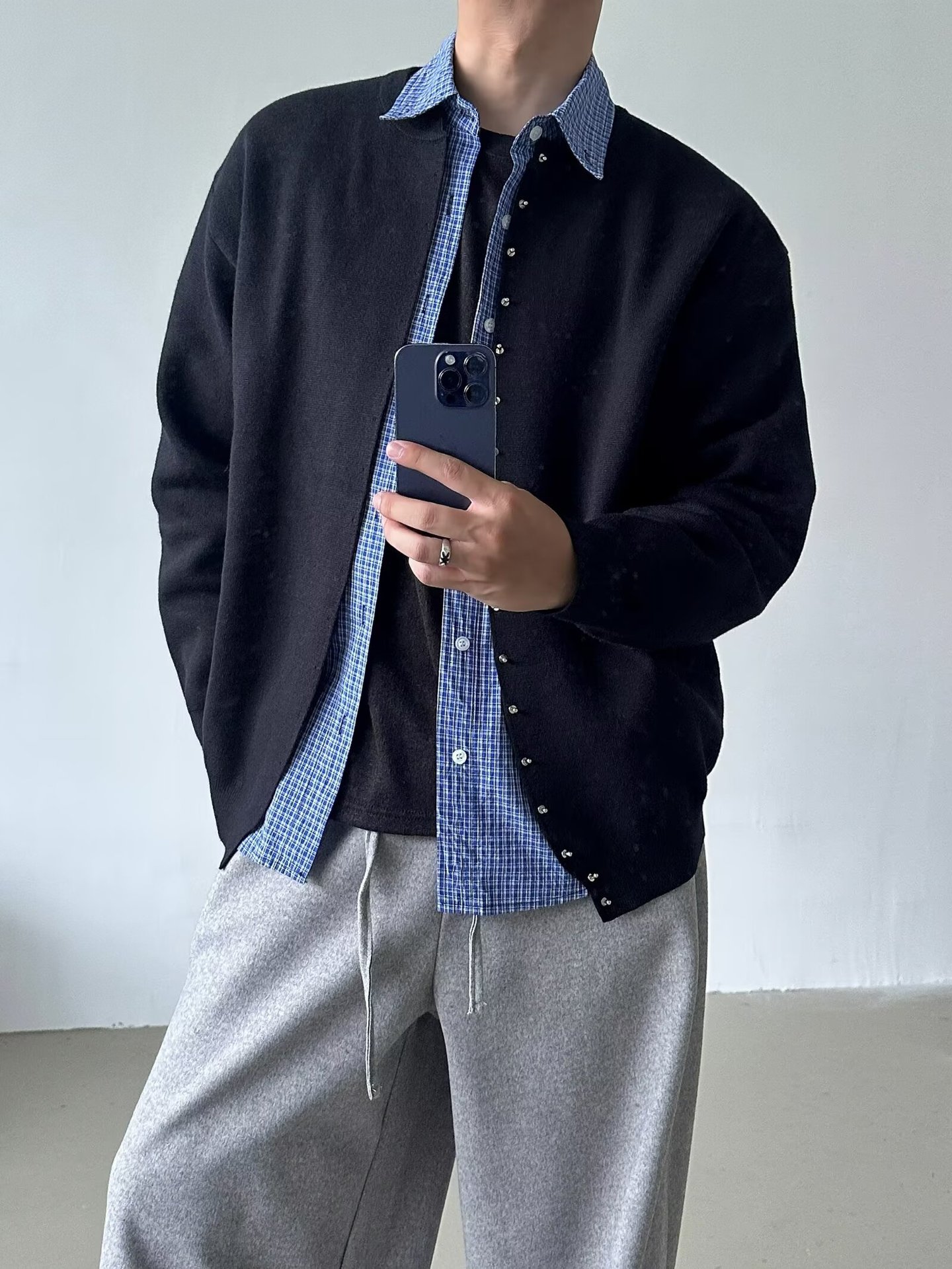 가을과 겨울 새로운 디자인 센스 틈새 카디건 스웨터 재킷 남자의 게으른 스타일 느슨한 캐주얼 스웨터 탑