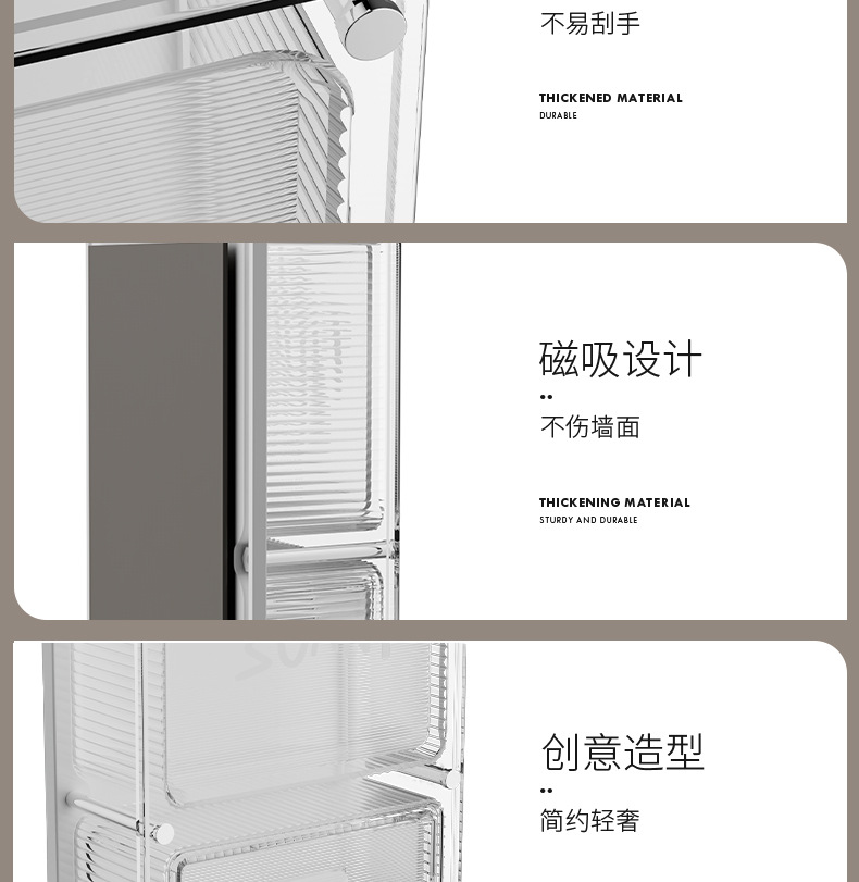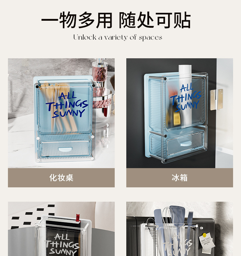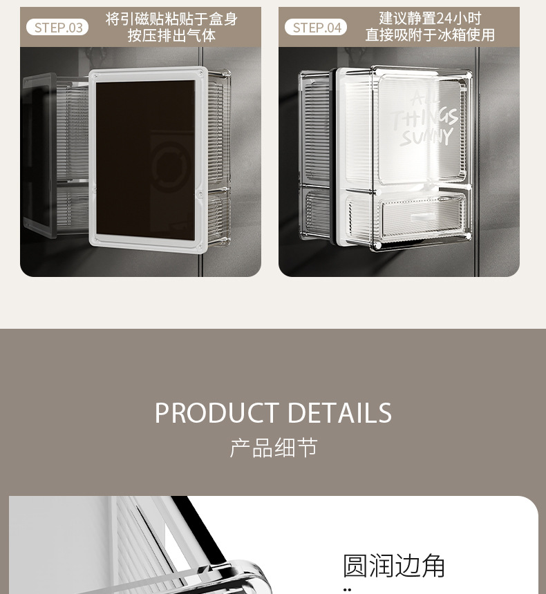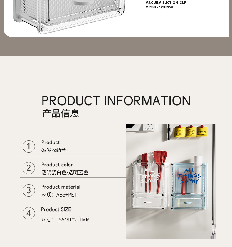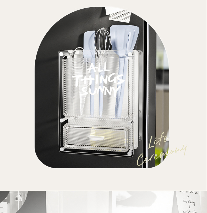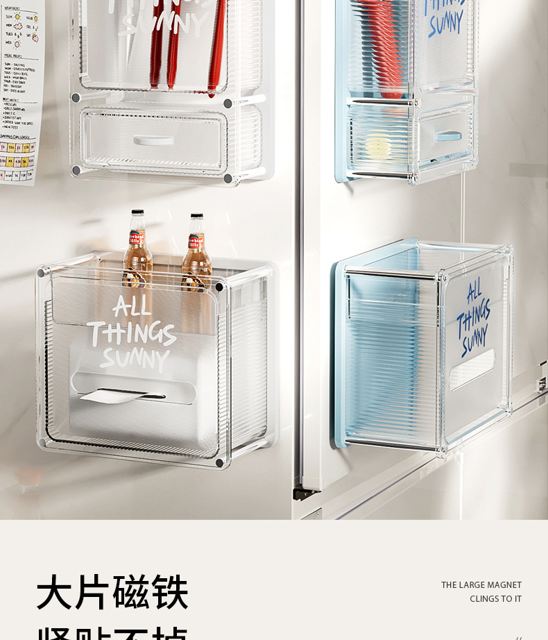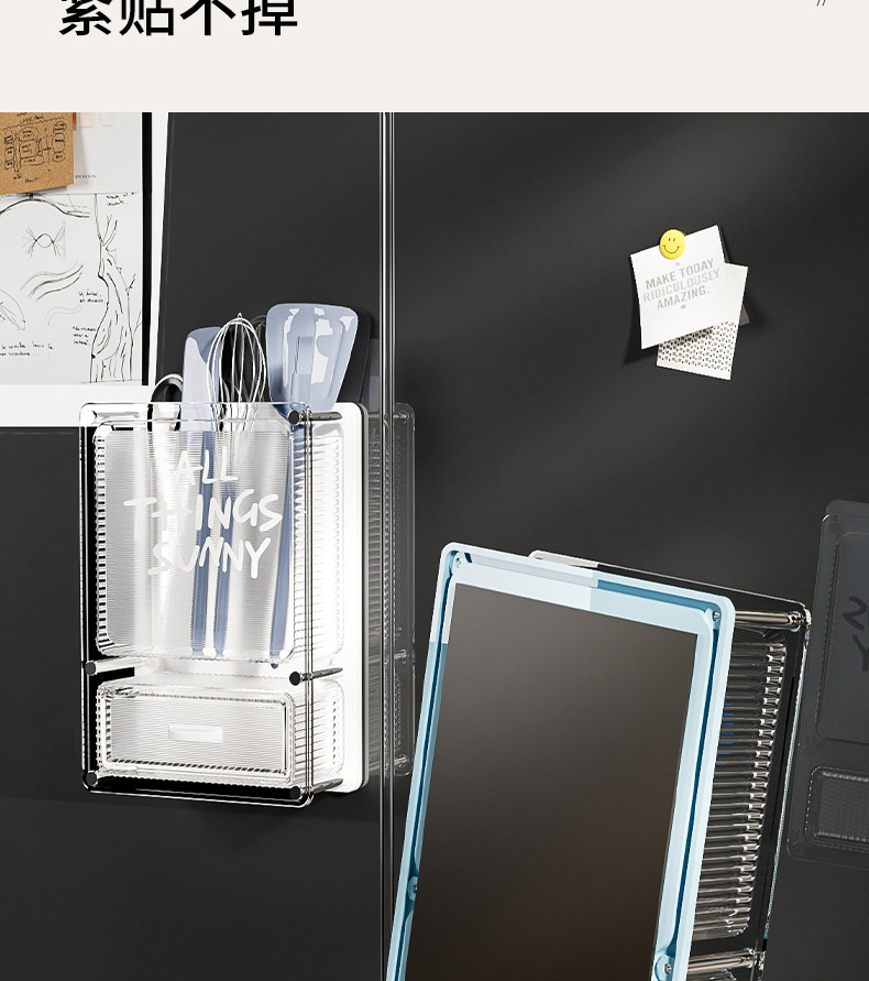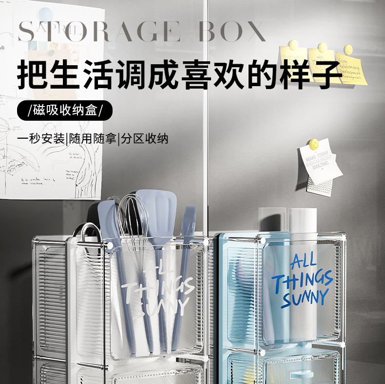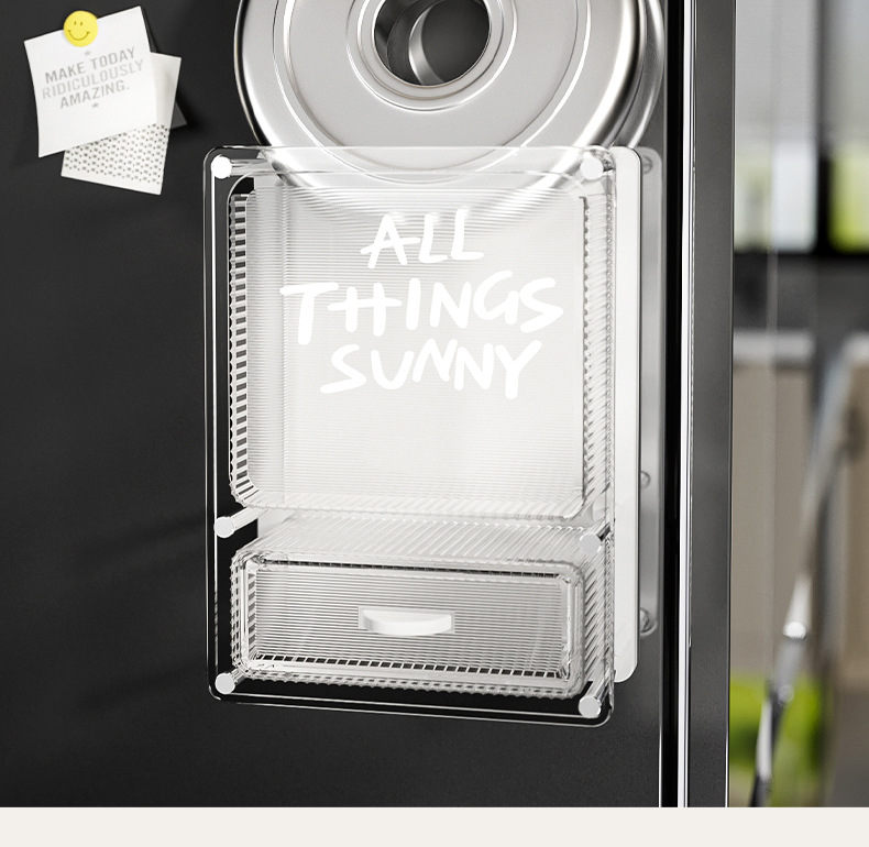 마그네틱 흡입 저장 상자 벽에 장착 된 냉장고 스티커 냉장고 문 외부 부엌 랙 아크릴 다기능 펀칭스토어 가기