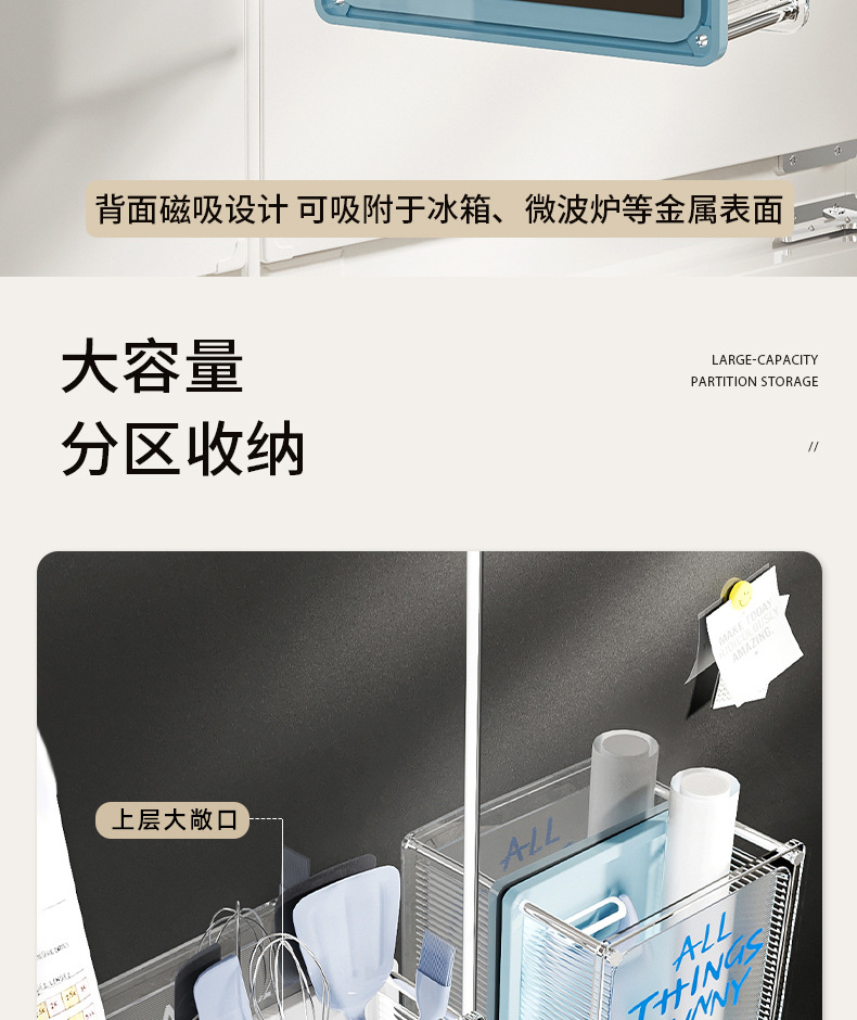 마그네틱 흡입 저장 상자 벽에 장착 된 냉장고 스티커 냉장고 문 외부 부엌 랙 아크릴 다기능 펀칭