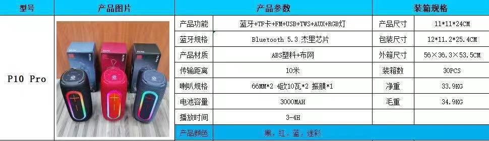 국경 간 바다 P10pro 블루투스 스피커 컴퓨터 무거운 서브 우퍼 야외 방수 RGB 빛 휴대용 오디오
