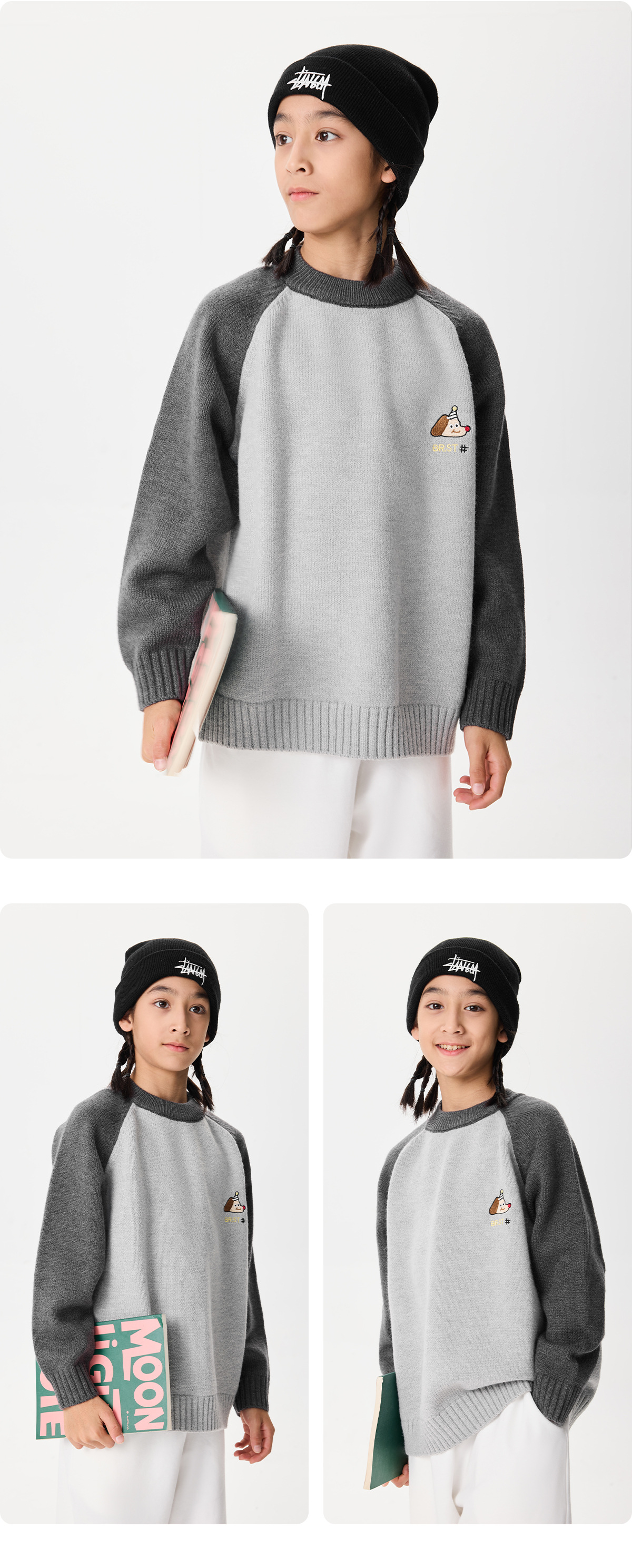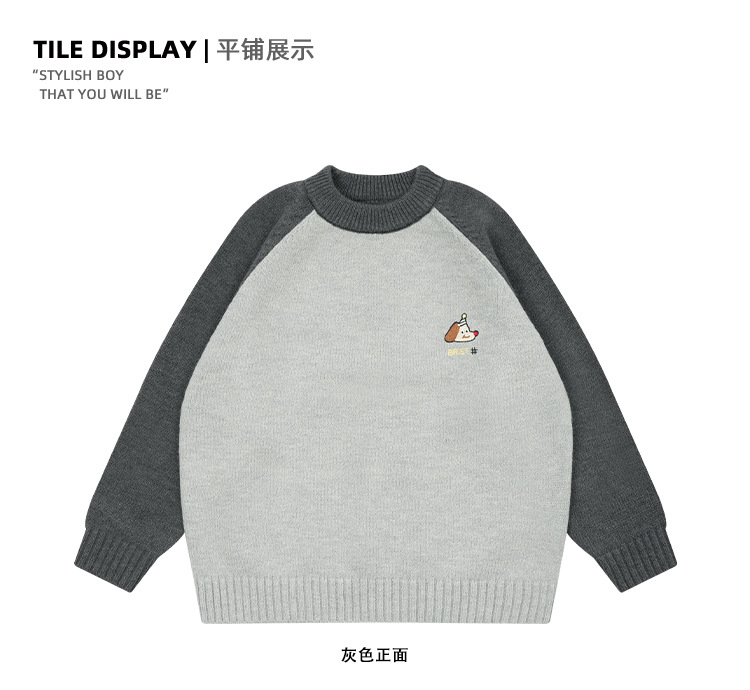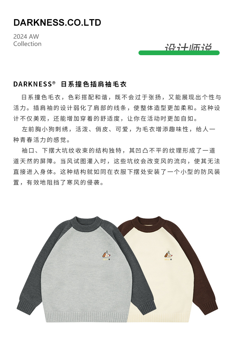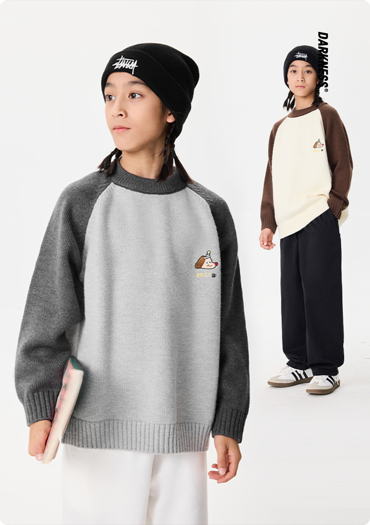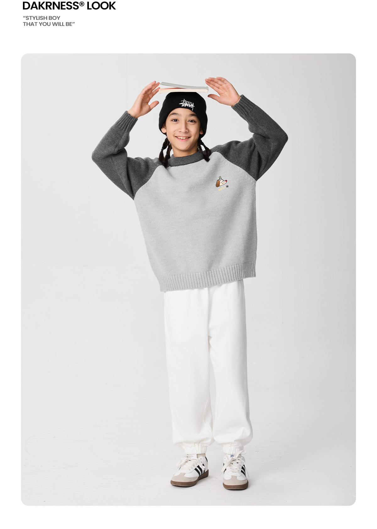 DK 아동복 2024 겨울 여자 및 소년 명암 라글란 슬리브 스웨터 어린이 올매치 일본 트렌디 니트웨어스토어 가기