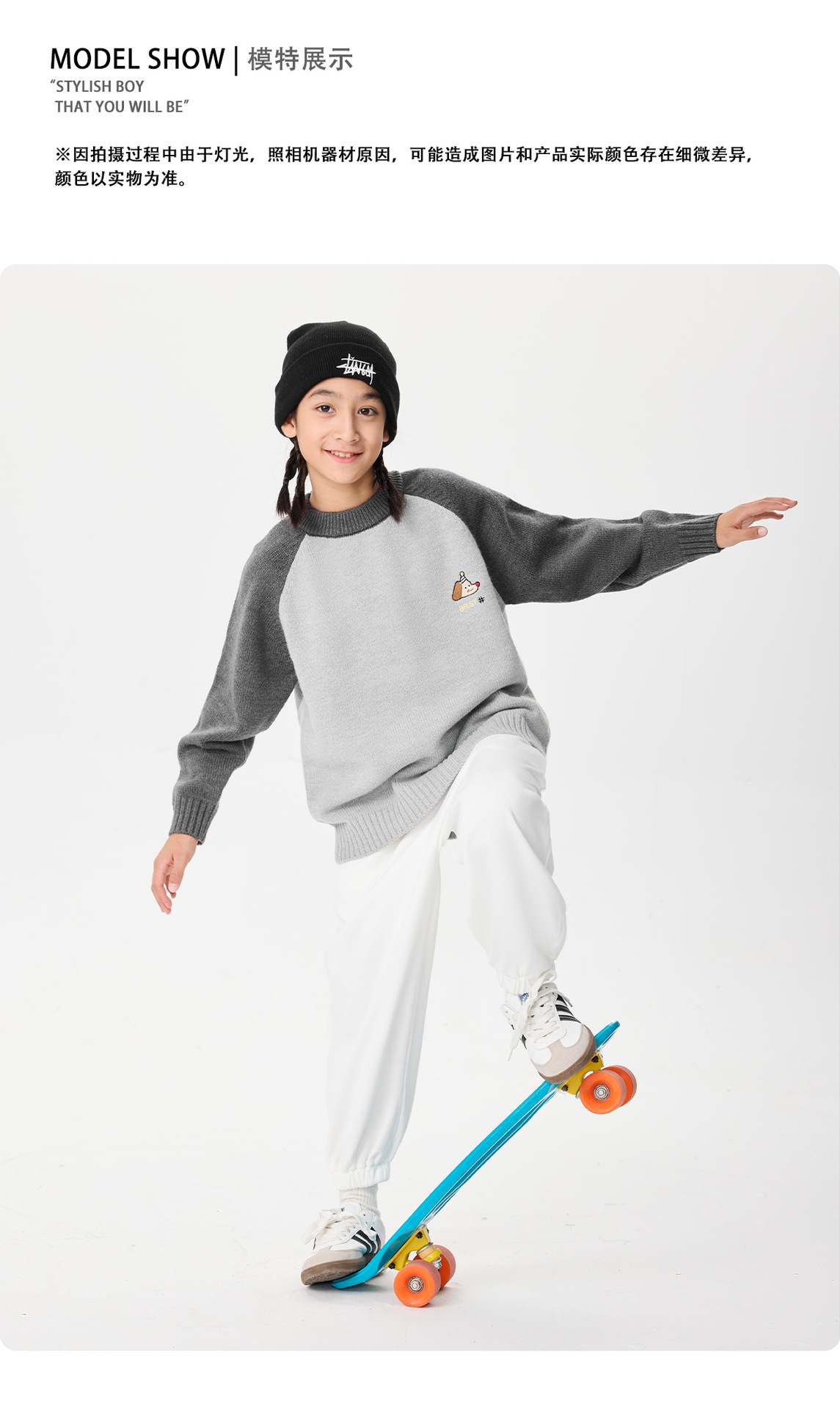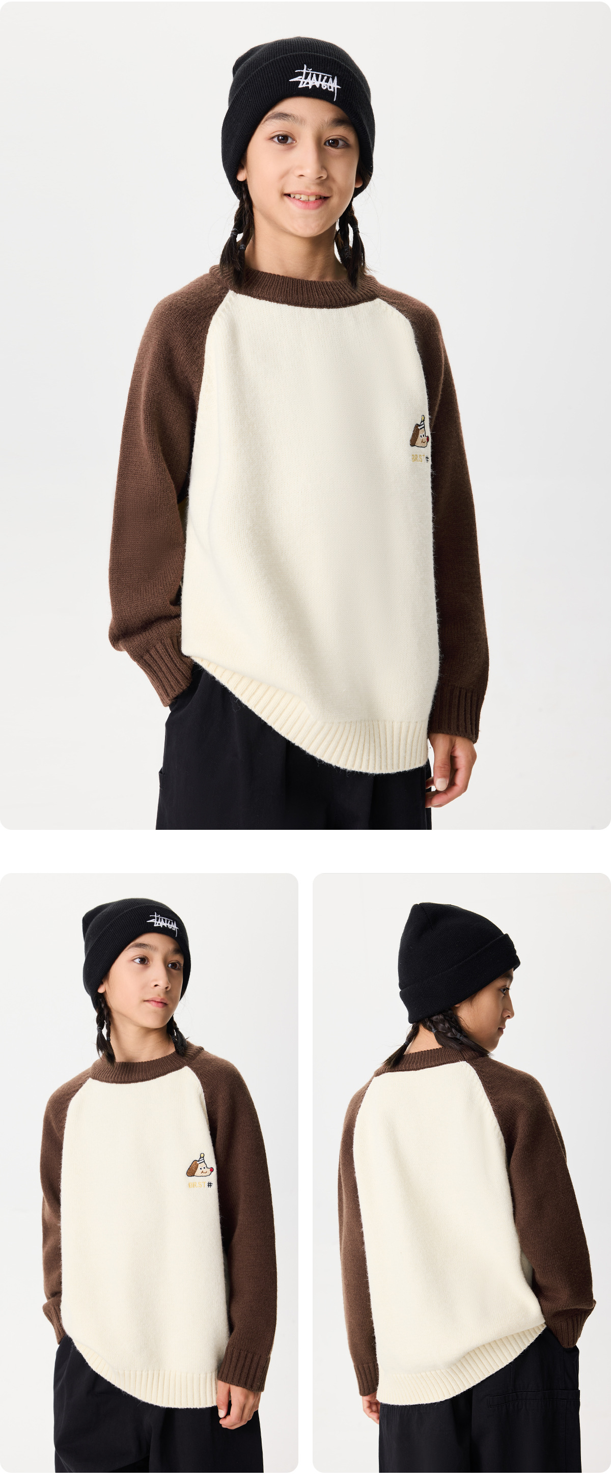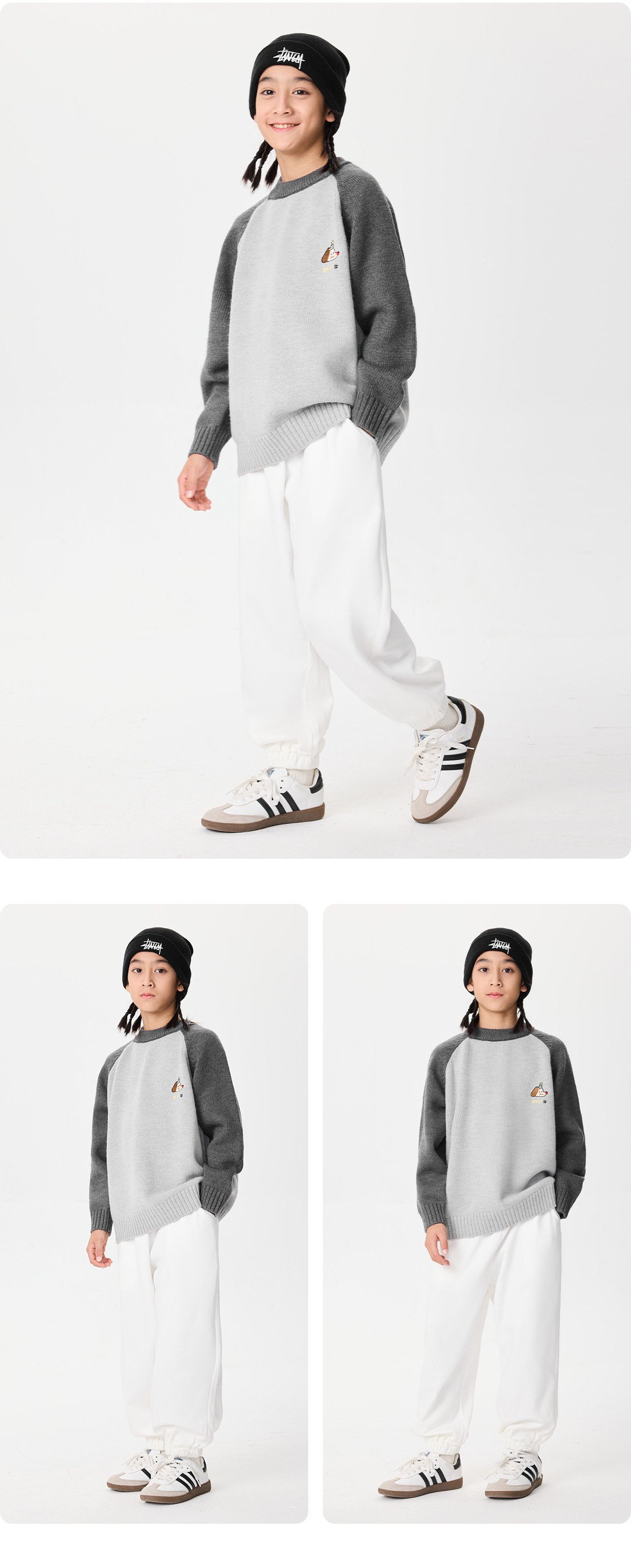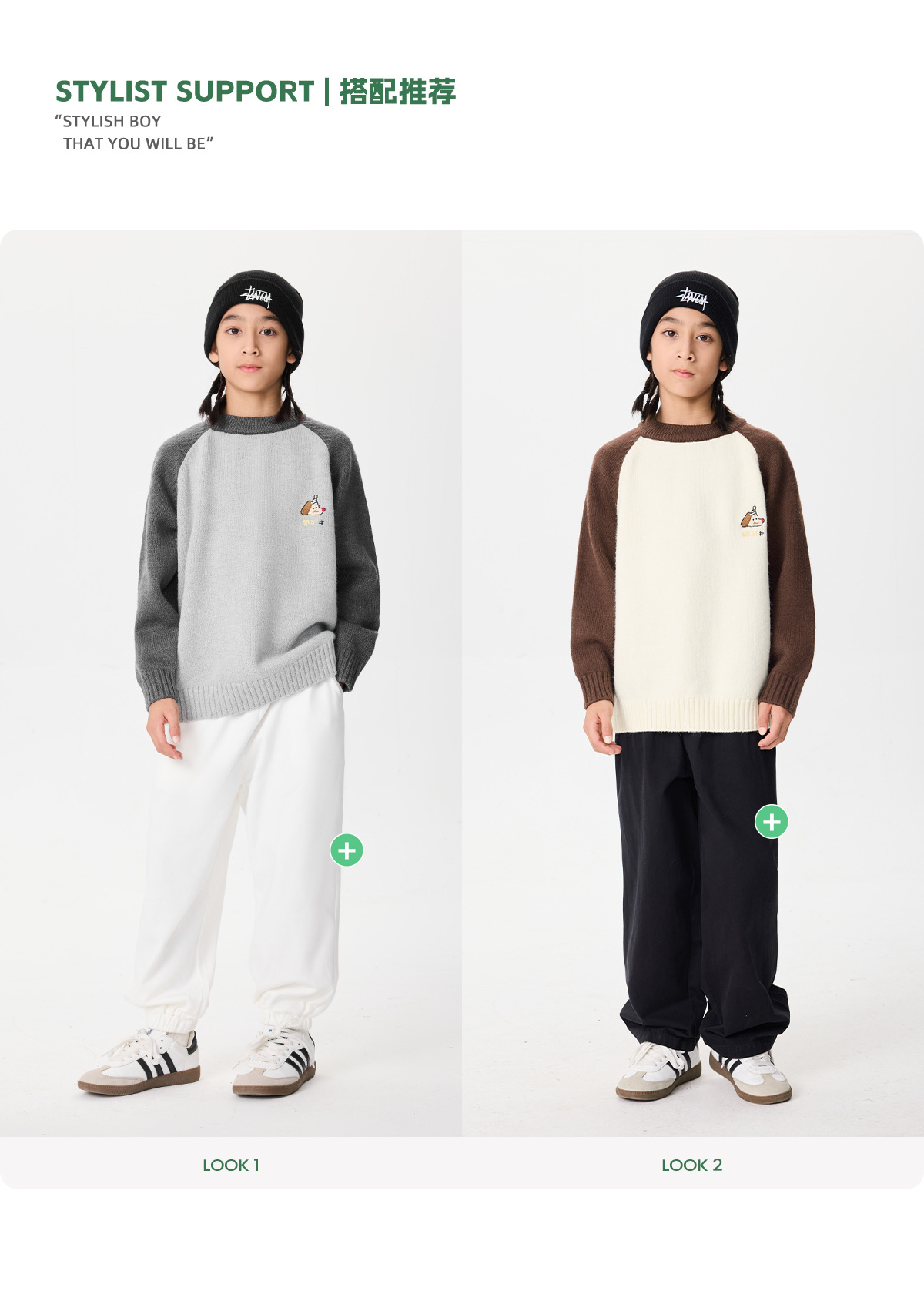 DK 아동복 2024 겨울 여자 및 소년 명암 라글란 슬리브 스웨터 어린이 올매치 일본 트렌디 니트웨어스토어 가기