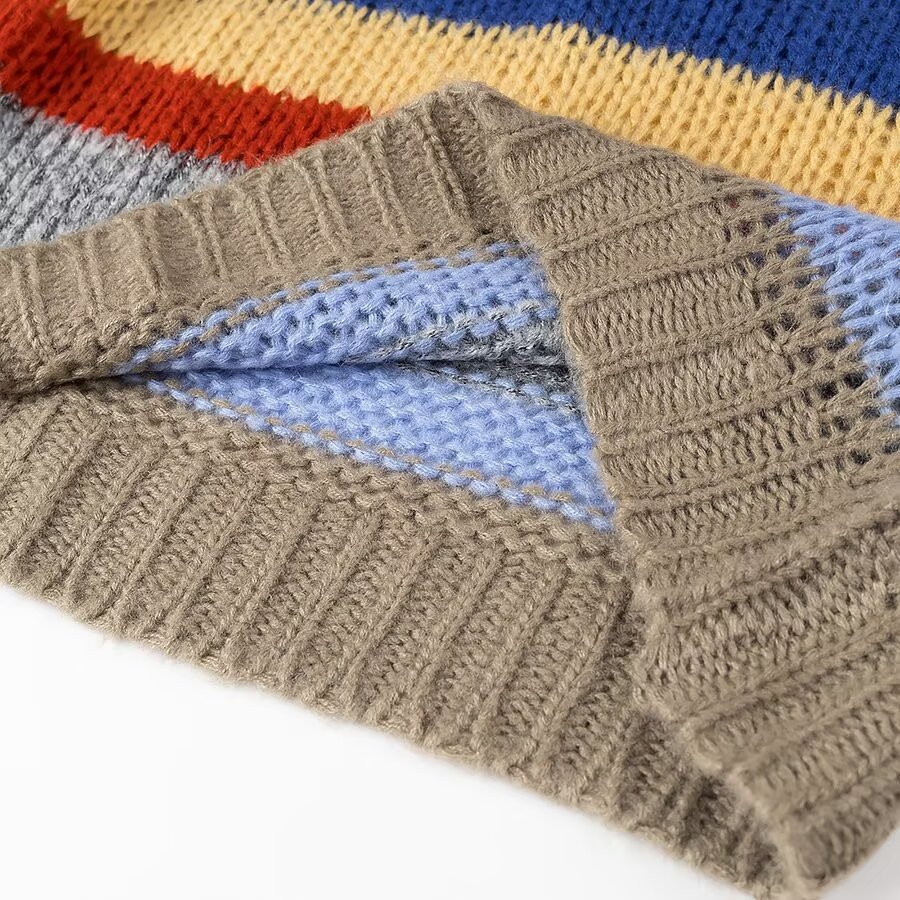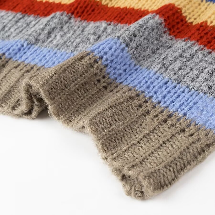 2024欧美冬新款时尚减龄百搭圆领长袖彩虹条纹针织毛衣女2271