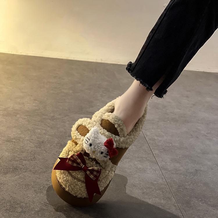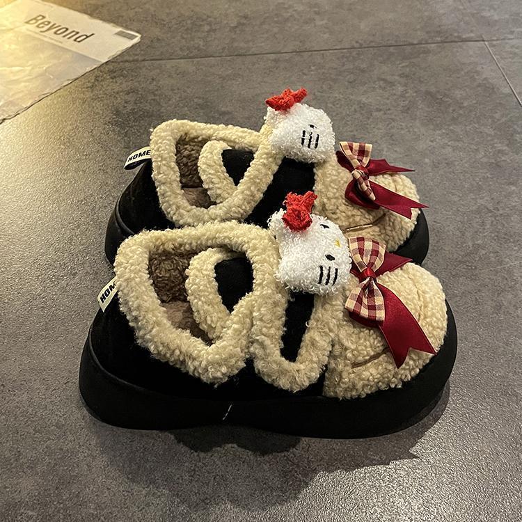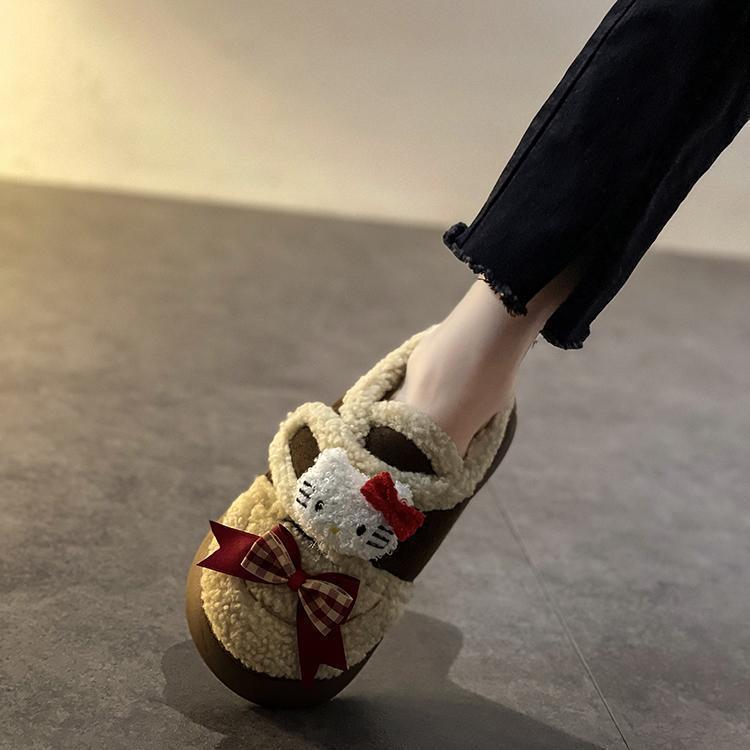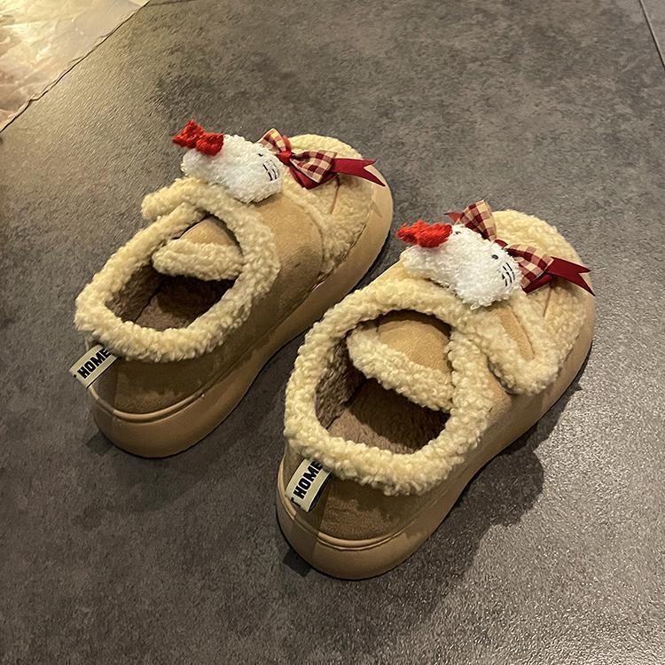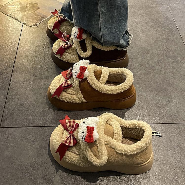 귀여운 벨크로 활 코튼 슬리퍼 여성의 2024 겨울 새로운 의상 두꺼운 밑창 기모 따뜻한 가방 뒤꿈치 코튼 슈즈스토어 가기
