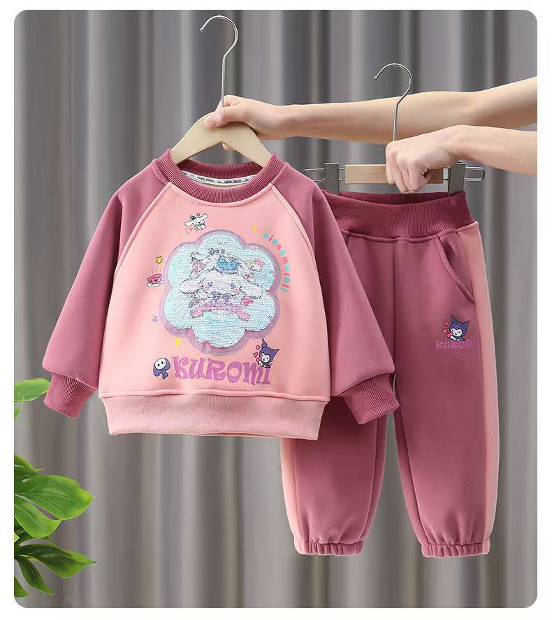 2024 겨울 새 소녀 세트 어린이 어린 소녀 서양식 쿨로 미 만화 기모 스웨트 셔츠 투피스 세트