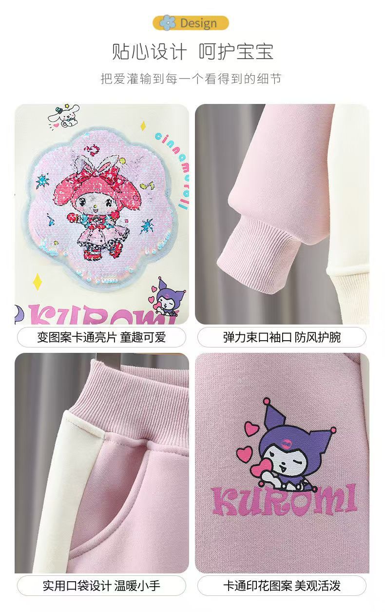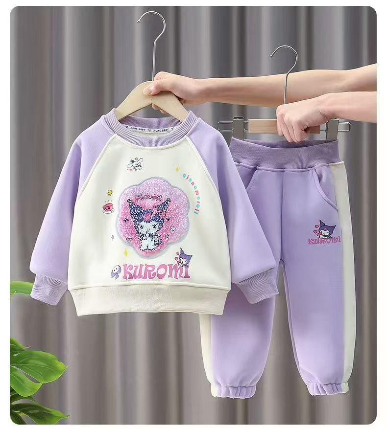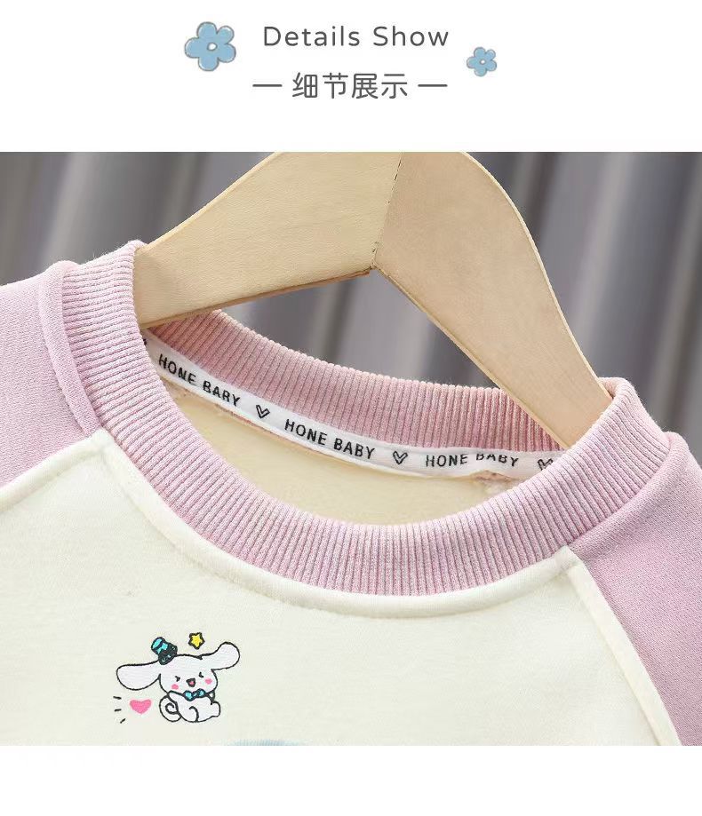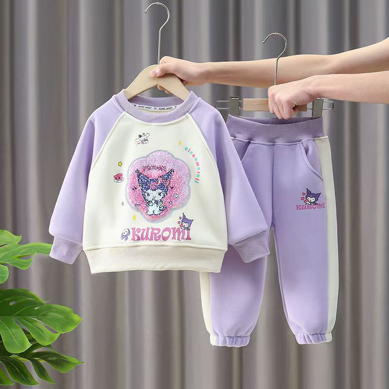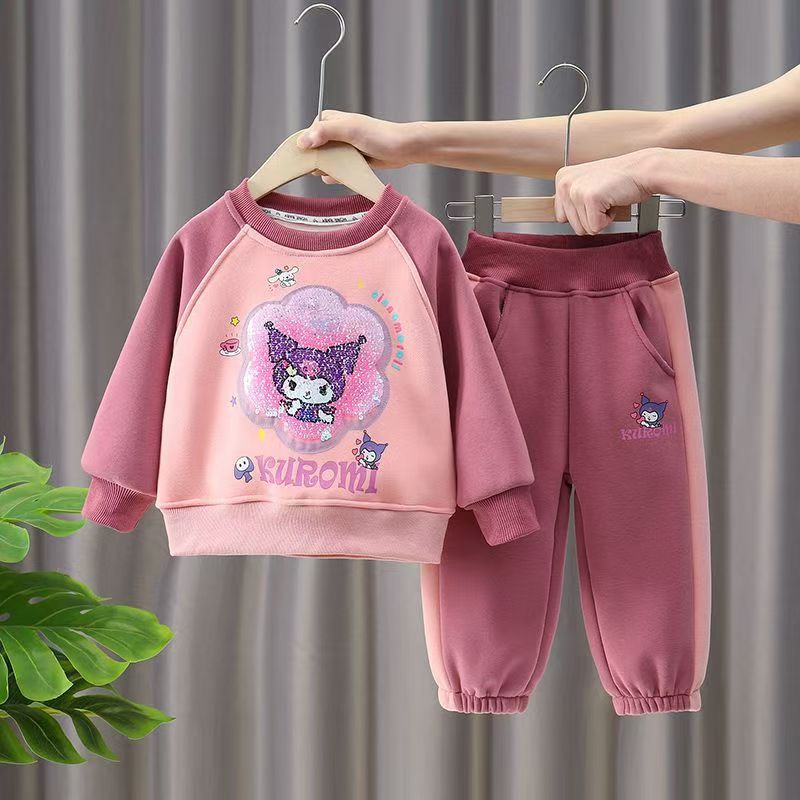2024 겨울 새 소녀 세트 어린이 어린 소녀 서양식 쿨로 미 만화 기모 스웨트 셔츠 투피스 세트스토어 가기