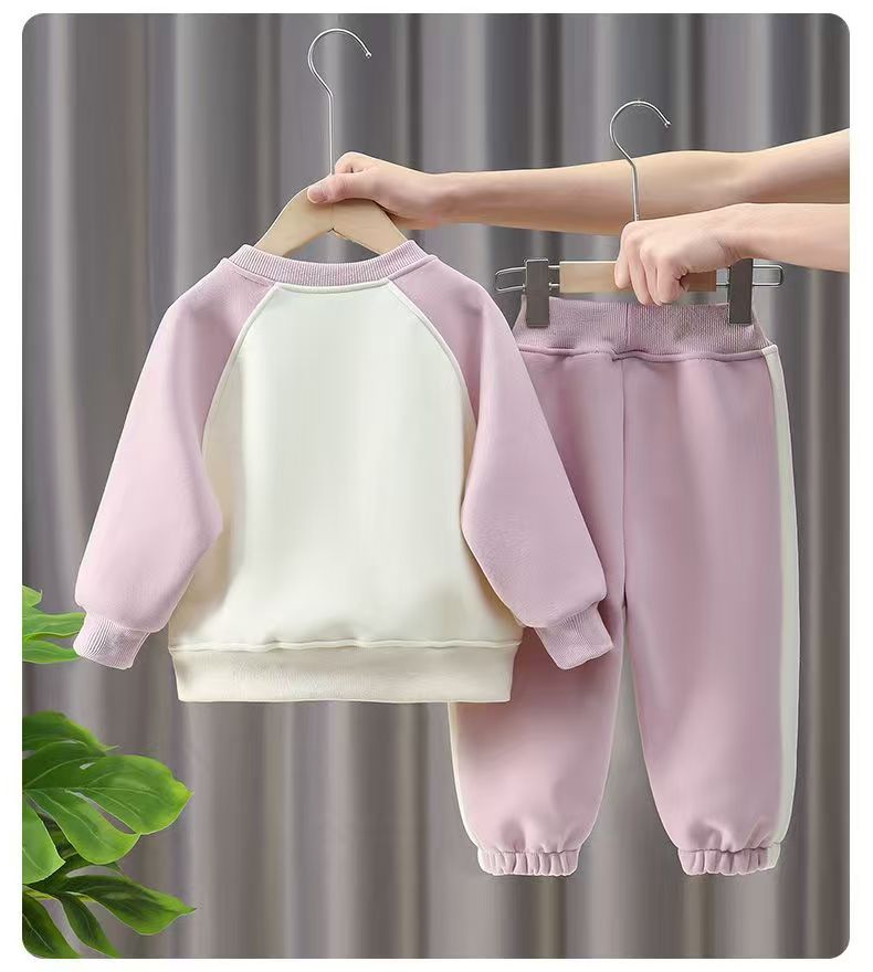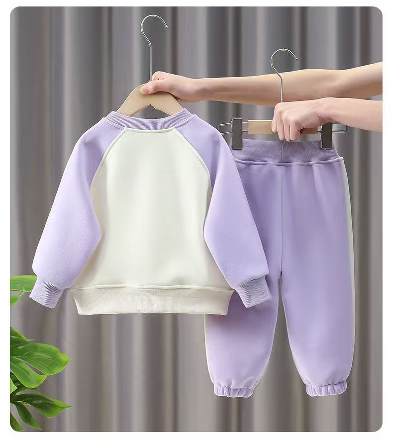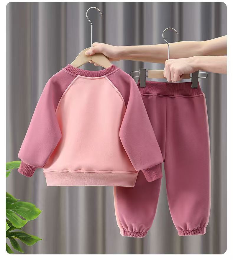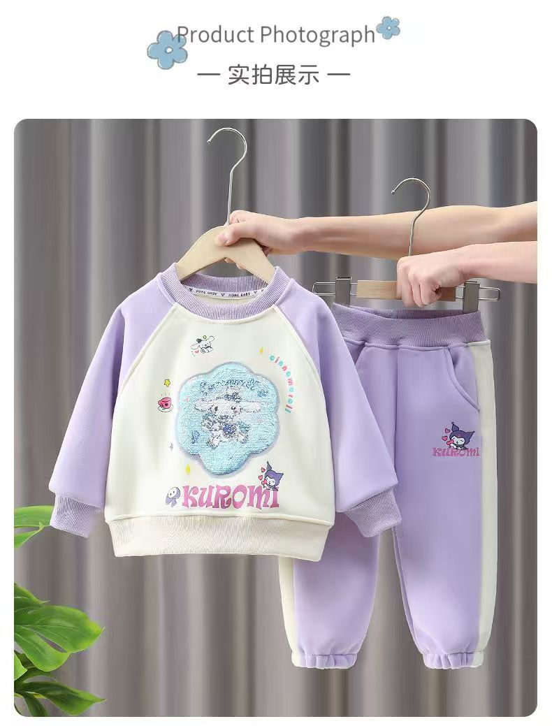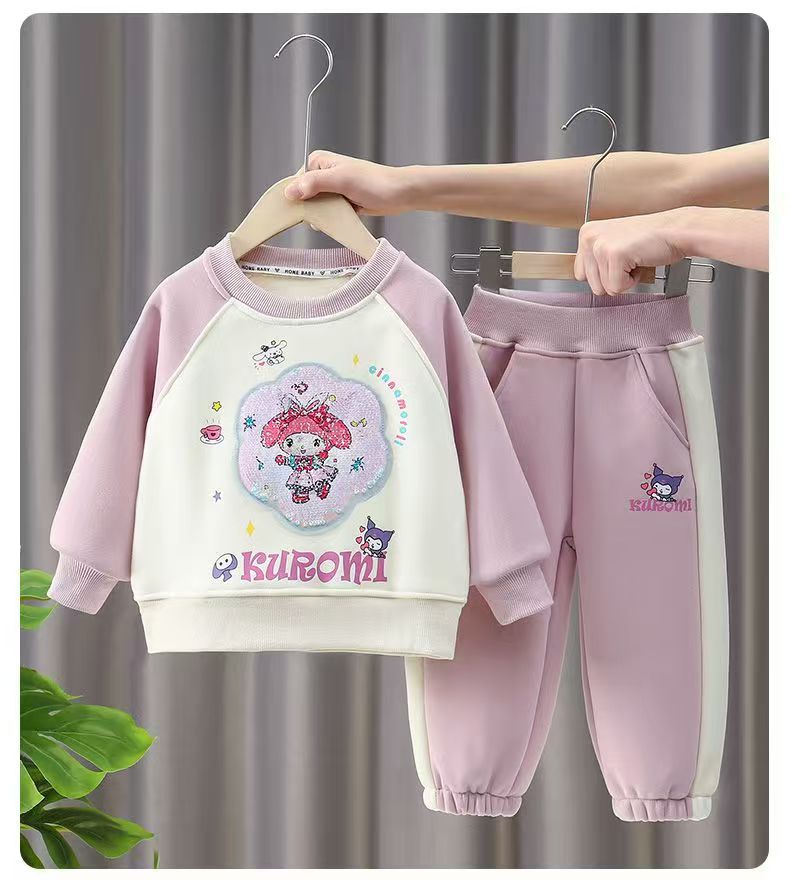 2024 겨울 새 소녀 세트 어린이 어린 소녀 서양식 쿨로 미 만화 기모 스웨트 셔츠 투피스 세트스토어 가기