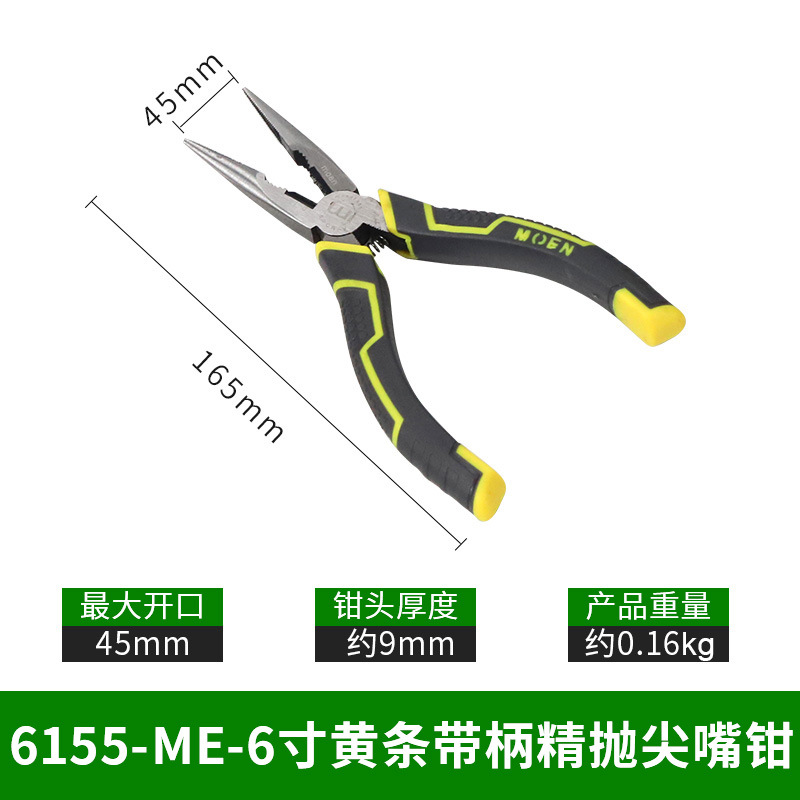• 6155-ME- 6inch 노란색 스트립 손잡이가 있는 미세 광택 니들 노즈 플라이어