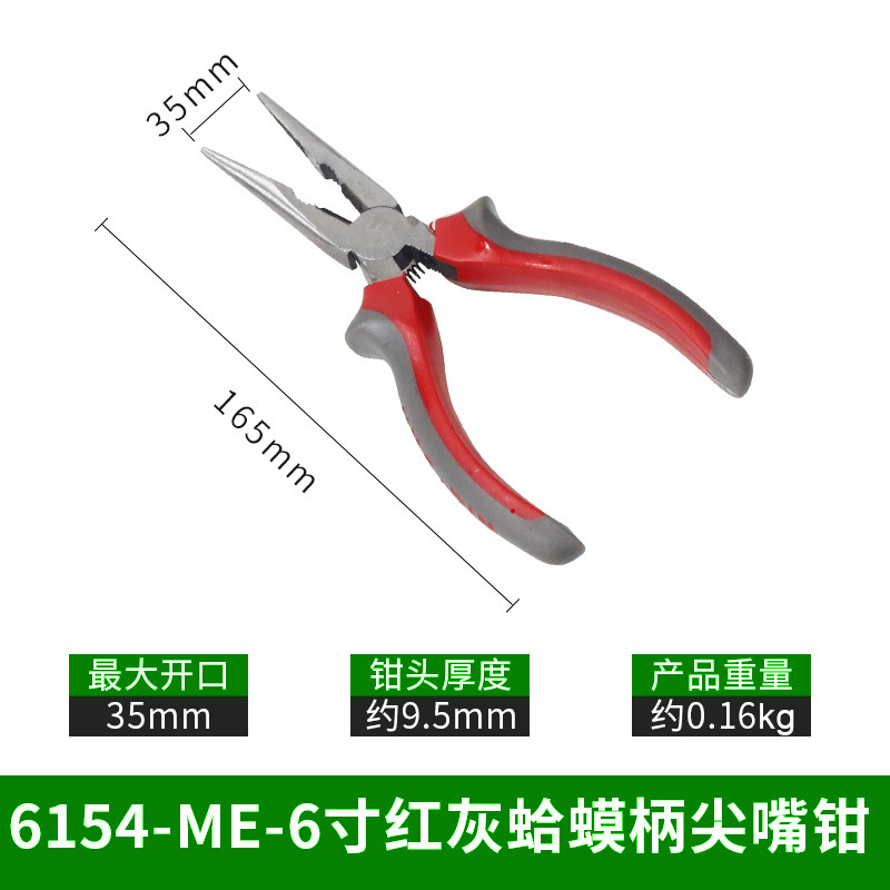 • 6154-ME- 6inch 빨간색과 회색 두꺼비 손잡이 바늘 코 펜치