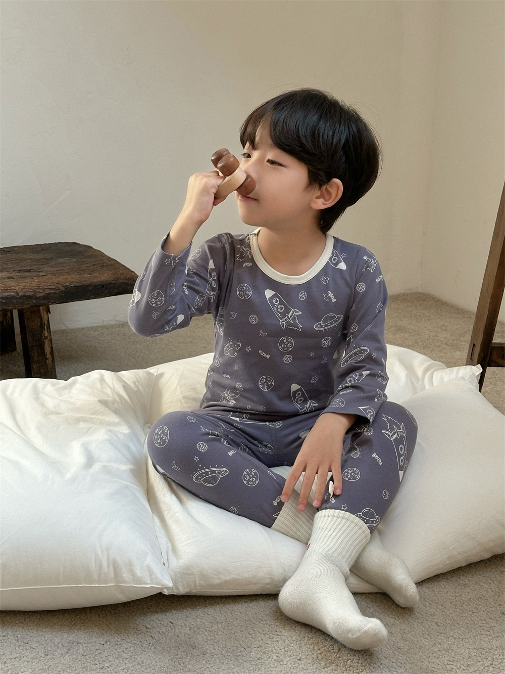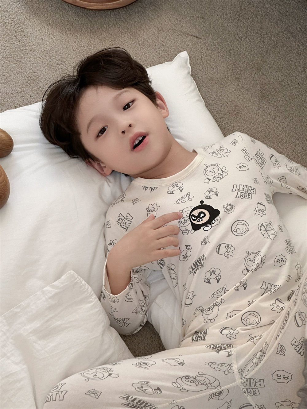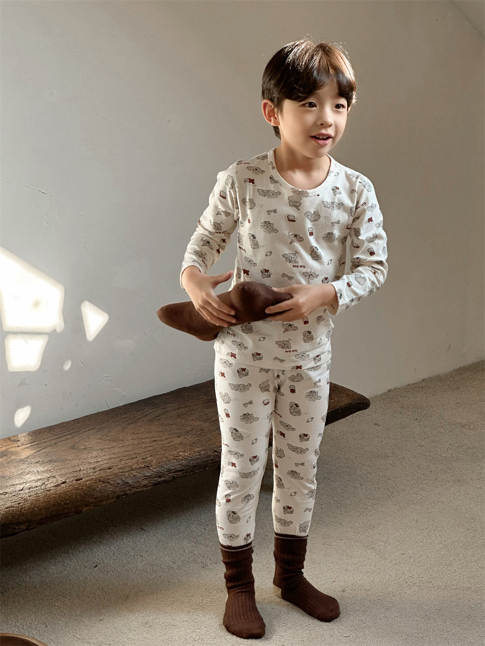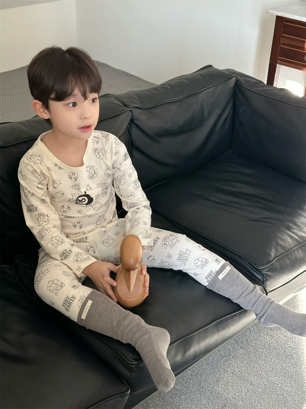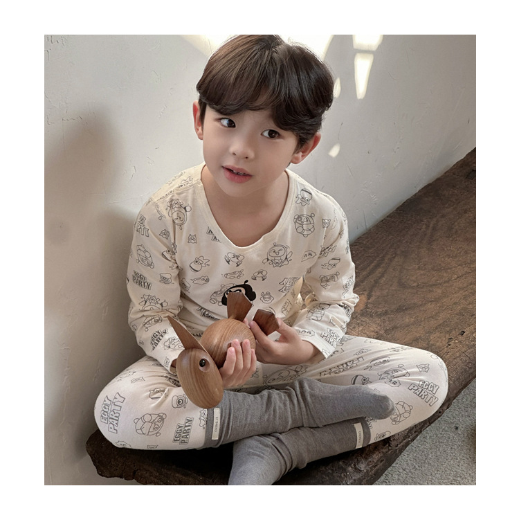 치즈와 야옹 어린이 착용 소년 홈 의류 세트 2024 새로운 소년 열 속옷 세트 아기 홈 옷스토어 가기