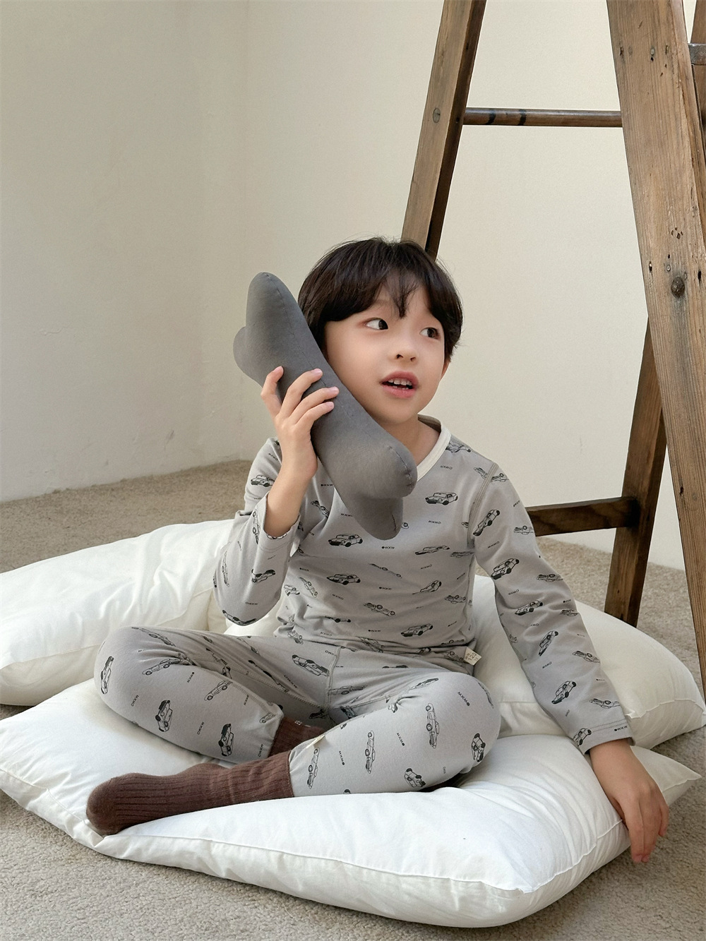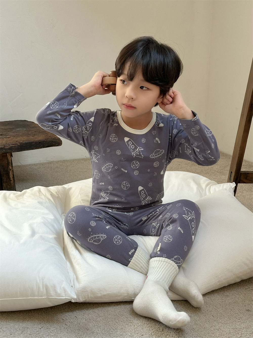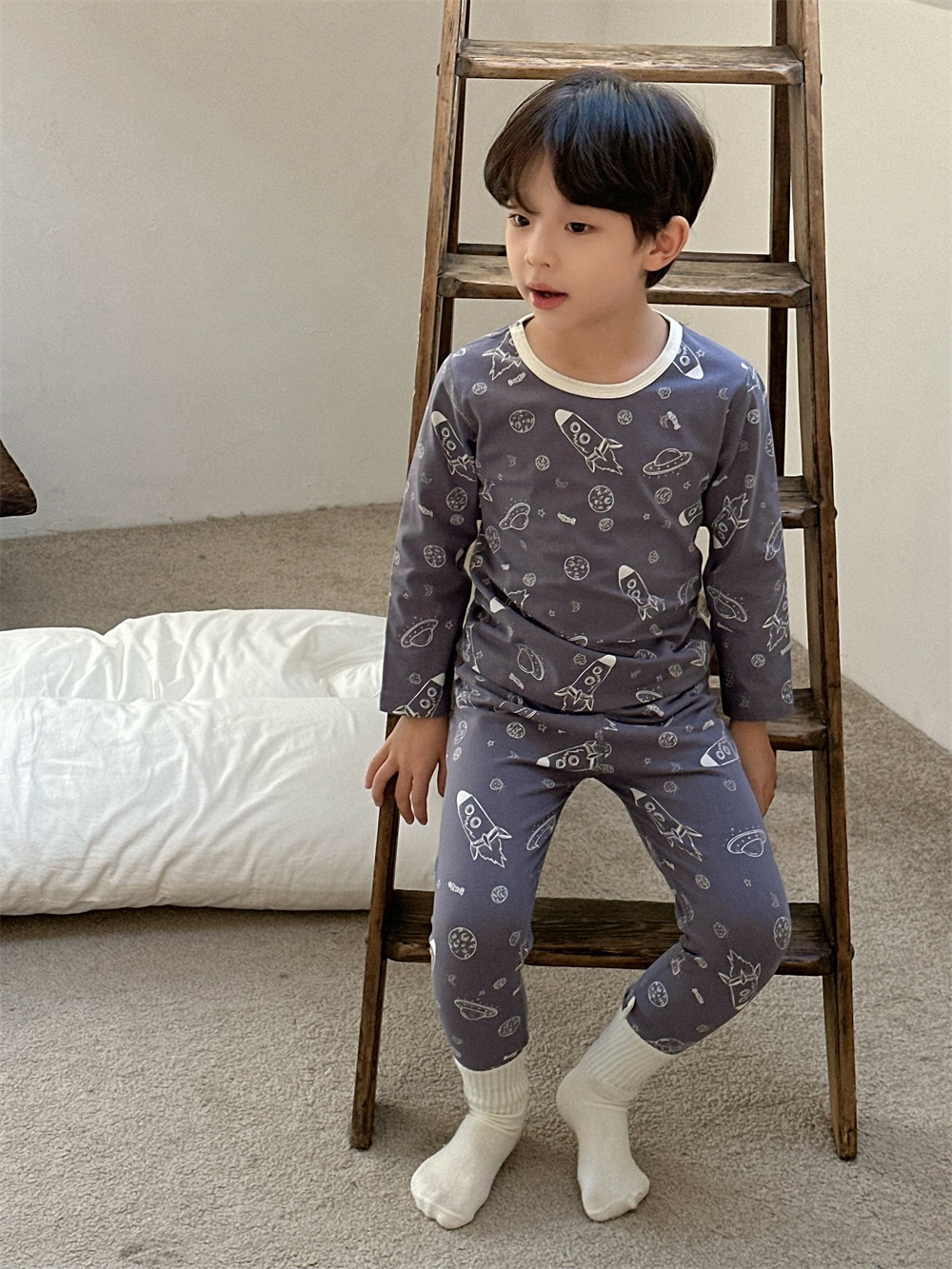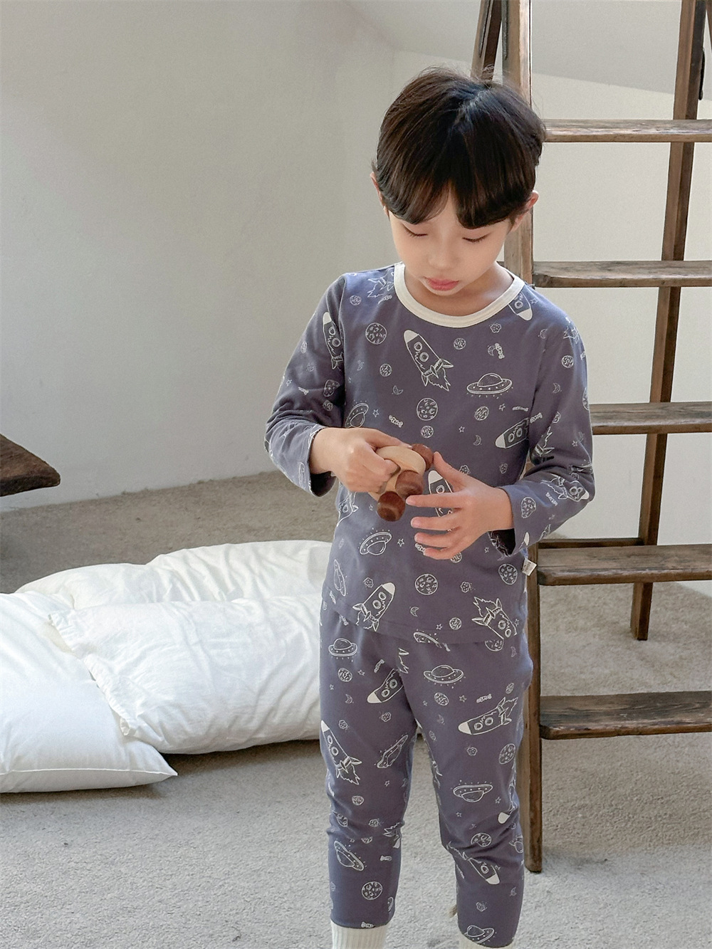 치즈와 야옹 어린이 착용 소년 홈 의류 세트 2024 새로운 소년 열 속옷 세트 아기 홈 옷스토어 가기