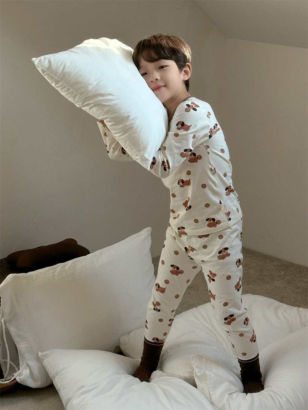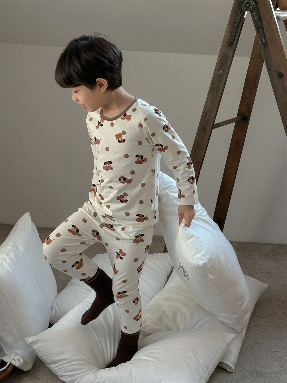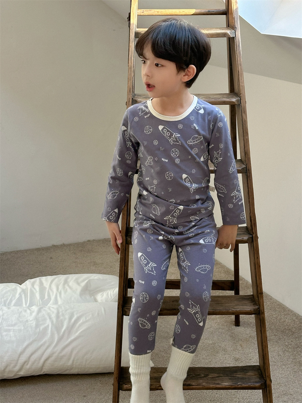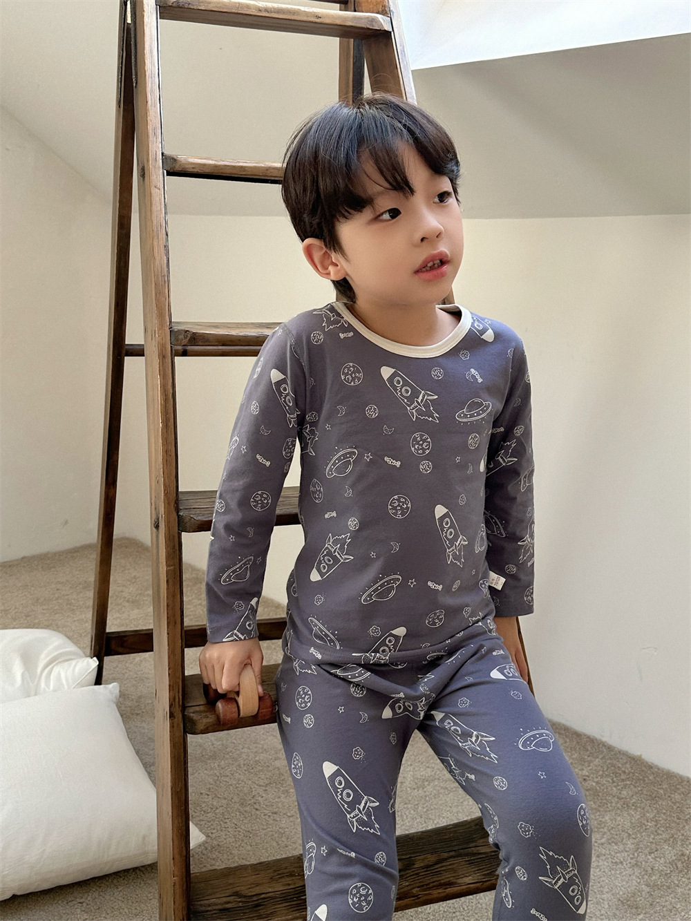 치즈와 야옹 어린이 착용 소년 홈 의류 세트 2024 새로운 소년 열 속옷 세트 아기 홈 옷스토어 가기