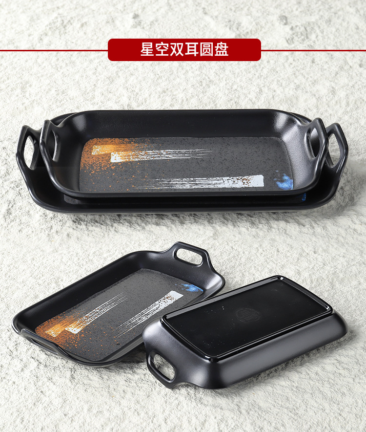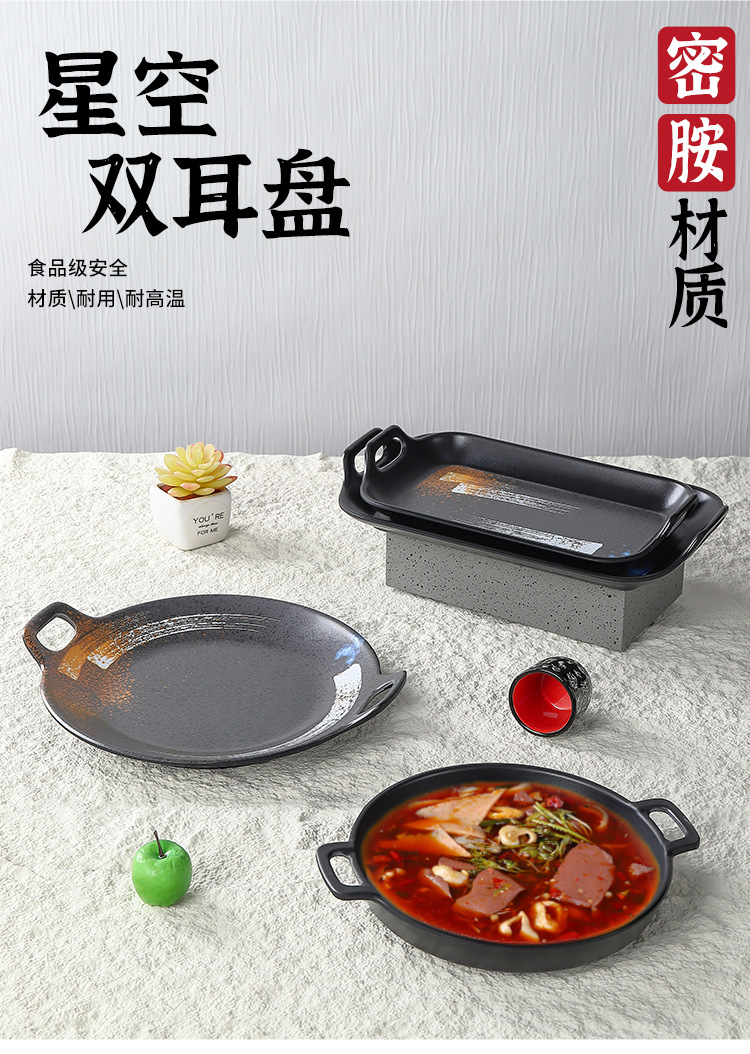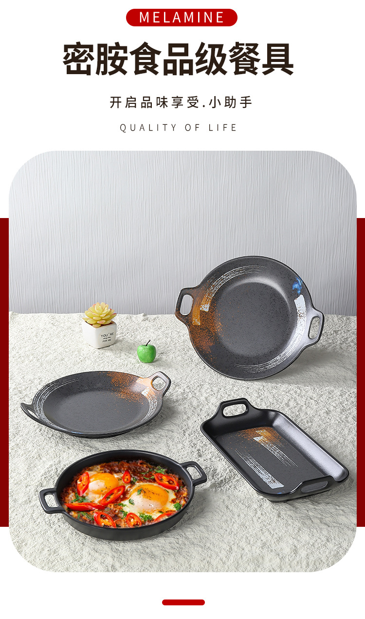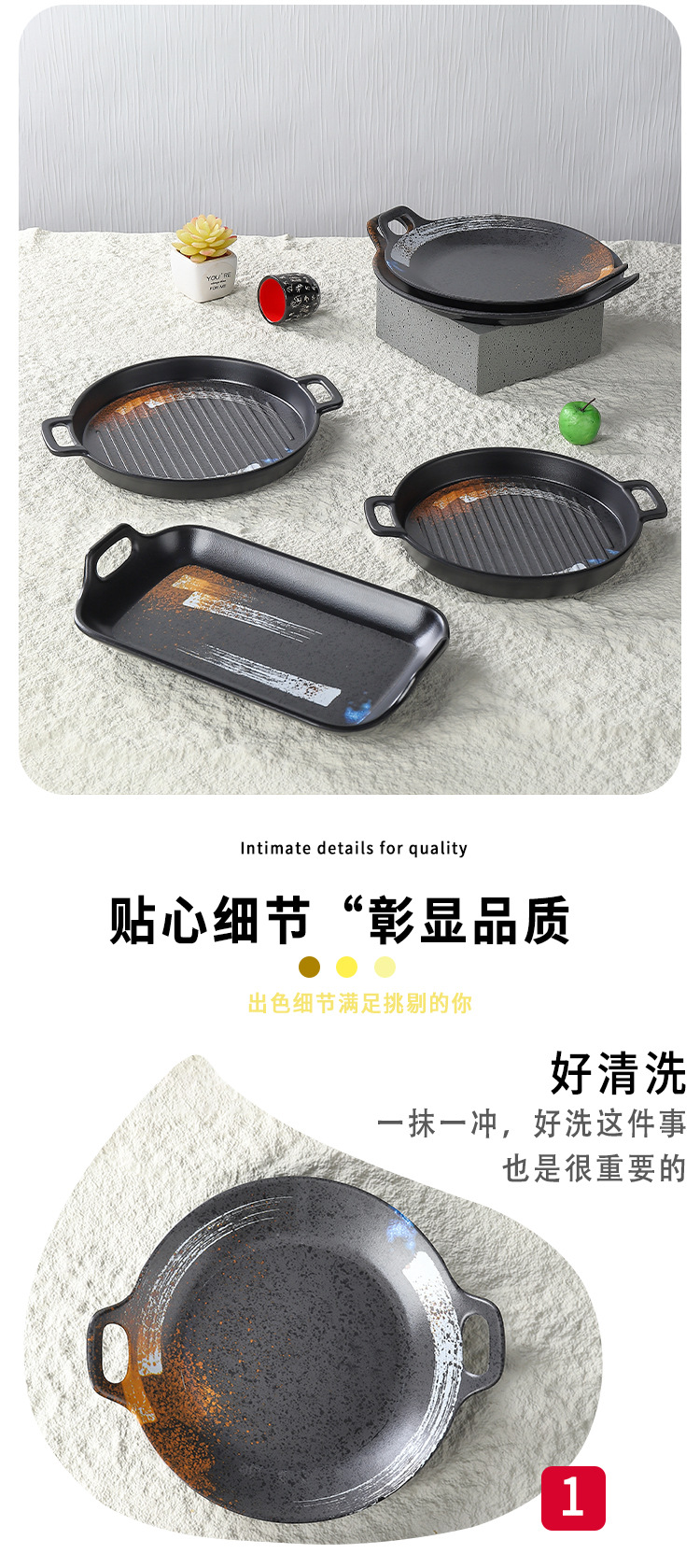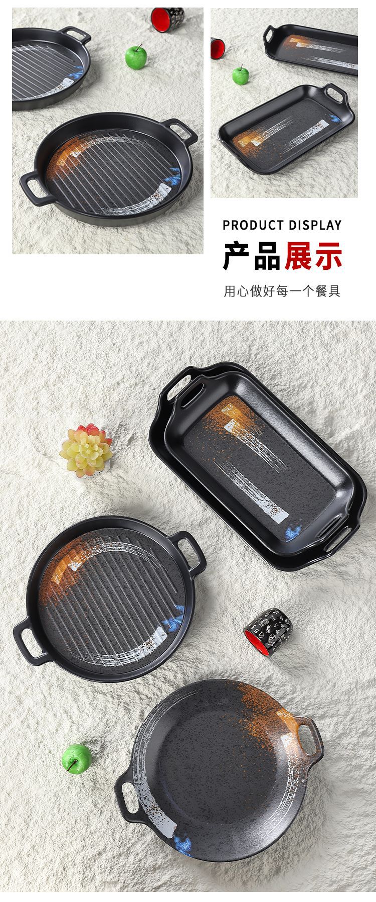 모방 도자기 일본 식기 바이노럴 차가운 접시 접시 플라스틱 손잡이 인터넷-유명한 구운 쌀 접시 초밥 바베큐 스낵 플레이트 상업스토어 가기