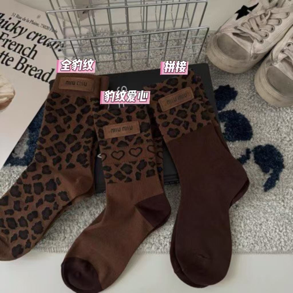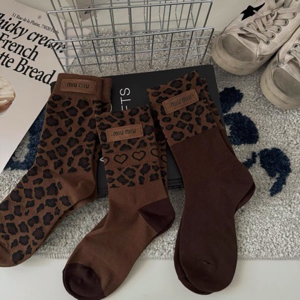 2024 가을과 겨울 새로운 표범 다크 브라운 패션 여성 튜브 양말 Maillard 컬러 한국 패션 트렌드 조커 오스토어 가기