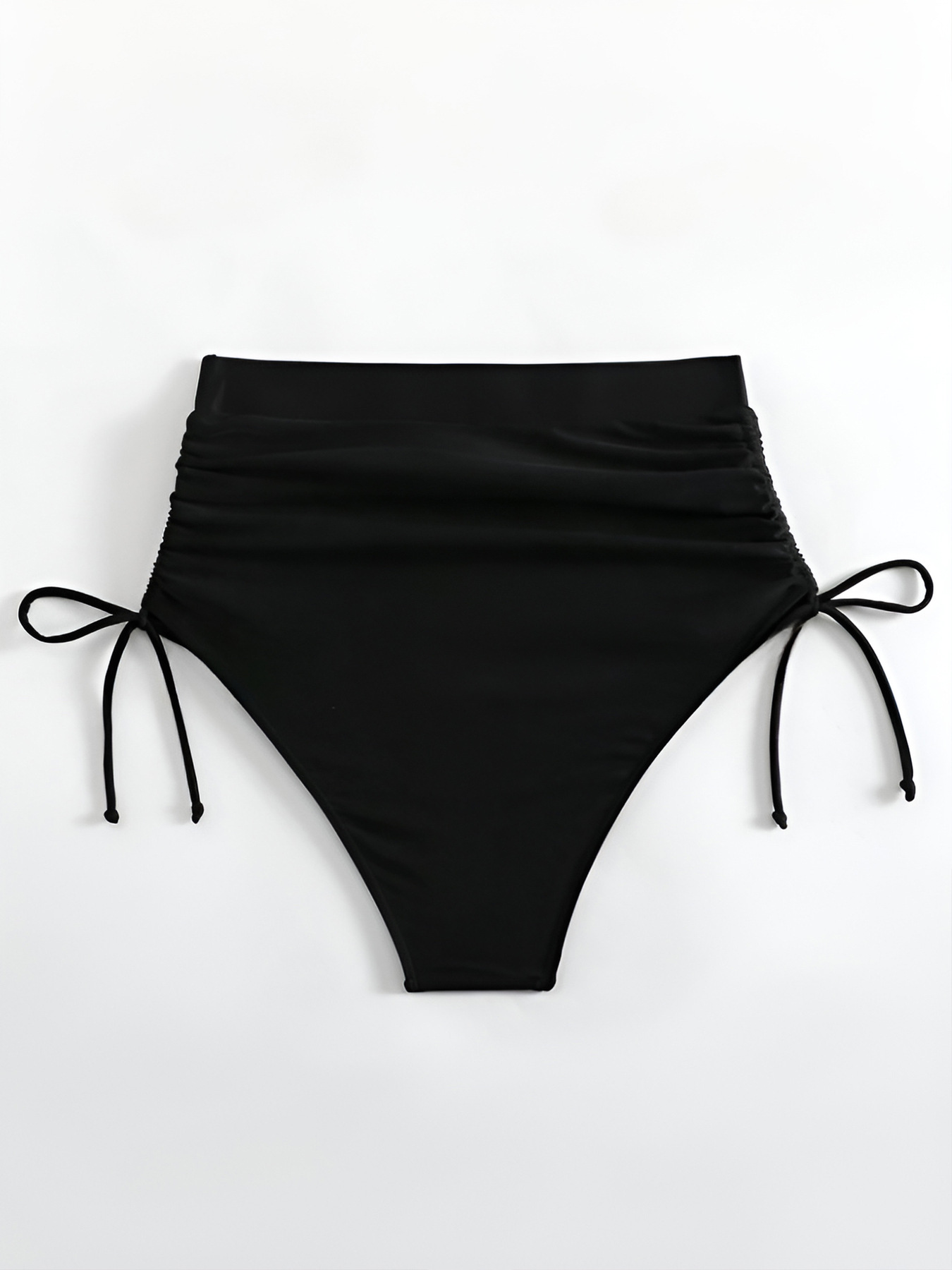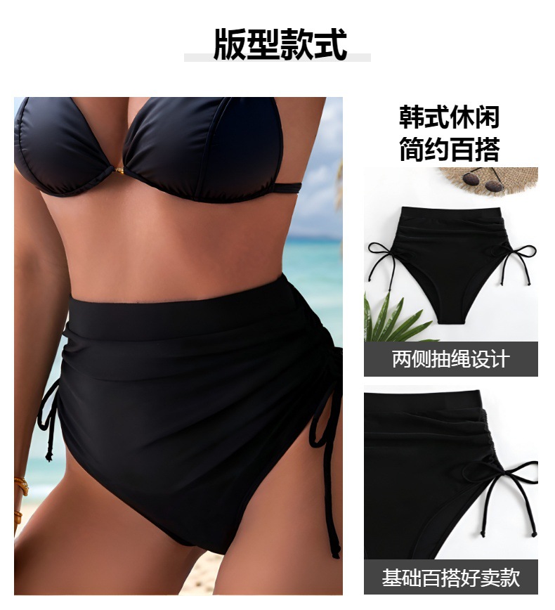 솔리드 컬러 유럽과 미국의 섹시한 하이 웨이스트 드로우 스트링 싱글 피스 고탄력 브리프 여성용 비키니 싱글 하의 여성용 수영 트렁크스토어 가기