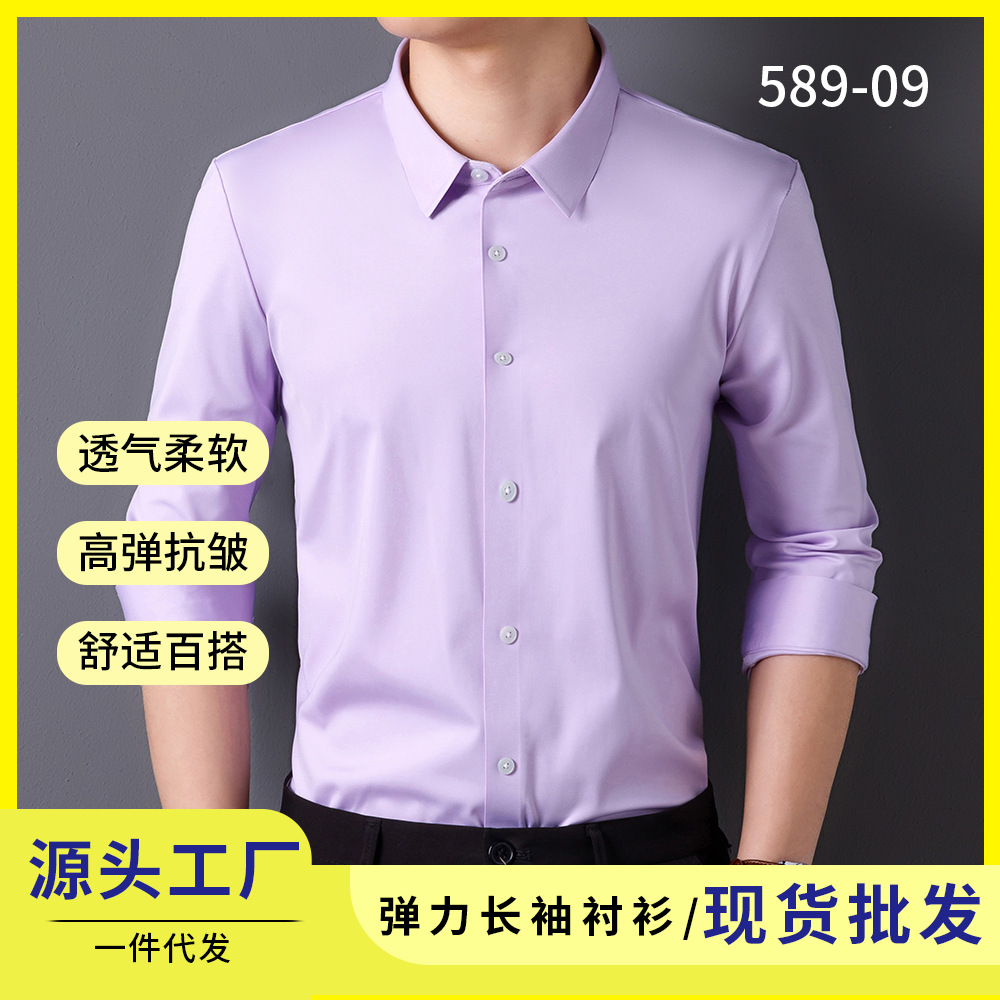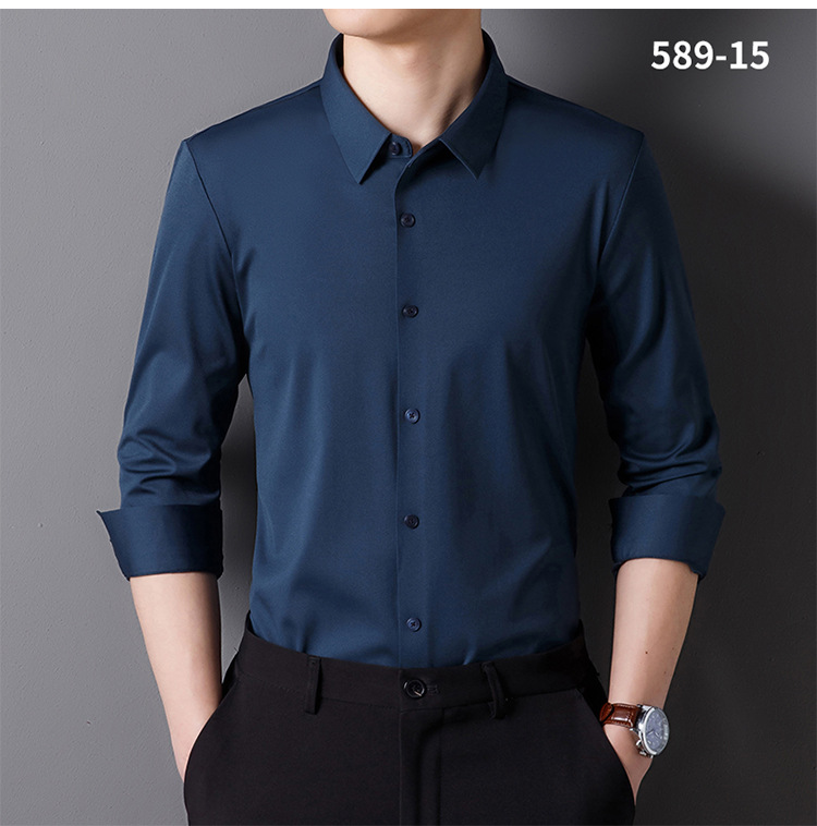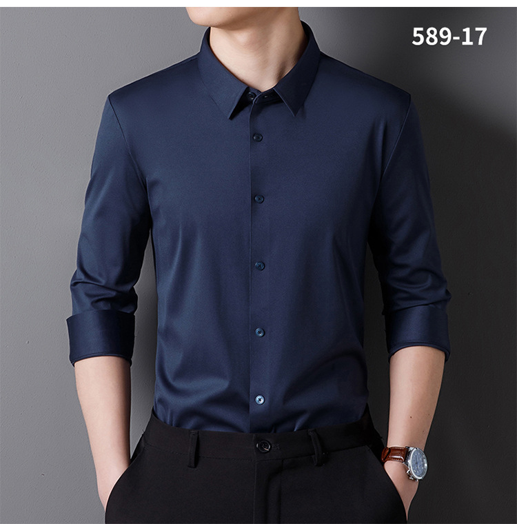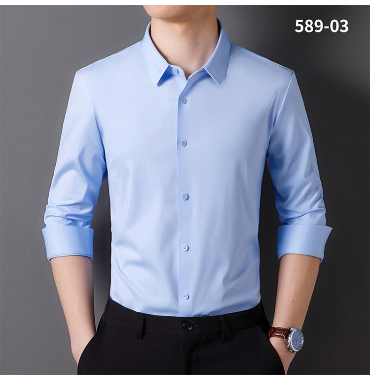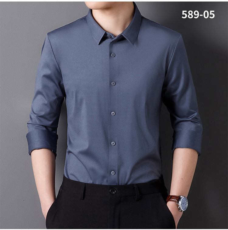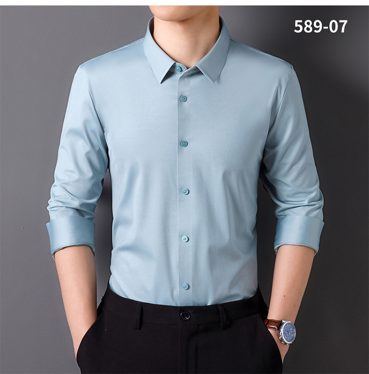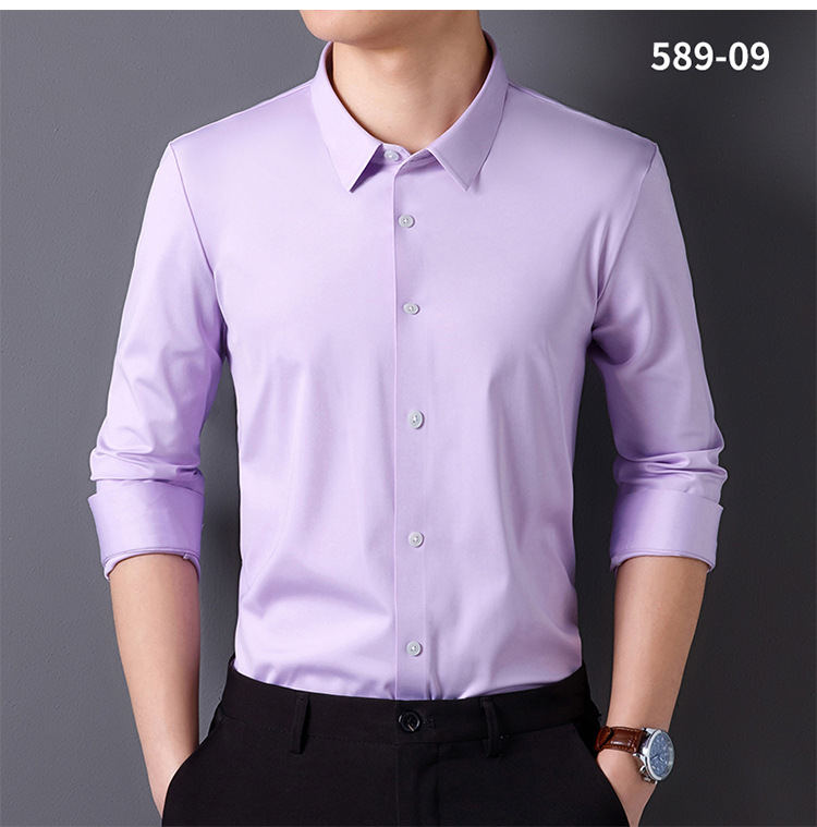 남성 셔츠 비즈니스 전문 슬림핏 셔츠 남성 긴팔 단색 다림질 필요 없는 고급스러운 무봉제 셔츠 남성복 도매스토어 가기