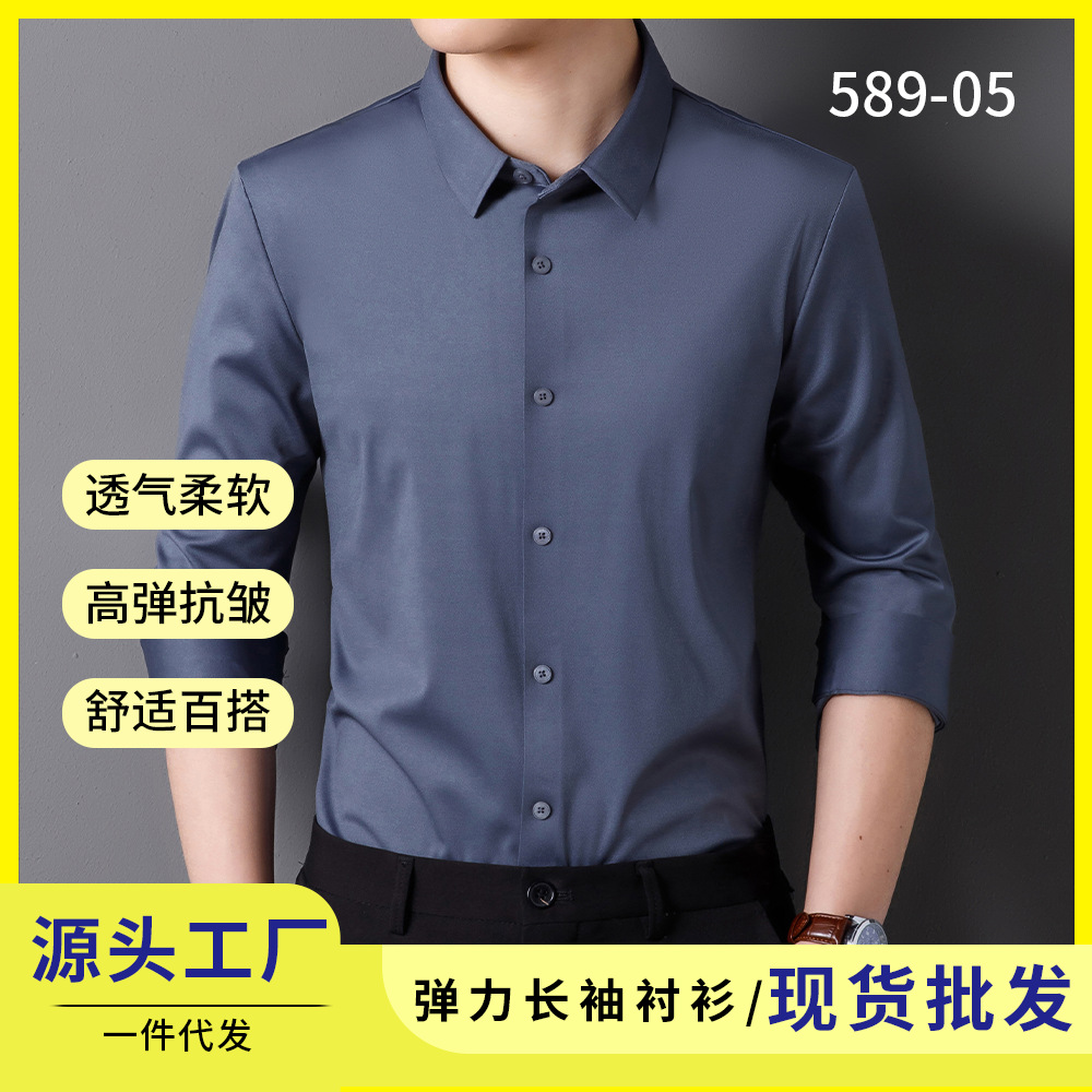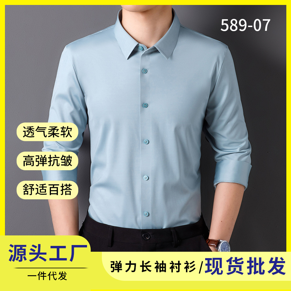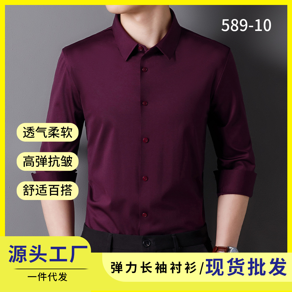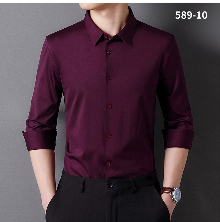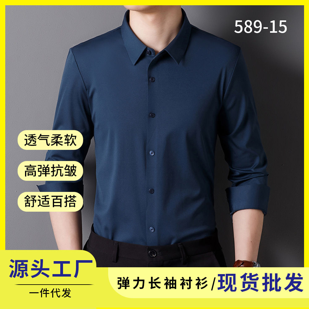 남성 셔츠 비즈니스 전문 슬림핏 셔츠 남성 긴팔 단색 다림질 필요 없는 고급스러운 무봉제 셔츠 남성복 도매스토어 가기