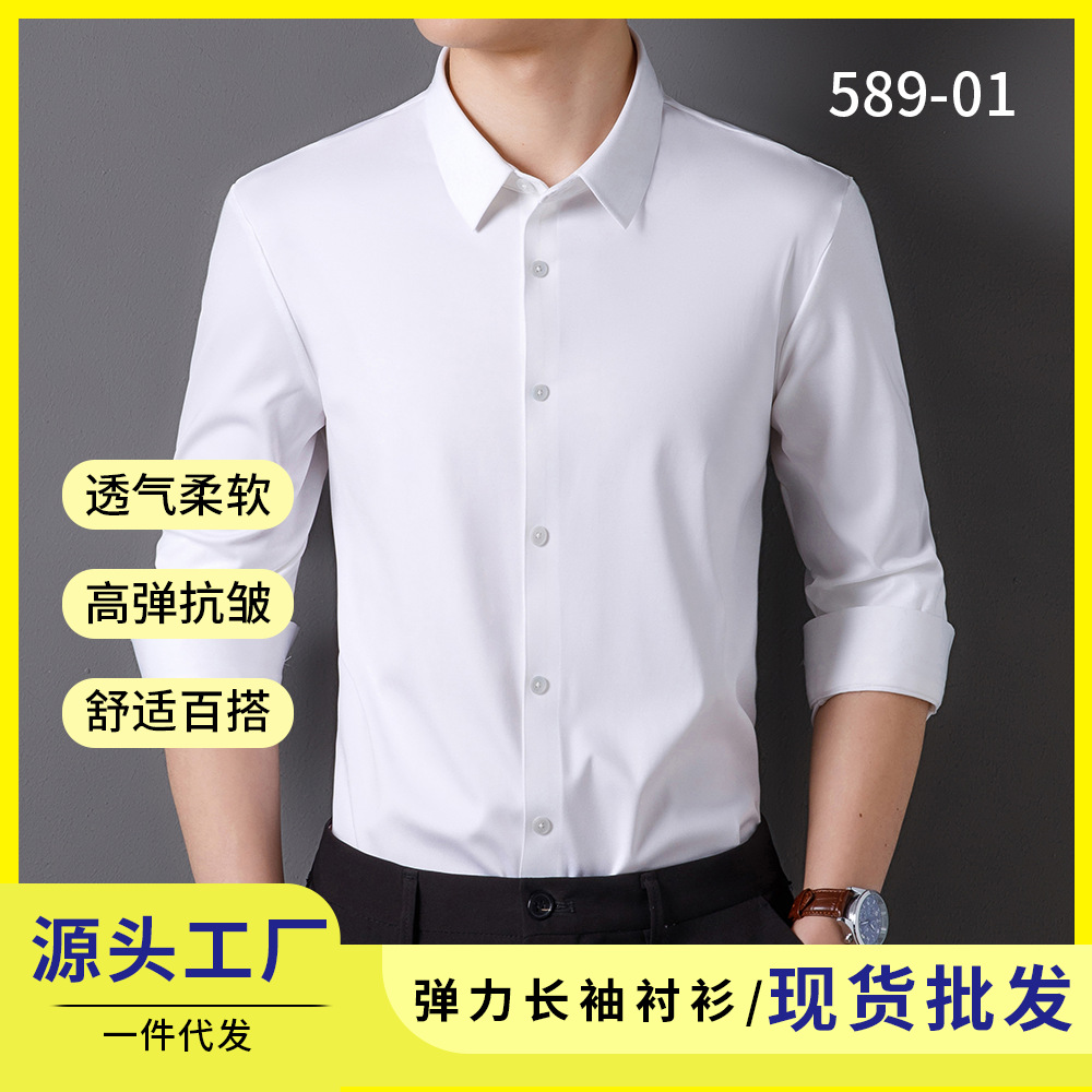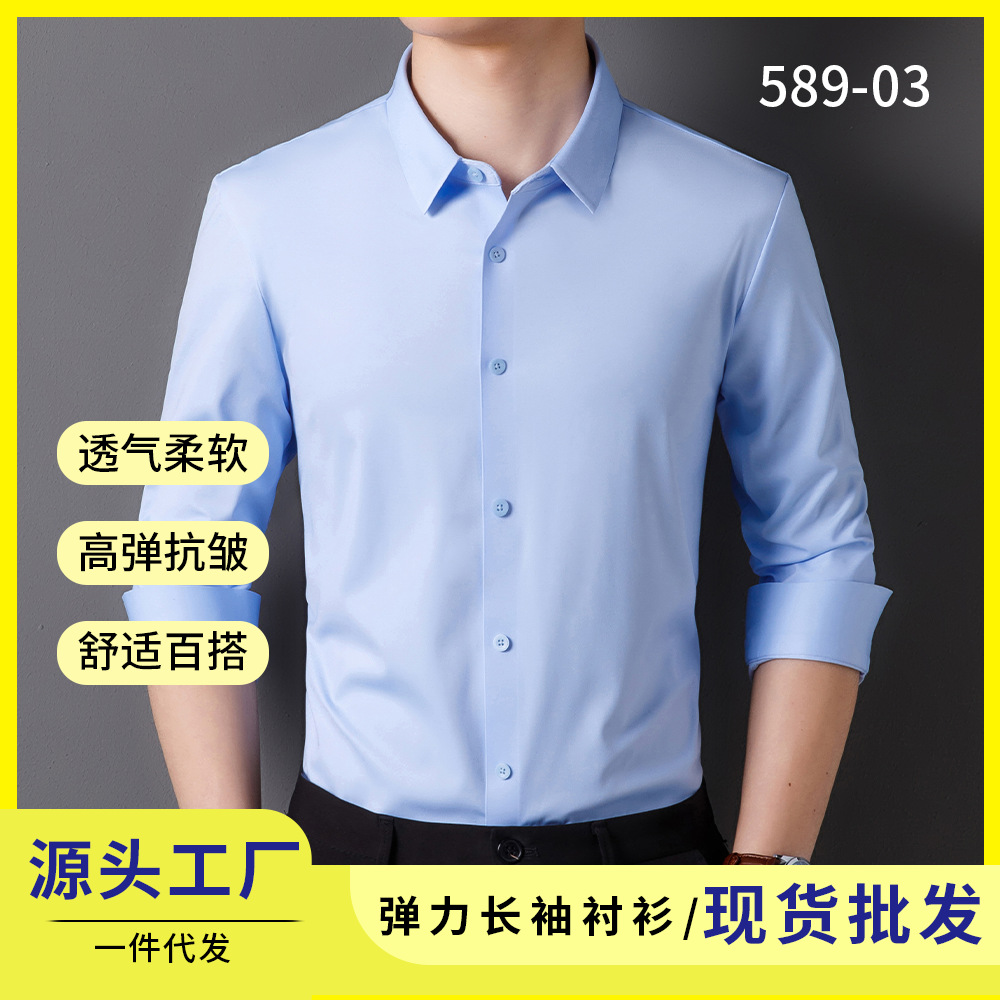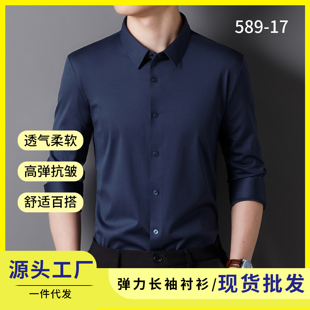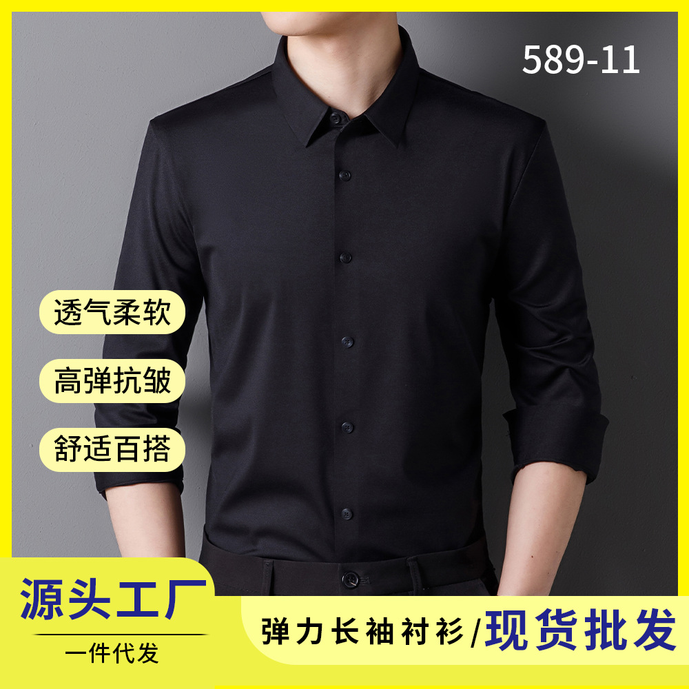 남성 셔츠 비즈니스 전문 슬림핏 셔츠 남성 긴팔 단색 다림질 필요 없는 고급스러운 무봉제 셔츠 남성복 도매스토어 가기