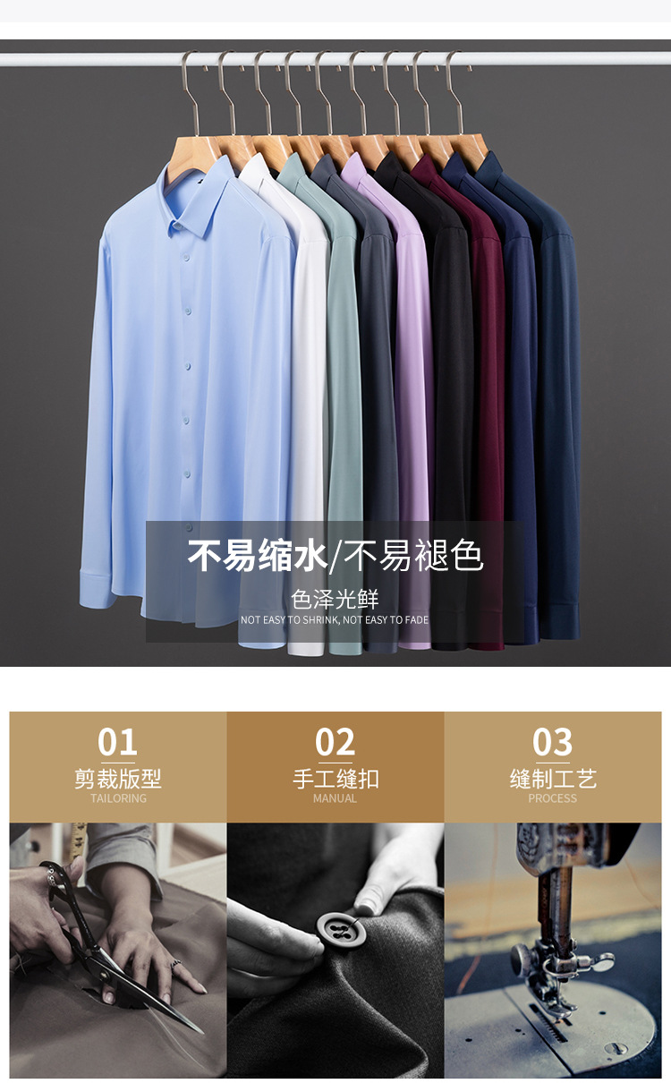 男士衬衫长袖短袖无痕款纯色商务衬衣
