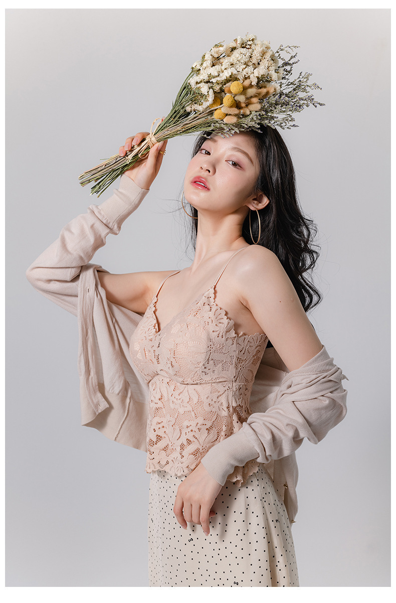 여름 Dovetail 아름다운 백 올 매치 레이스 카미 솔 내복 안티 러닝 라이트 랩 튜브 탑 라텍스 여성 속옷스토어 가기