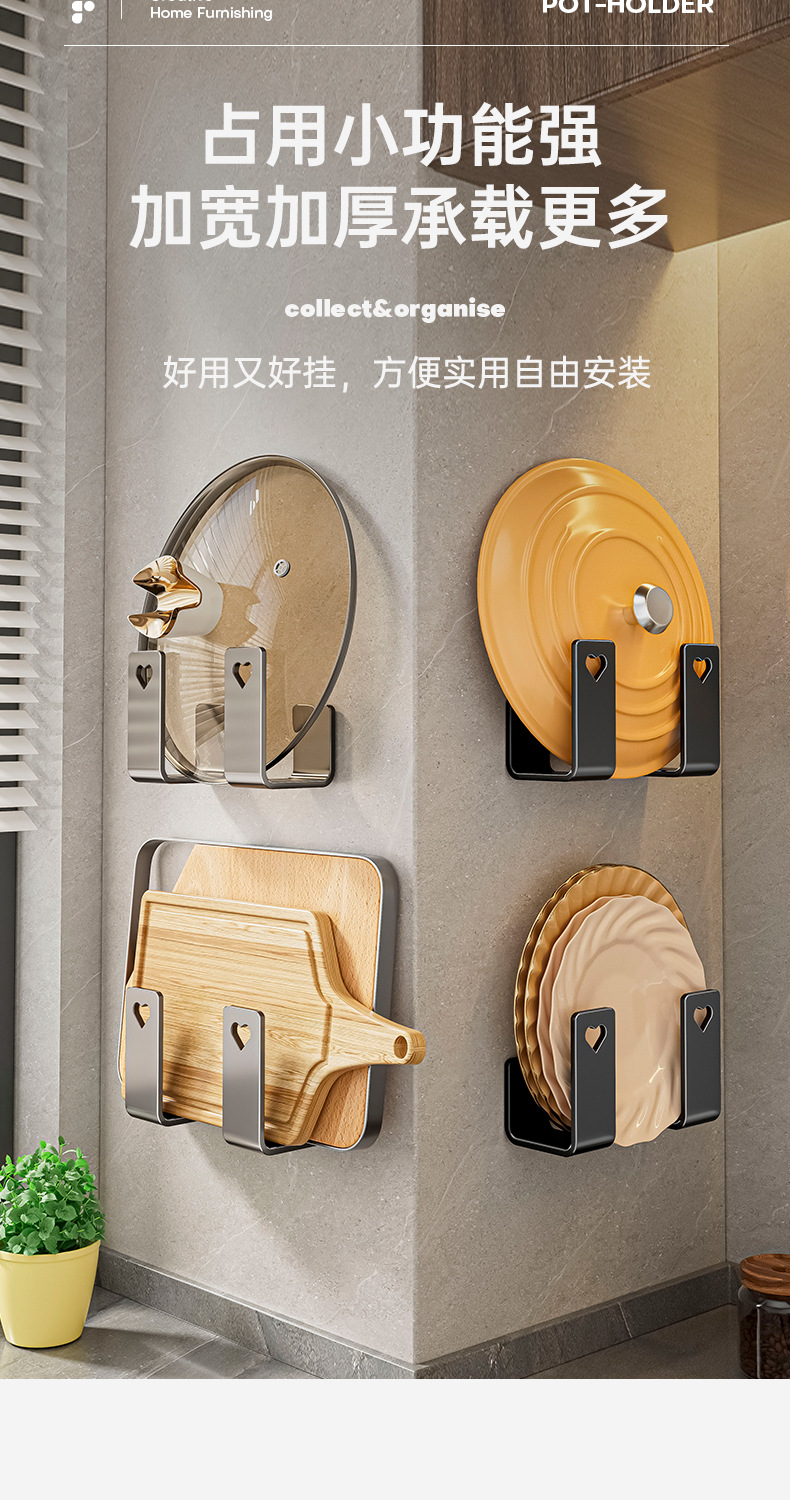 냄비 뚜껑 거치대 무타공 선반 가정용 주방 수납 선반 다기능 도마 거치대 냄비 걸이스토어 가기