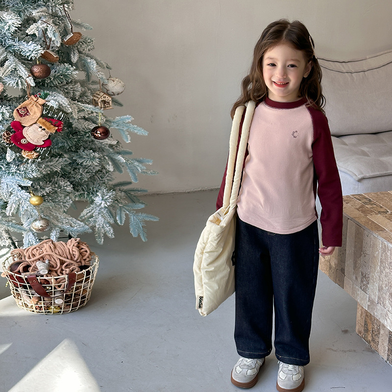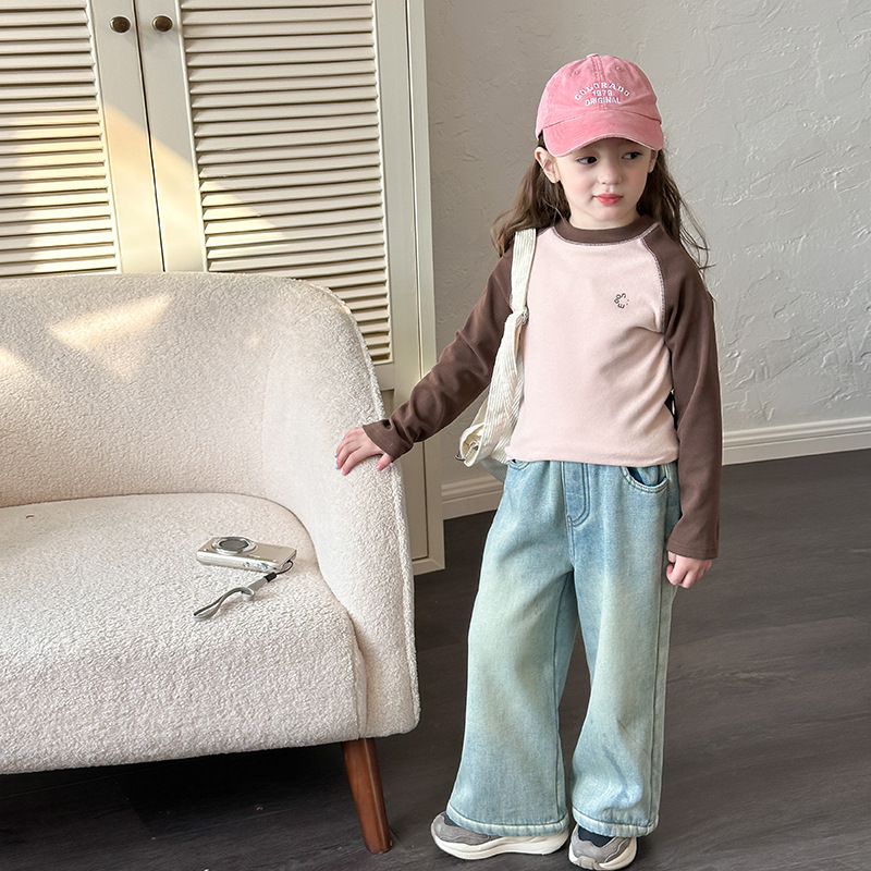 【양면 무스벨벳】아이모베이비 여아용 한국 스타일 슬림핏 겨울 배색 래글런 탑