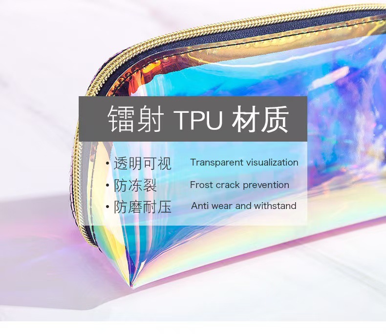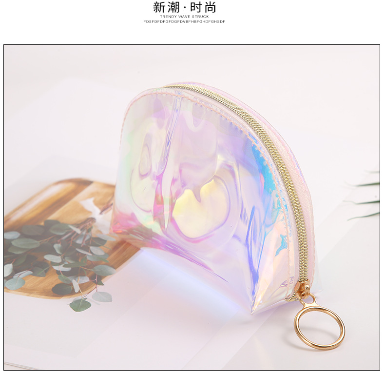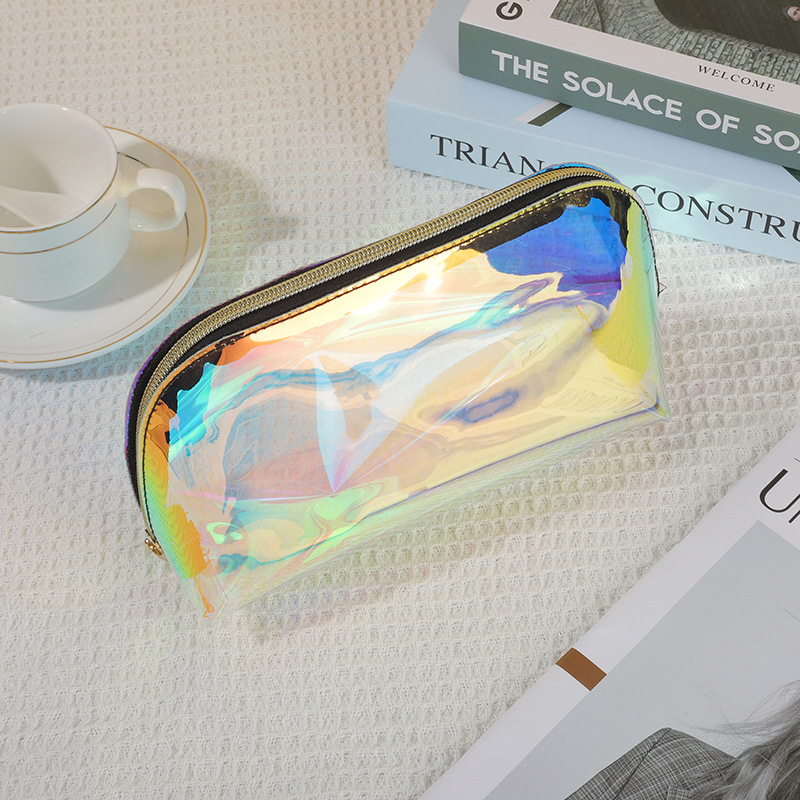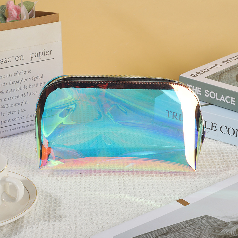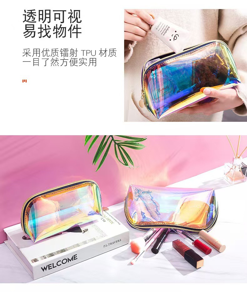 TPU 다채로운 레이저 화장품 가방 스킨 케어 보관 가방 방수 경량 여행 세척 가방 클러치 재고 가방스토어 가기