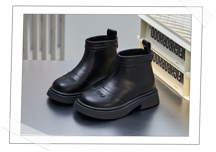 어린이 마틴 부츠 소녀 짧은 부츠 2024 새로운 도착 기모 가죽 부츠 공주 싱글 부츠 영국 아기 부츠