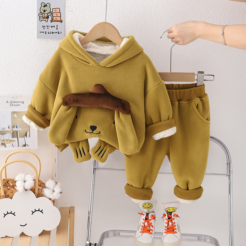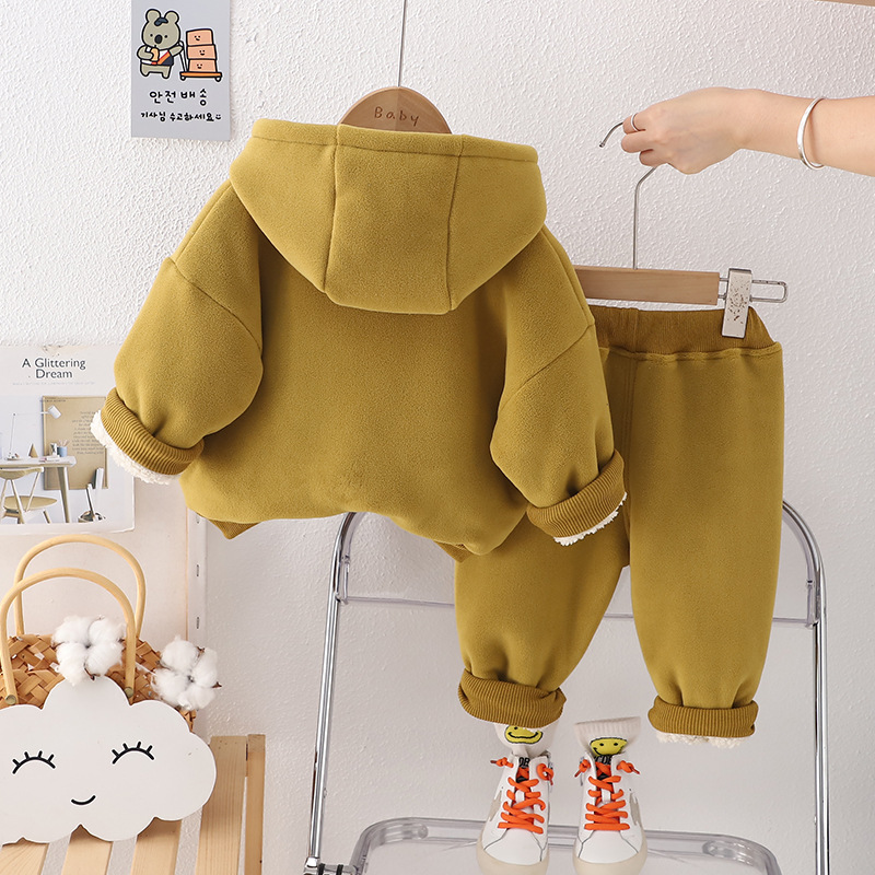 소녀의 가을과 겨울 세트 2024 새로운 외국 스타일의 남성 아기 겨울 조끼 기모 두꺼운 3 피스 세트 도매스토어 가기