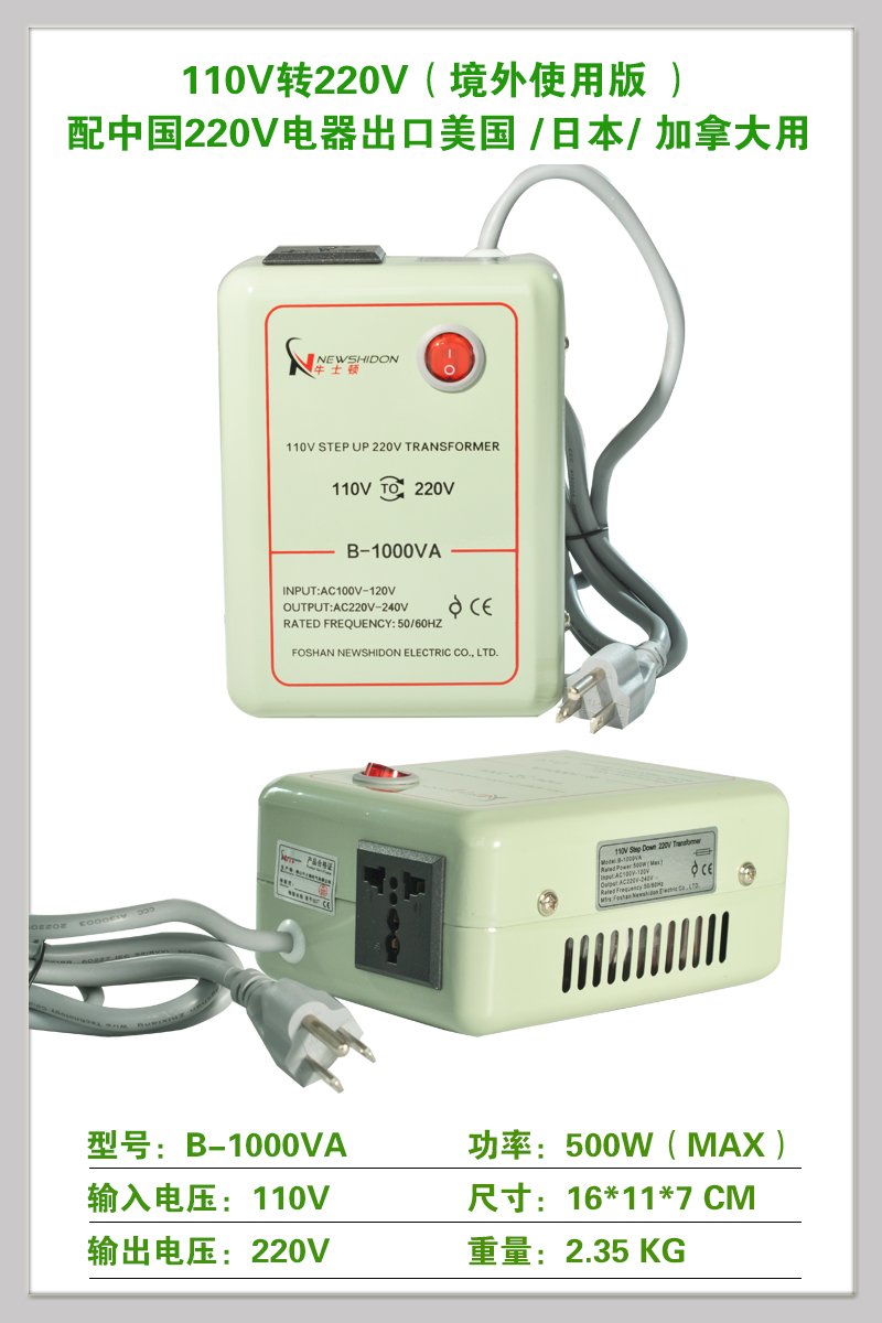 • 경제적인 버전(110V ~ 220V2000V)은 1000W 미만의 중국 전기 제품을 해외에서 사용하는 것이 좋습니다.