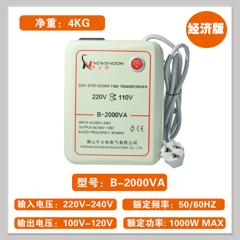 • 국산 220~110 B-2000VA의 경제적인 버전은 미국 및 일본에서 1000W 이하의 100V110V 수입 전기 제품에 권장됩니다.