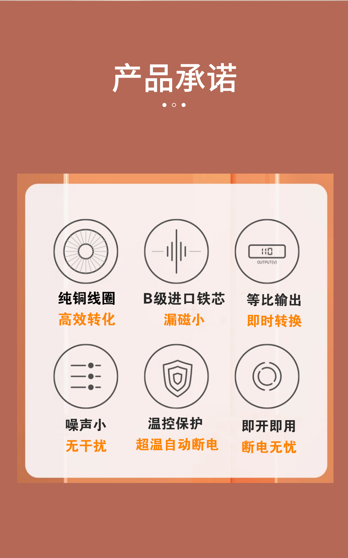 • 순수 구리 버전(110V ~ 220V6000VA)은 3000W 미만의 중국 전기 제품을 해외에서 사용하는 것이 좋습니다.