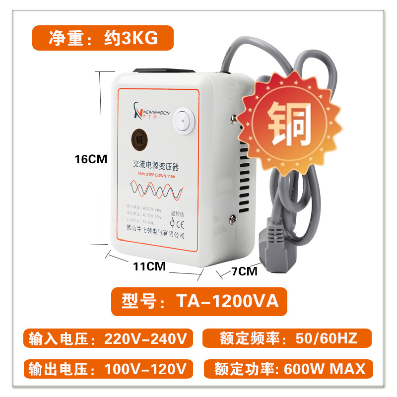 • 순수 구리 버전(220V ~ 110V1200VA)은 600W 미만의 외국 전기 제품을 중국에서 사용하는 것이 좋습니다.