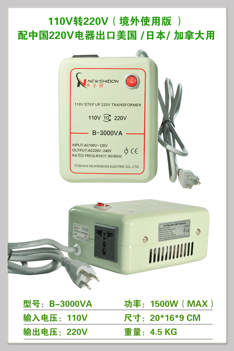 • 온도 조절 버전(110V ~ 220V3200VA)은 1600W 미만의 중국 전기 제품을 해외에서 사용하는 것이 좋습니다.