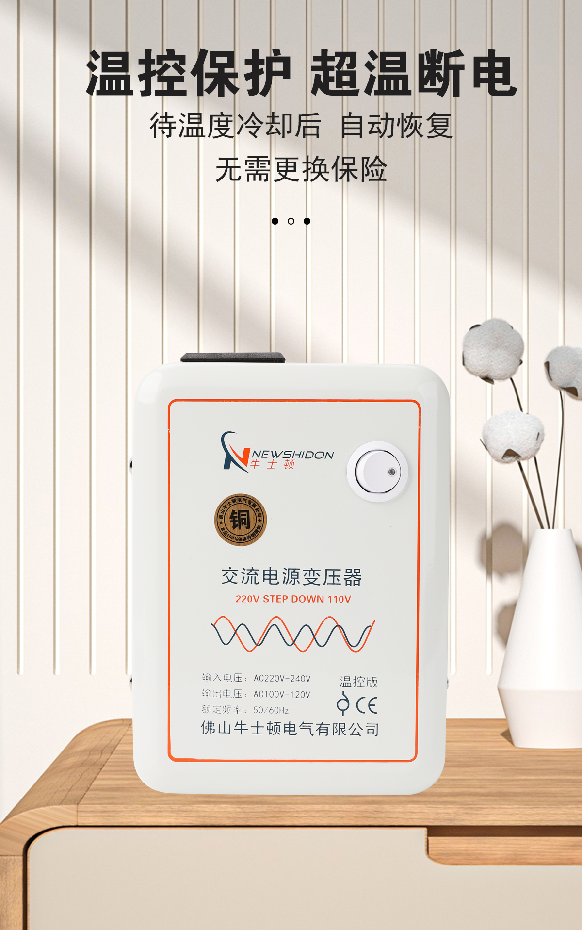 • 온도 조절 버전(220V ~ 110V600VA)은 중국에서 300W 미만의 외국 전기 제품을 사용하는 것이 좋습니다.