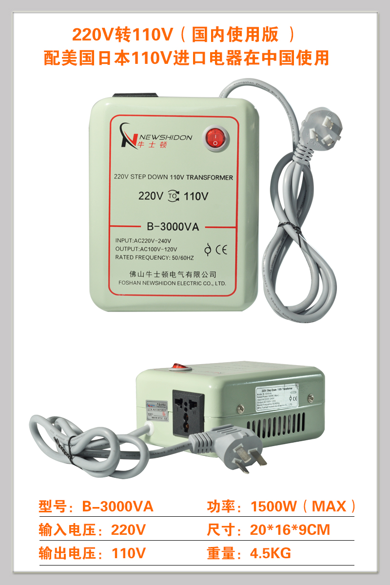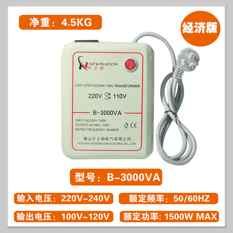 • 국산 220~110 B-3000VA의 경제적인 버전은 1500W 미만의 미국과 일본의 100v110v 수입 전기 제품을 권장합니다.