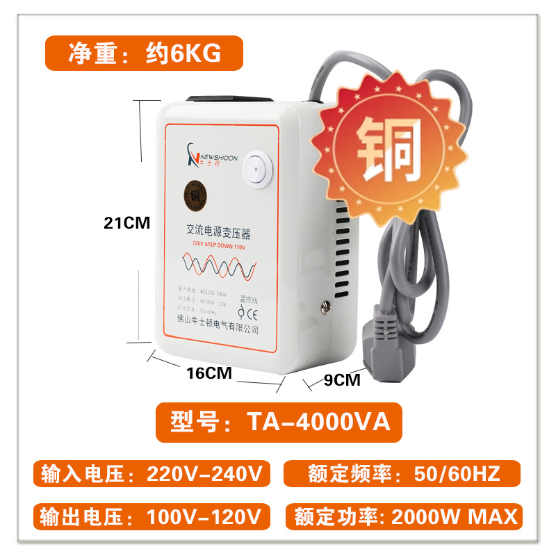 • 순수 구리 버전(220V ~ 110V4000VA)은 2000W 외국 전기 제품을 중국에서 사용하는 것이 좋습니다.