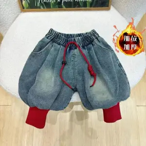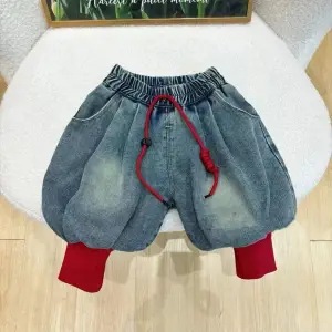 2024 년 새로운 소년 소녀 가을과 겨울 기모 스웨터 세트 한국 프린트 탑 트렌디 한 청바지 투피스 세트스토어 가기