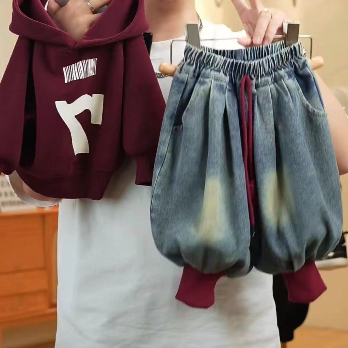• 벨벳 레드 7자 스웨트셔츠+청바지(슈트)