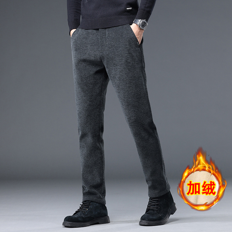 브랜드 기모 캐주얼 바지 남성 Chenille 라이트 비즈니스 캐주얼 바지 남성 청소년 슬림핏 작은 스트레이트 레그 남성용 바지