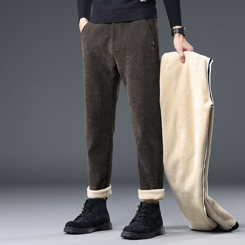 브랜드 기모 캐주얼 바지 남성 Chenille 라이트 비즈니스 캐주얼 바지 남성 청소년 슬림핏 작은 스트레이트 레그 남성용 바지스토어 가기