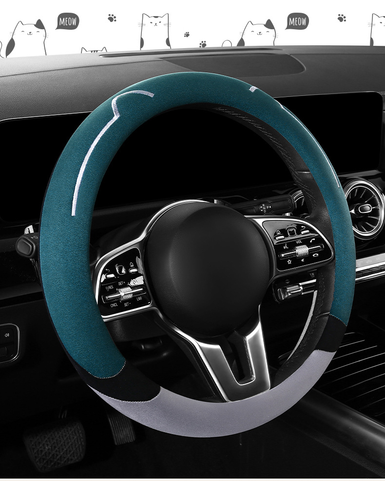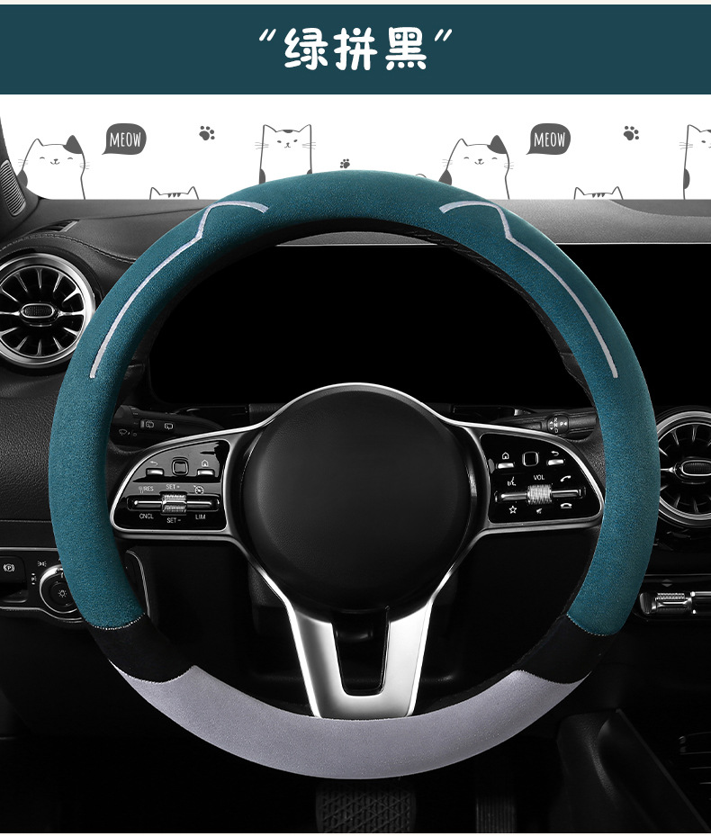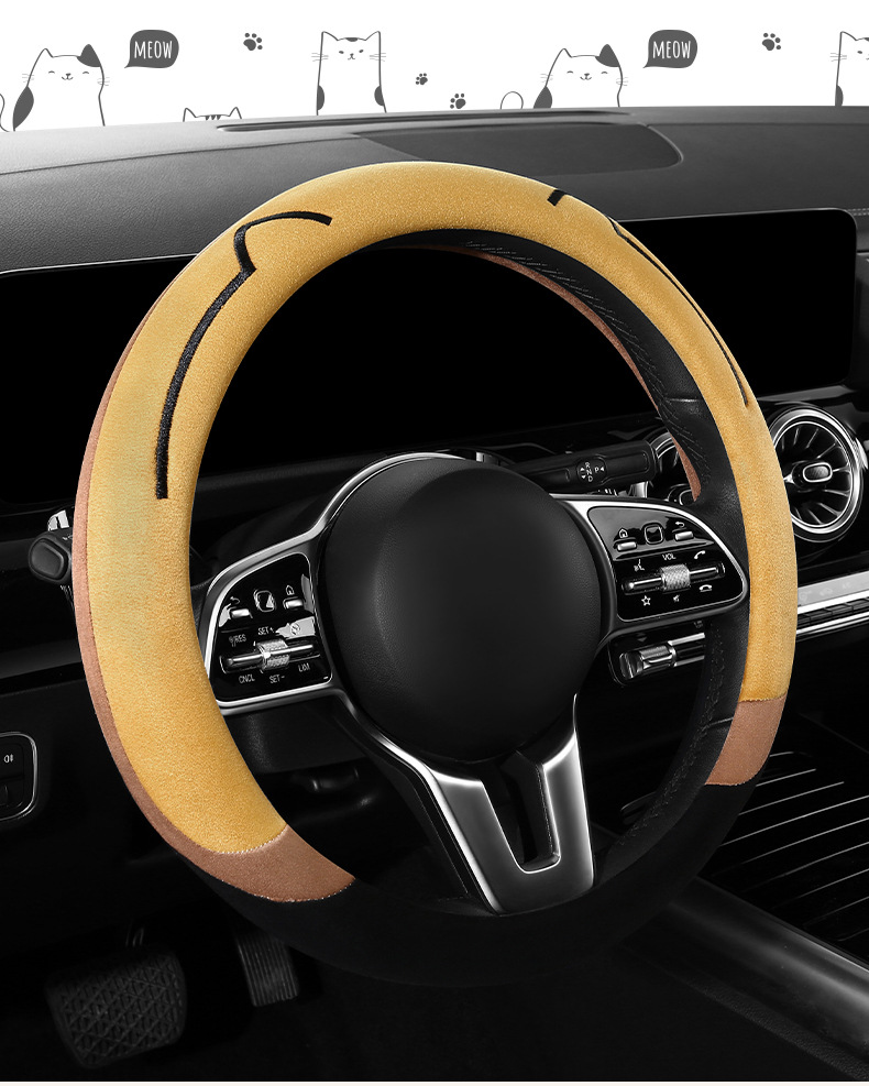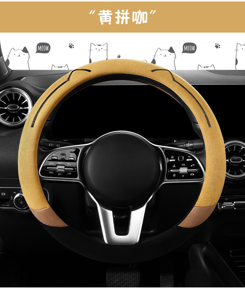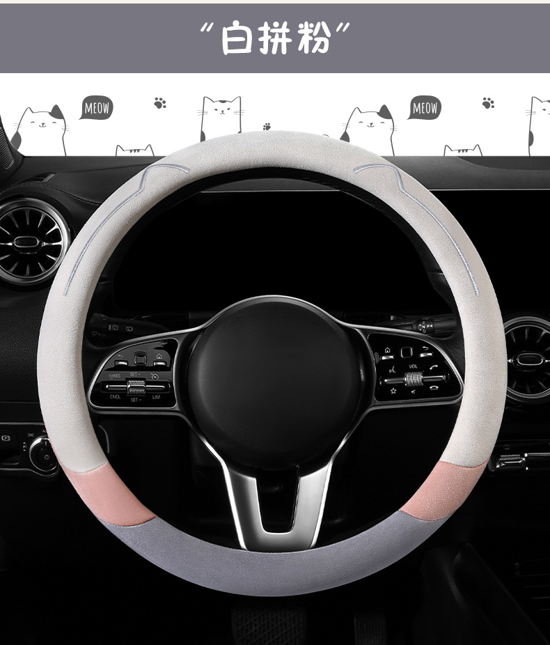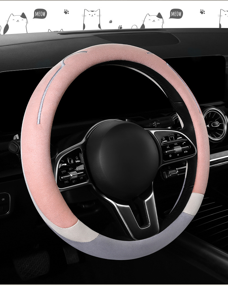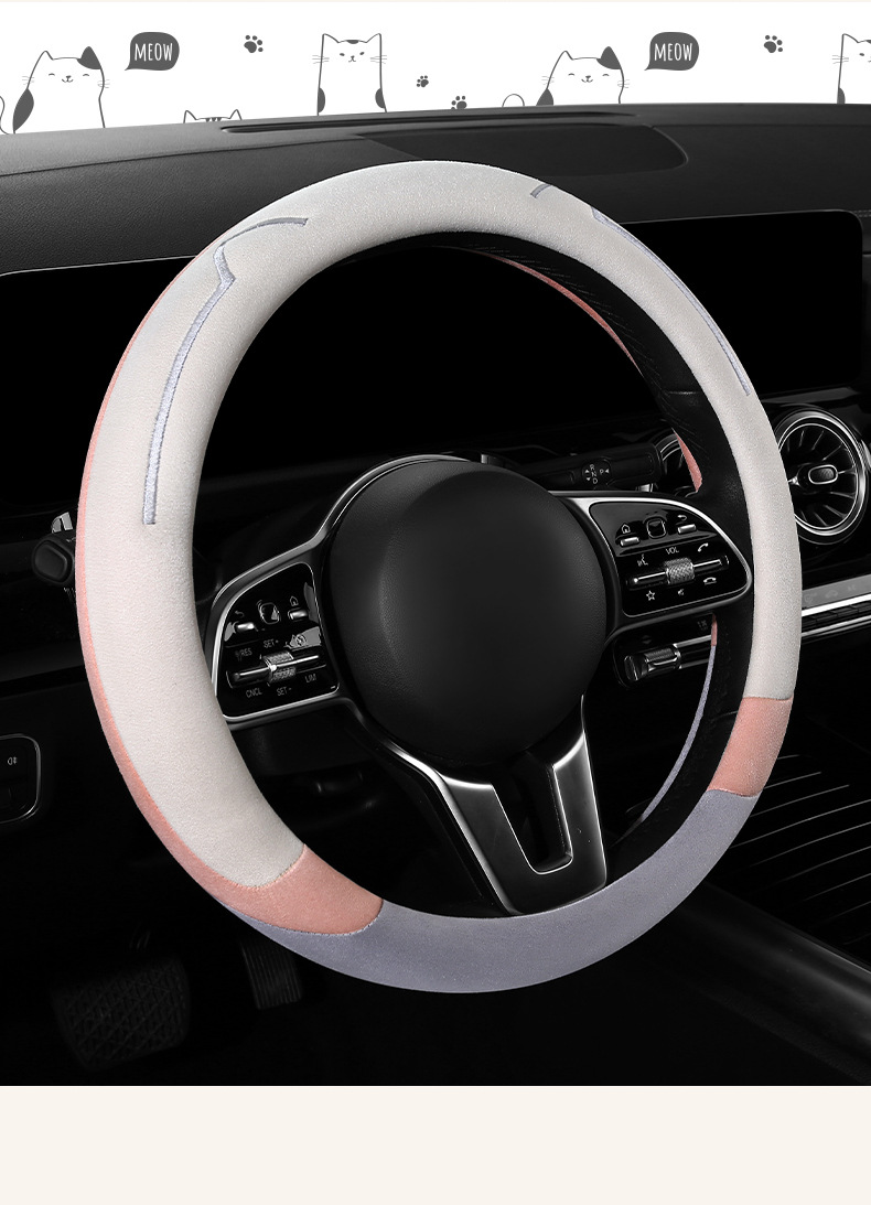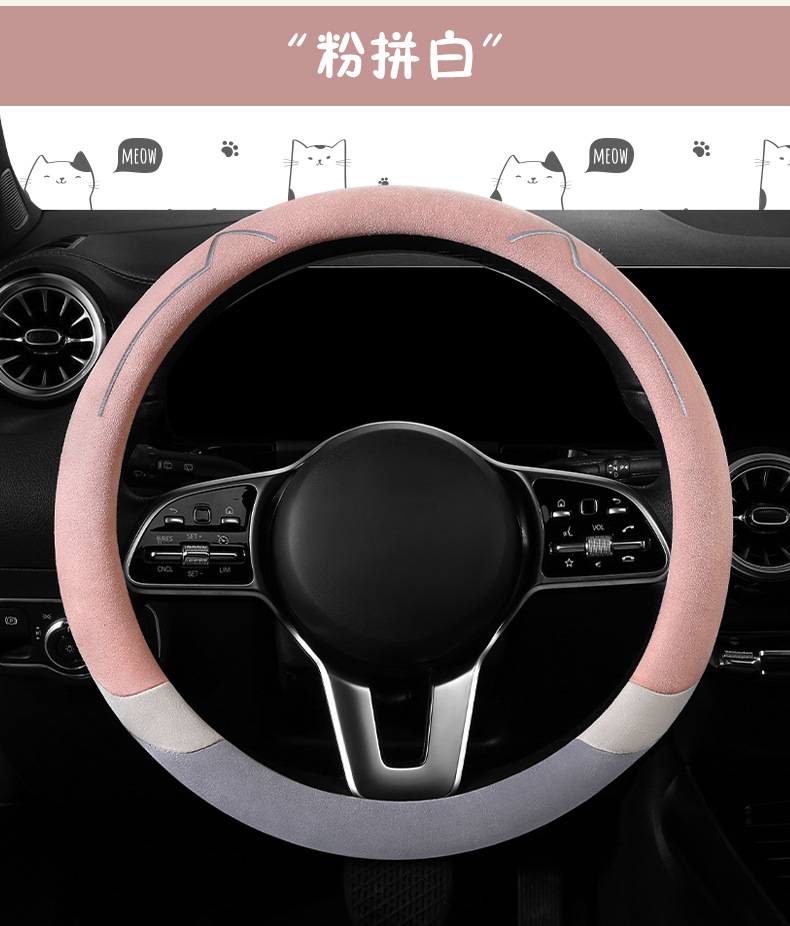 새로운 만화 고양이 스웨이드 자동차 스티어링 휠 커버 사계절 보편적 인 미끄럼 방지 땀 흡수성 O 형 D 형 자동차 핸들 커버