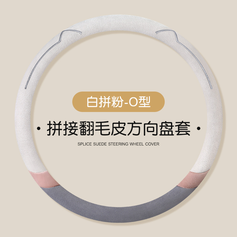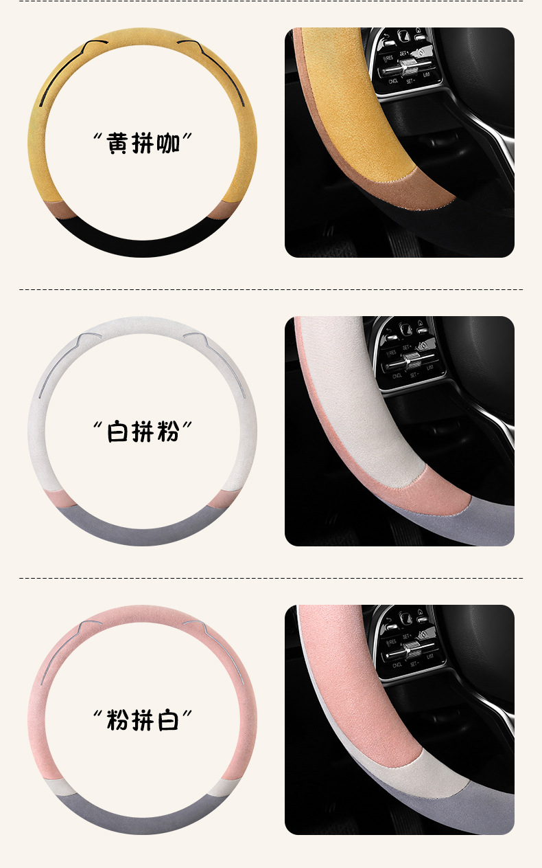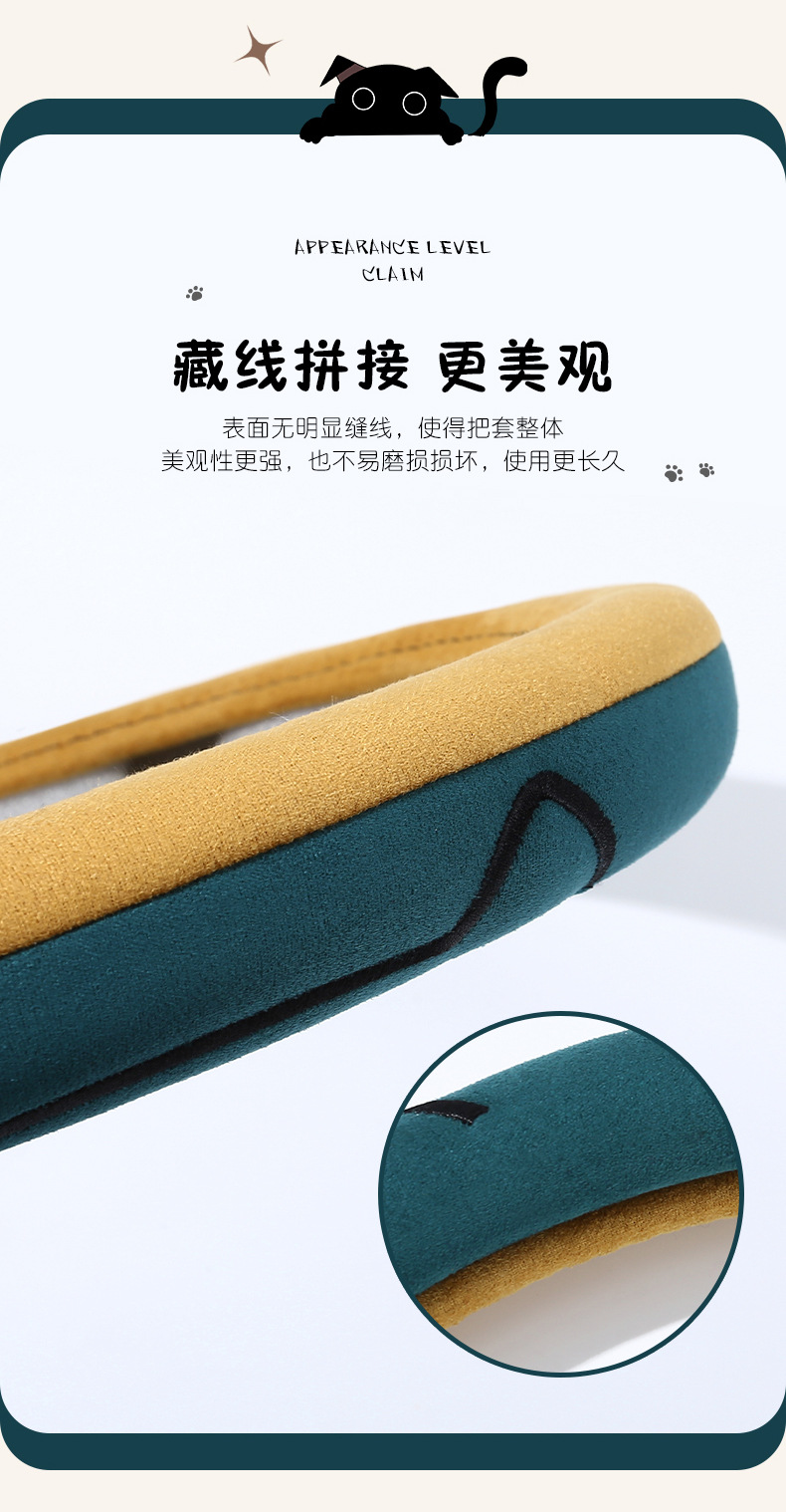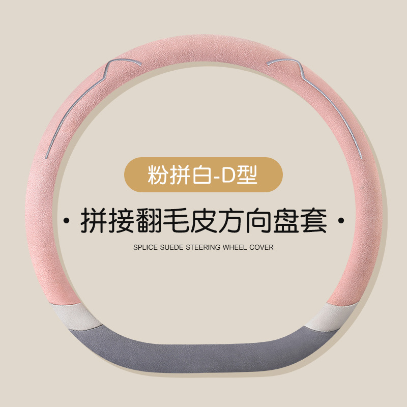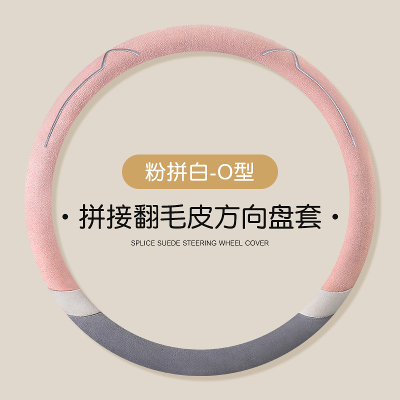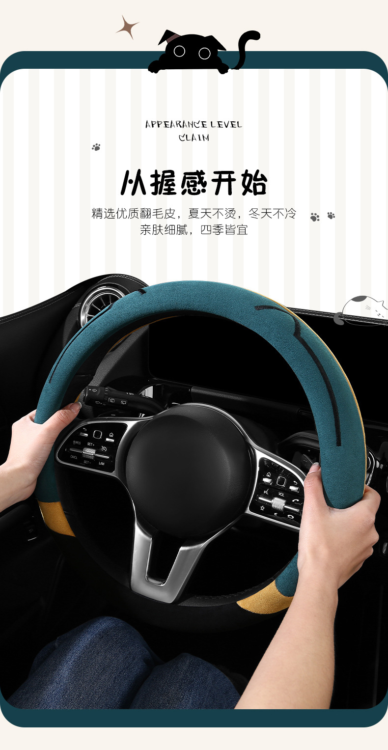 새로운 만화 고양이 스웨이드 자동차 스티어링 휠 커버 사계절 보편적 인 미끄럼 방지 땀 흡수성 O 형 D 형 자동차 핸들 커버