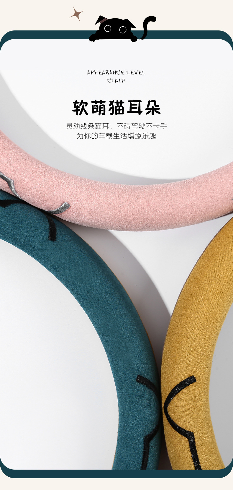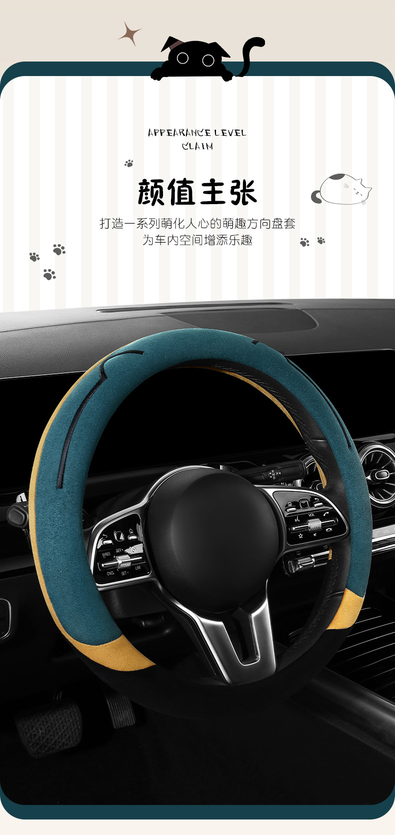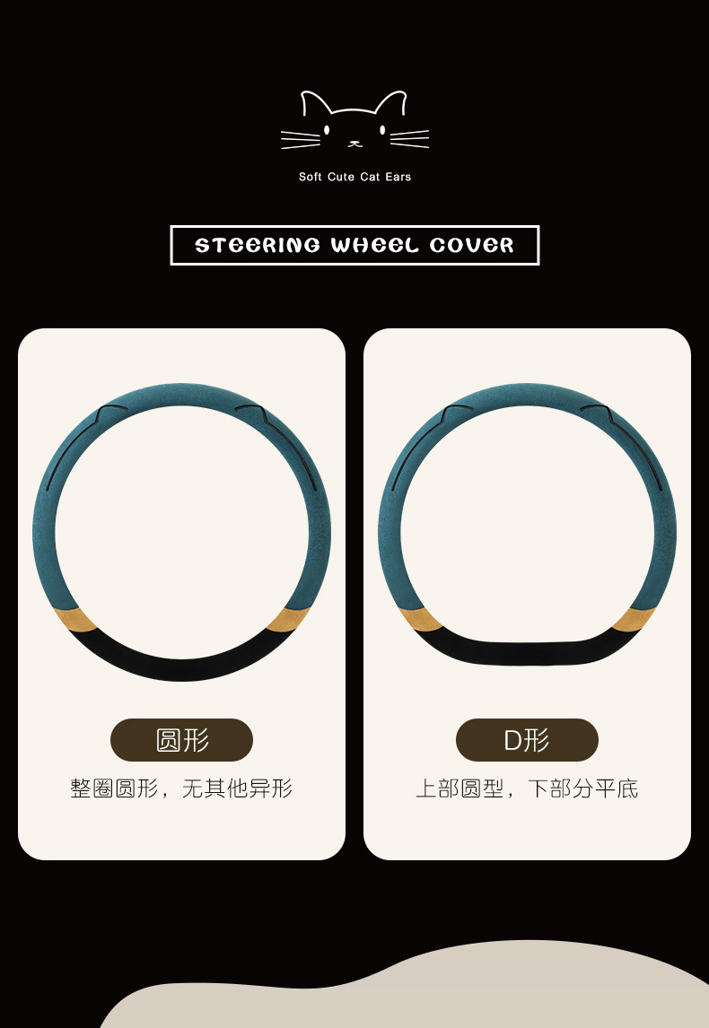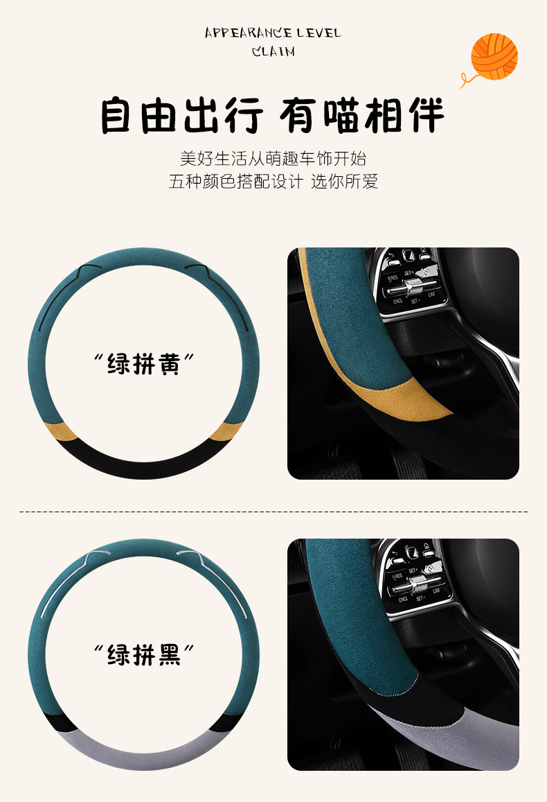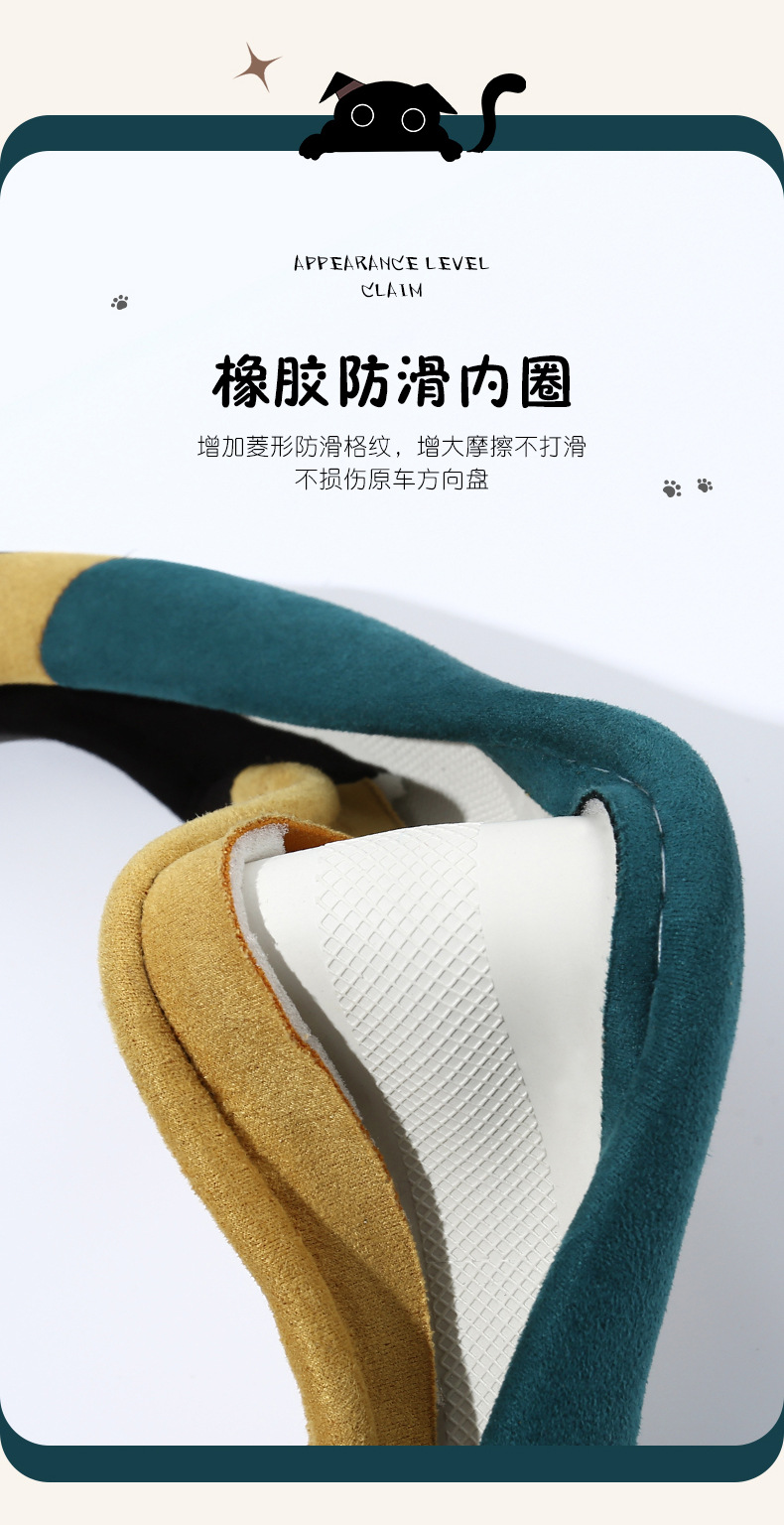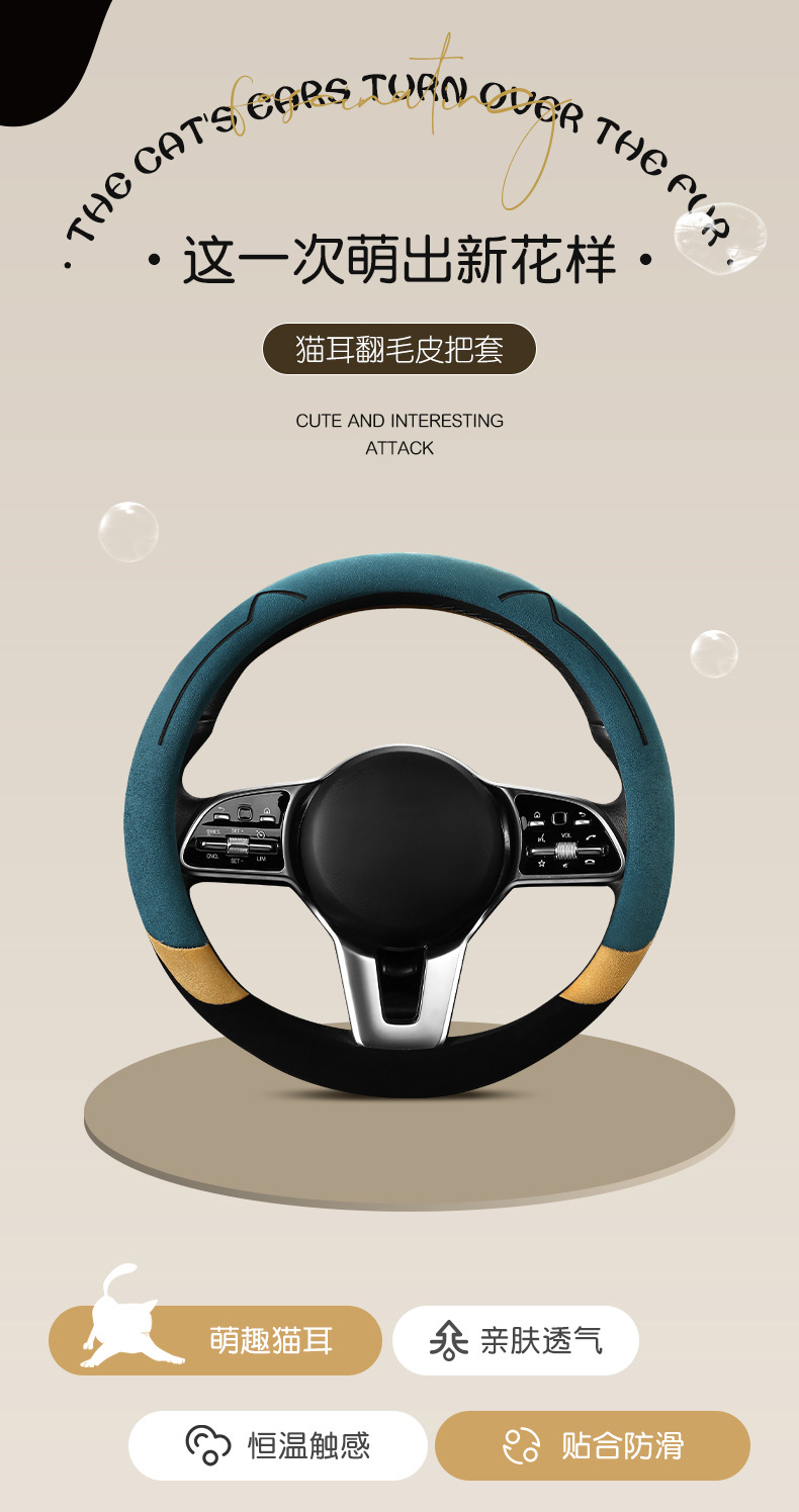 새로운 만화 고양이 스웨이드 자동차 스티어링 휠 커버 사계절 보편적 인 미끄럼 방지 땀 흡수성 O 형 D 형 자동차 핸들 커버