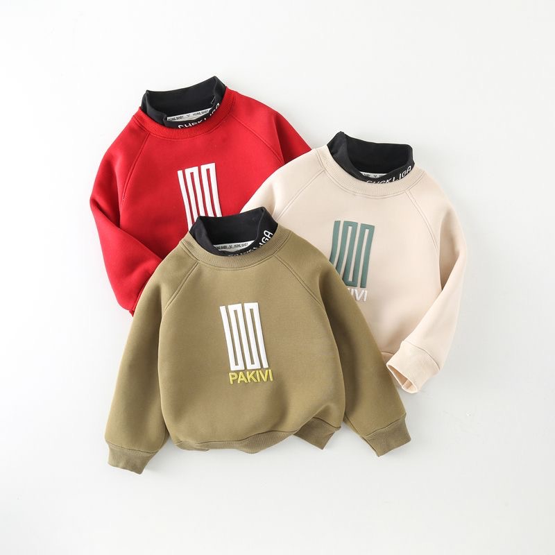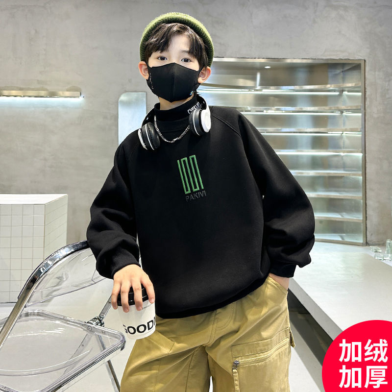 어린이 기모 땀 가을과 겨울 새로운 바느질 높은 목 편지 중 큰 어린이 캐주얼 두꺼운 따뜻한 톱 아동복스토어 가기