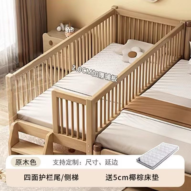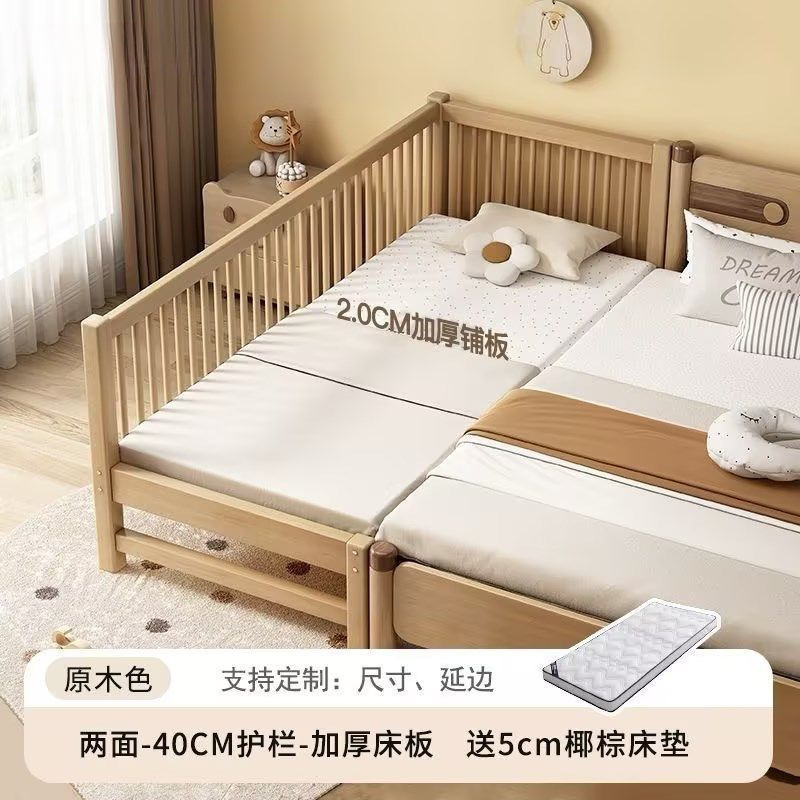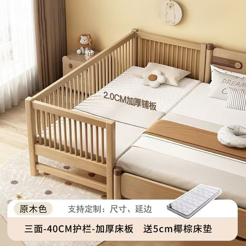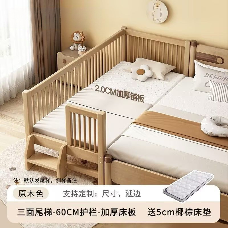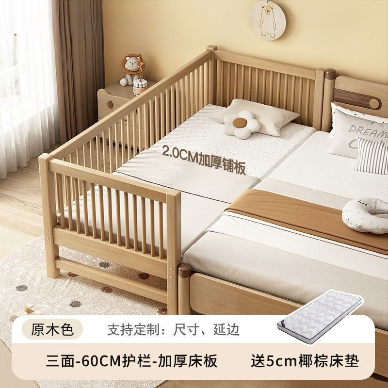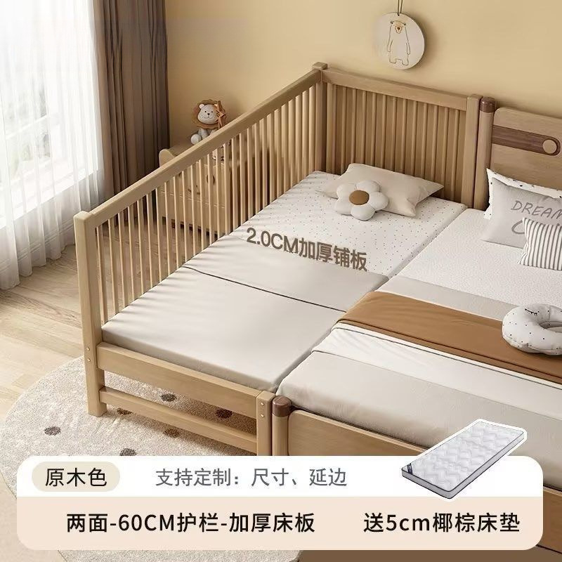 단단한 나무 아기 접합 침대 호두 어린이 침대 크립 넓은 접합 큰 침대 어린이 옆 침대 가드 레일스토어 가기