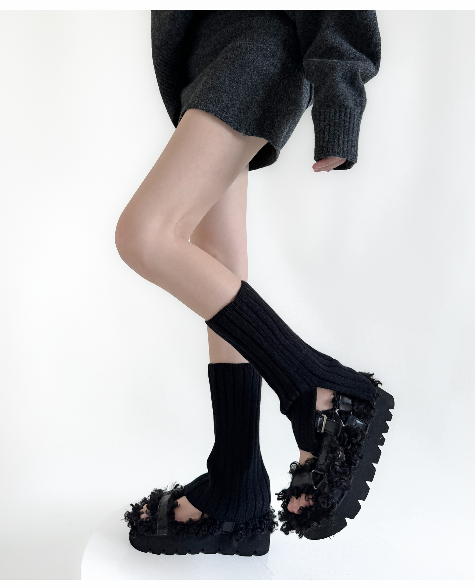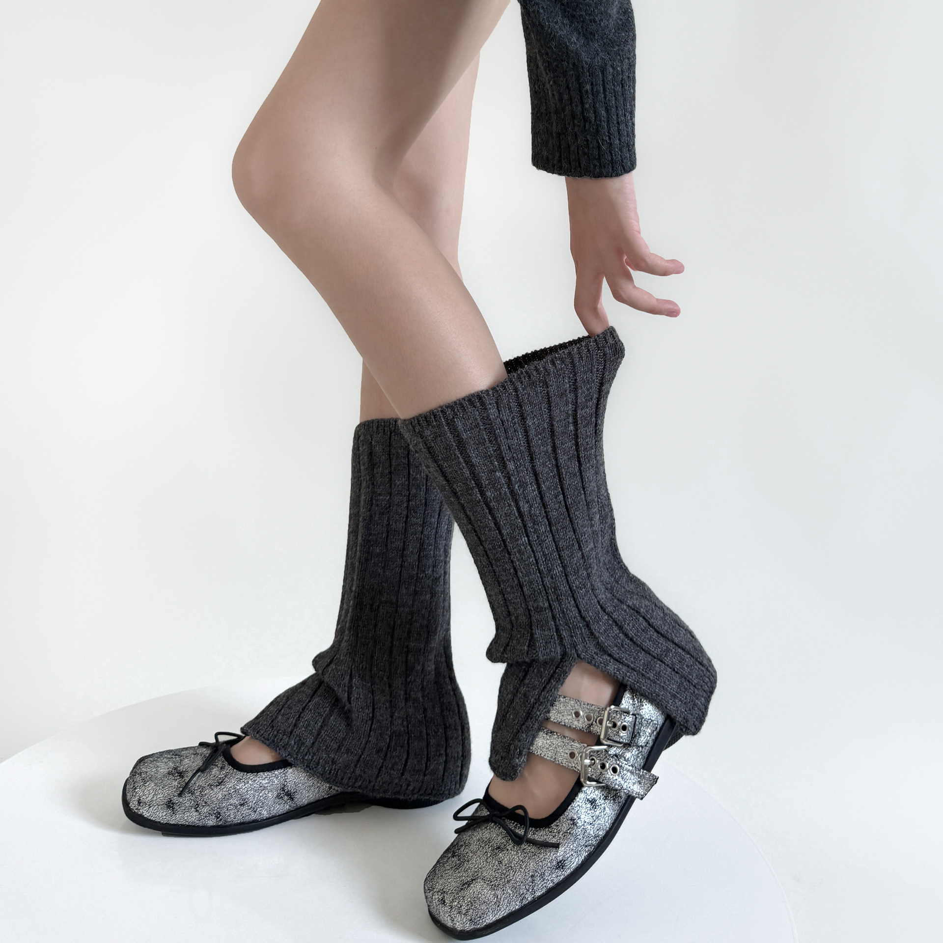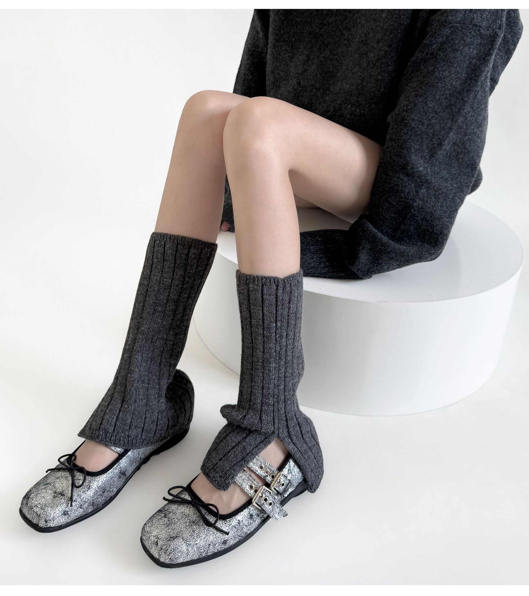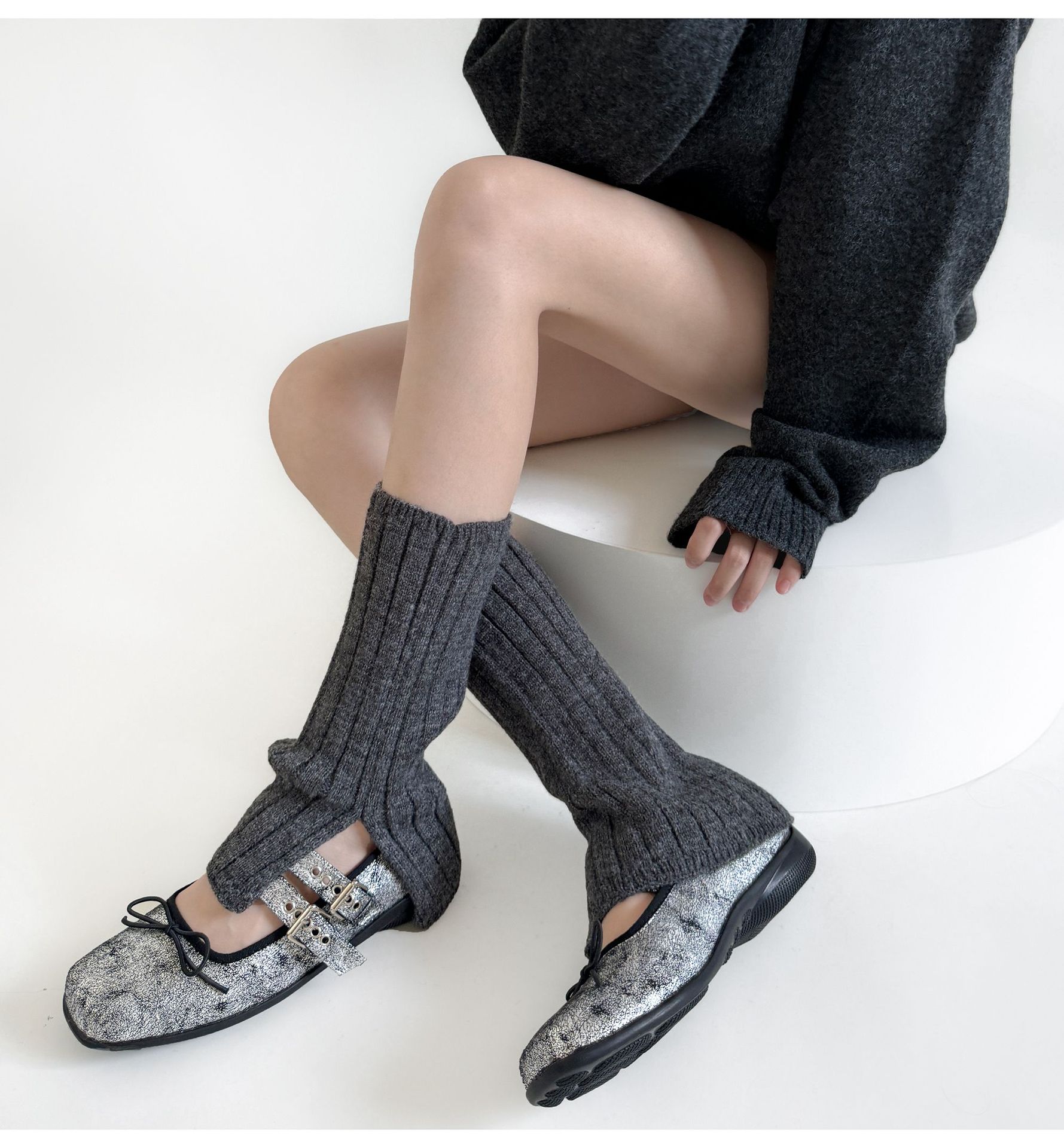 가을과 겨울 디자인 센스 짧은 분할 양말 세트 여성용 와이드 스트립 쇼 스태킹 다리 커버 올 매치 따뜻한 니트 부츠