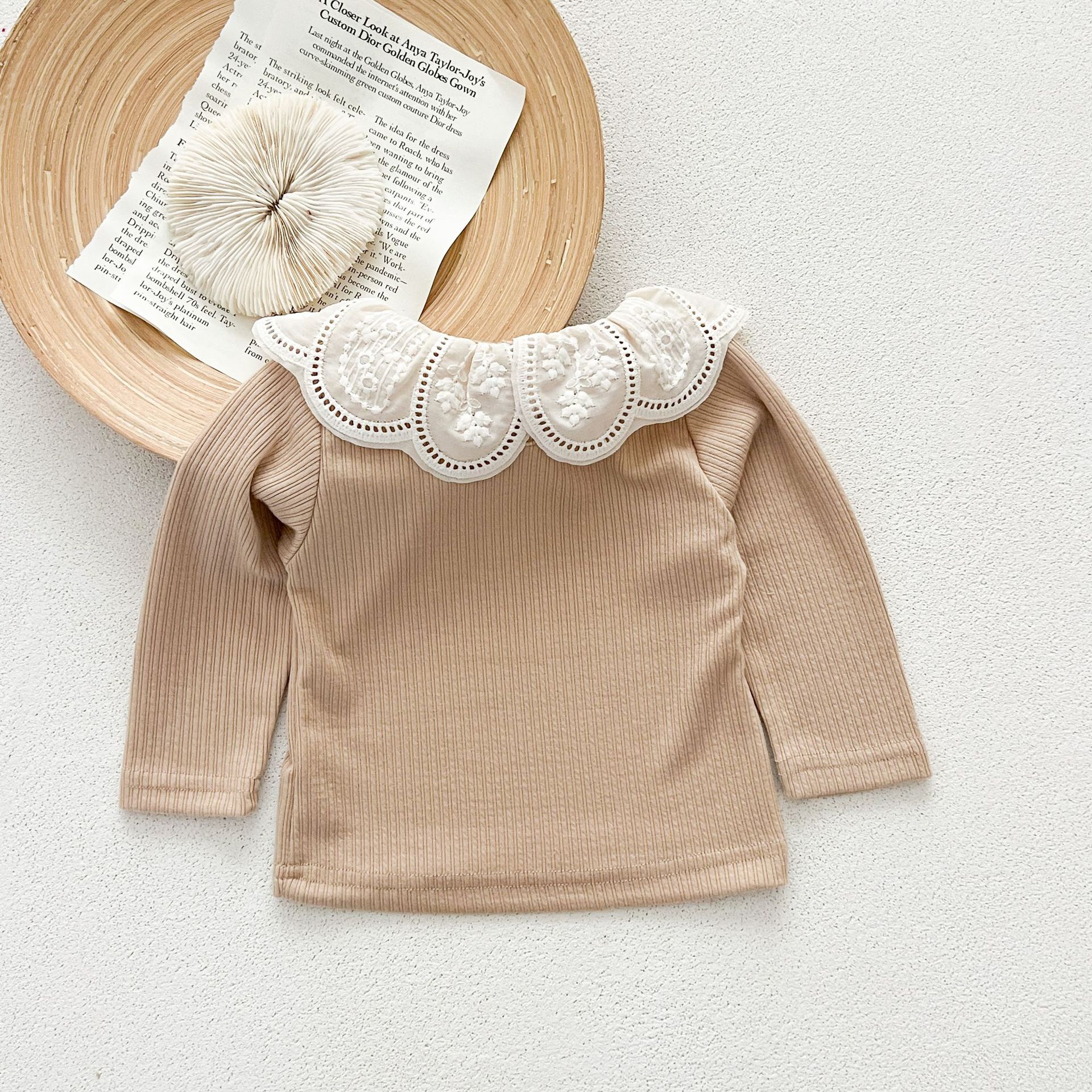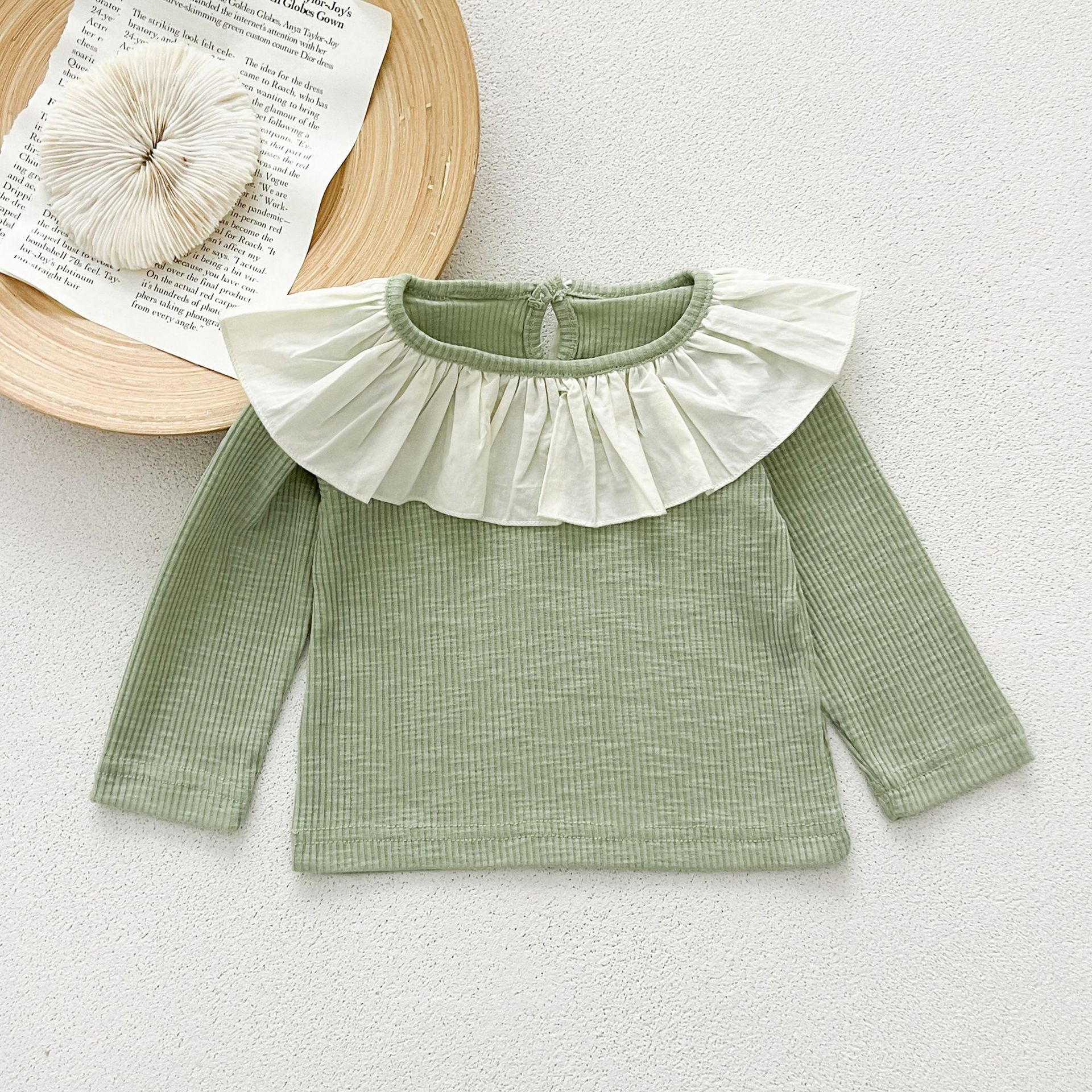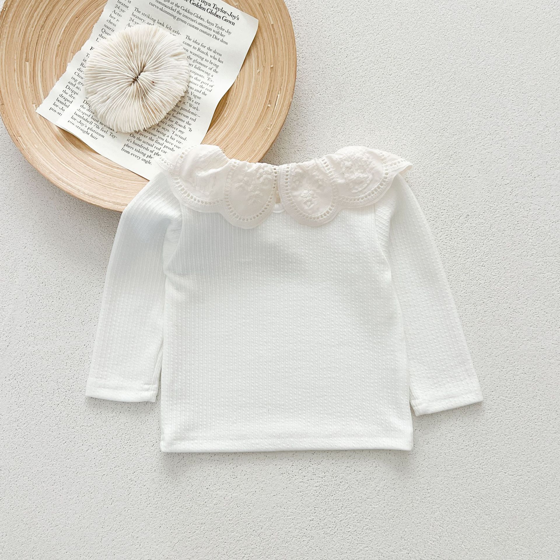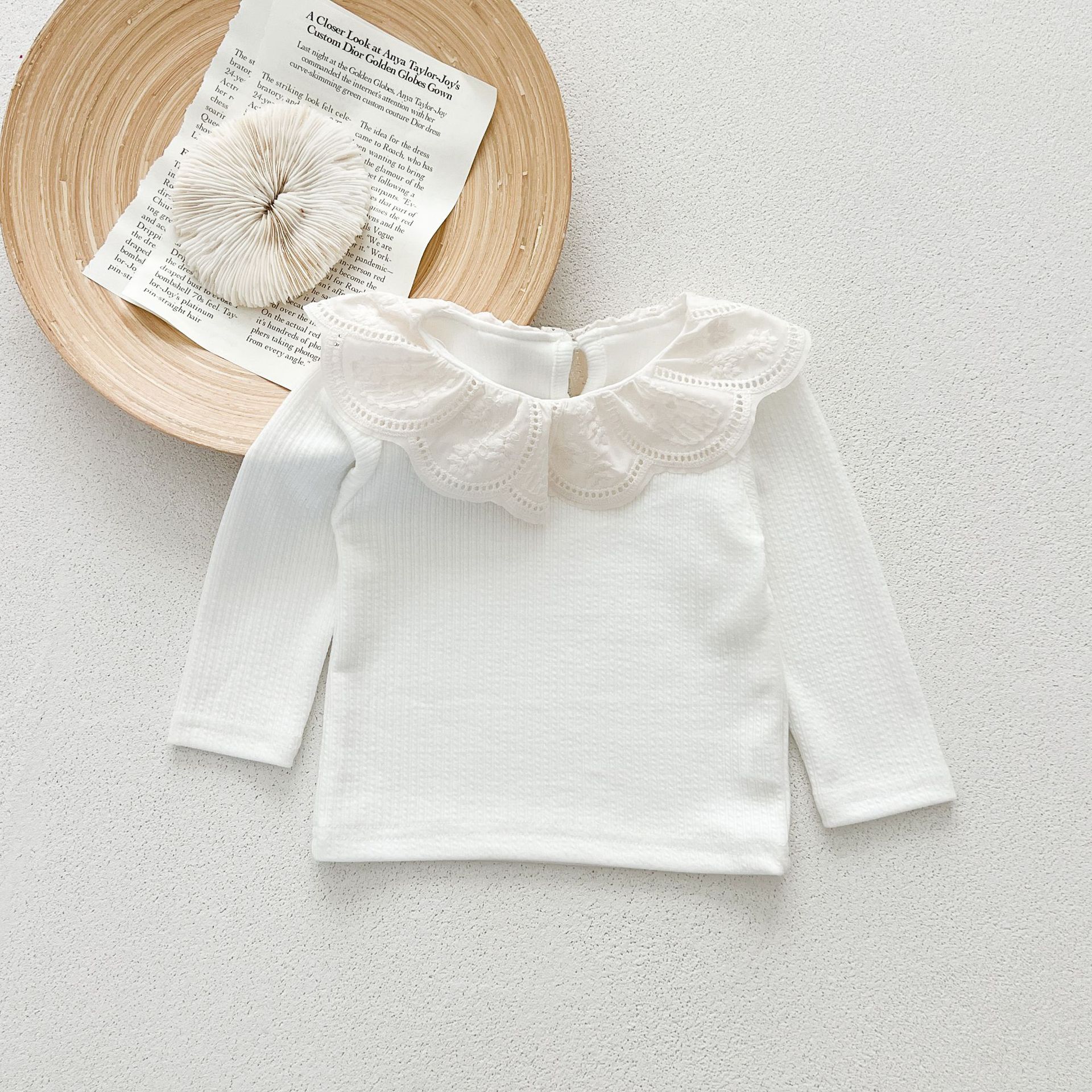 Ins 봄과 가을 달콤한 인형 칼라 스타일리쉬 티셔츠 한국 스타일 아기 소녀 가을 연꽃 목걸이베이스 셔츠 어린이 탑스토어 가기