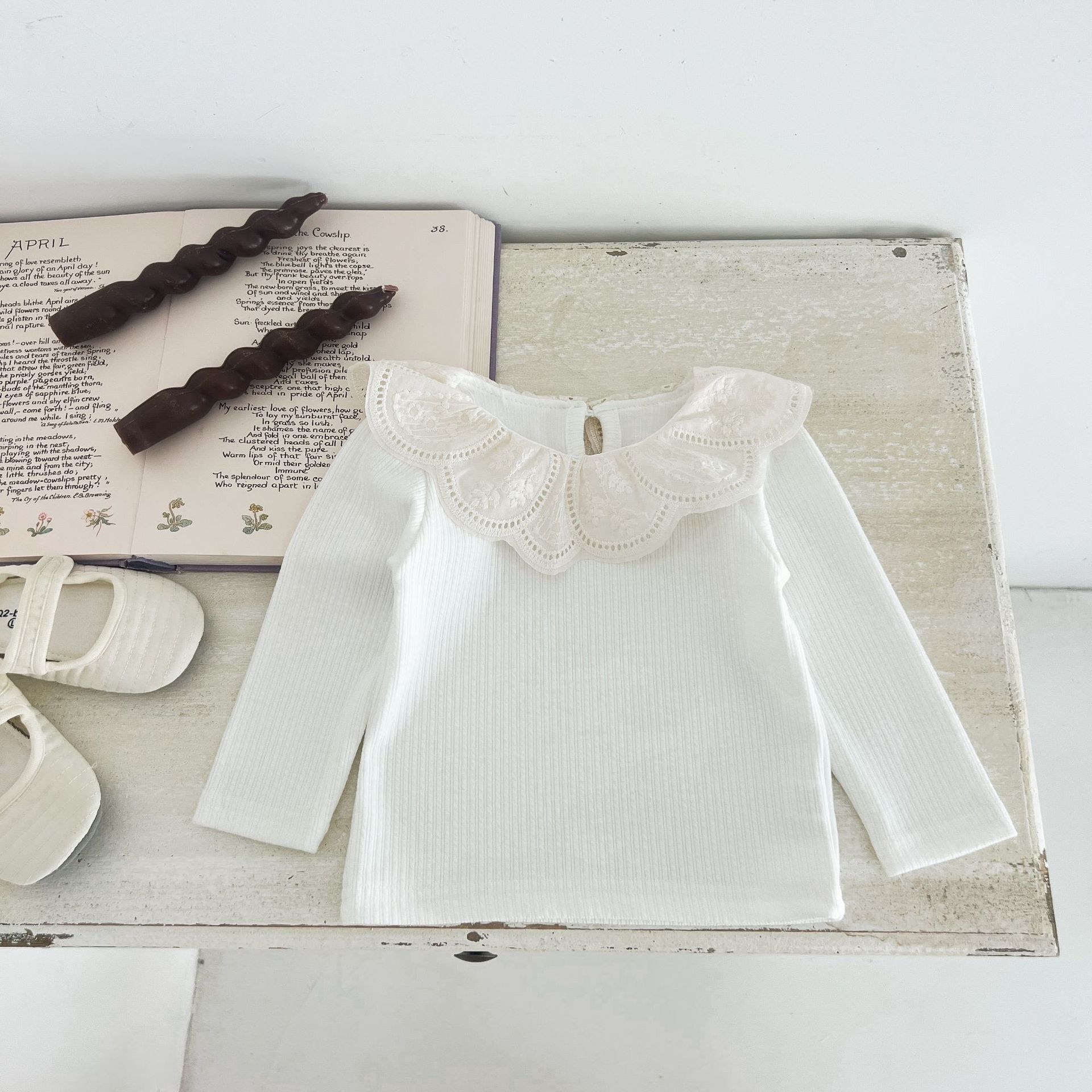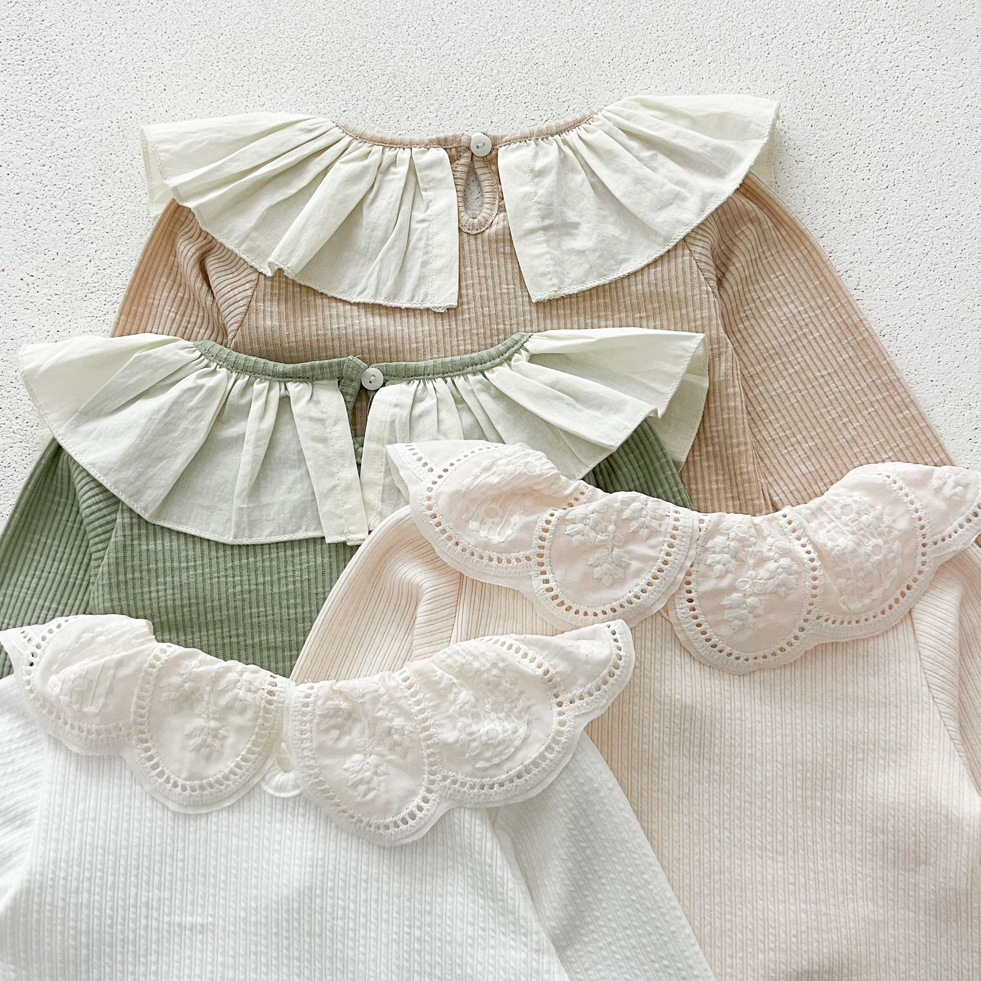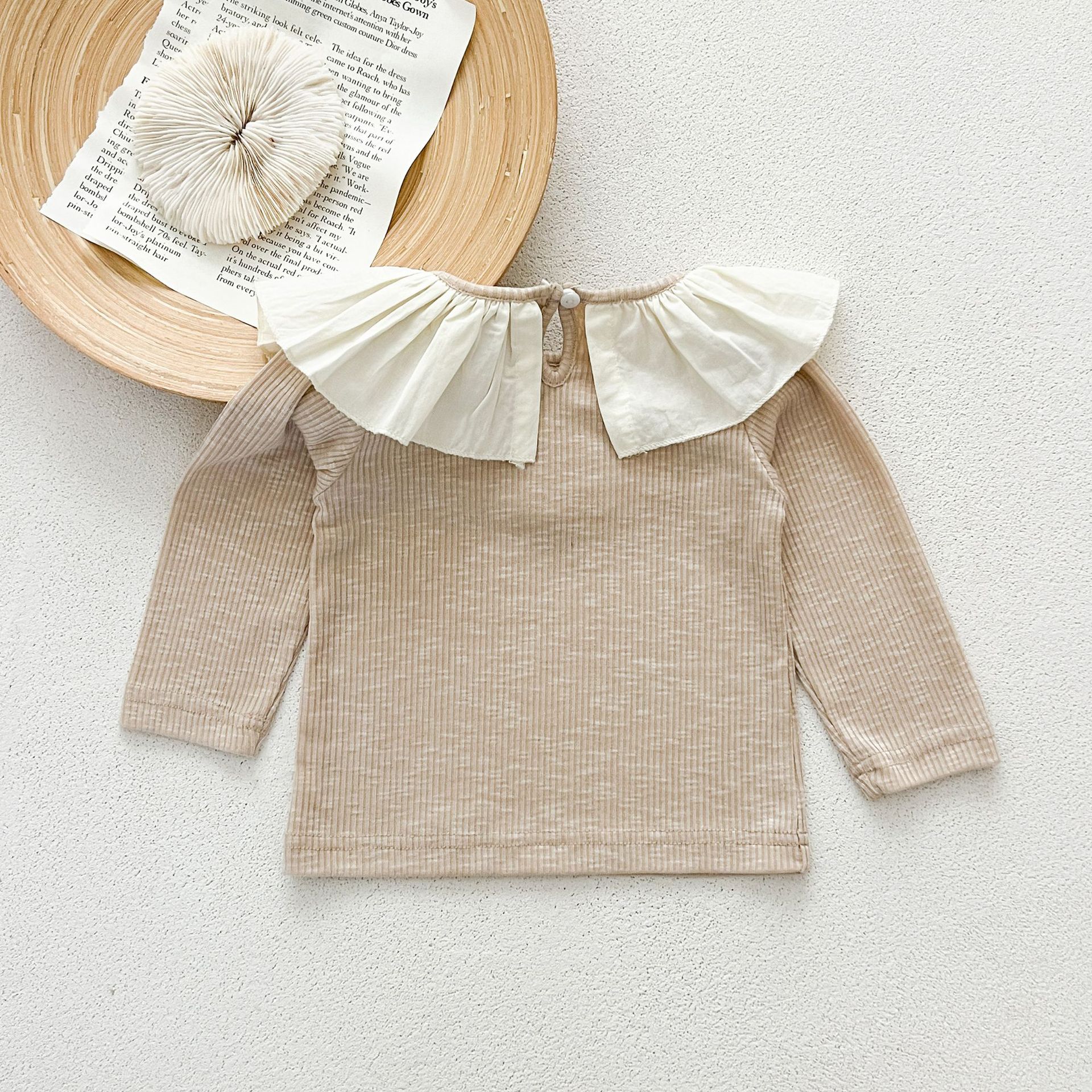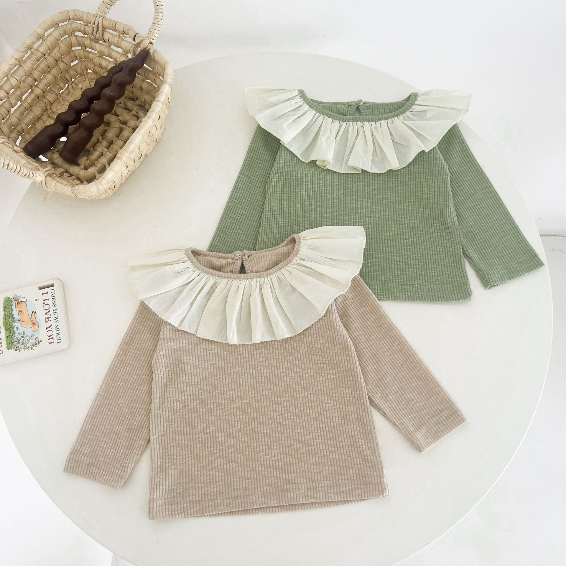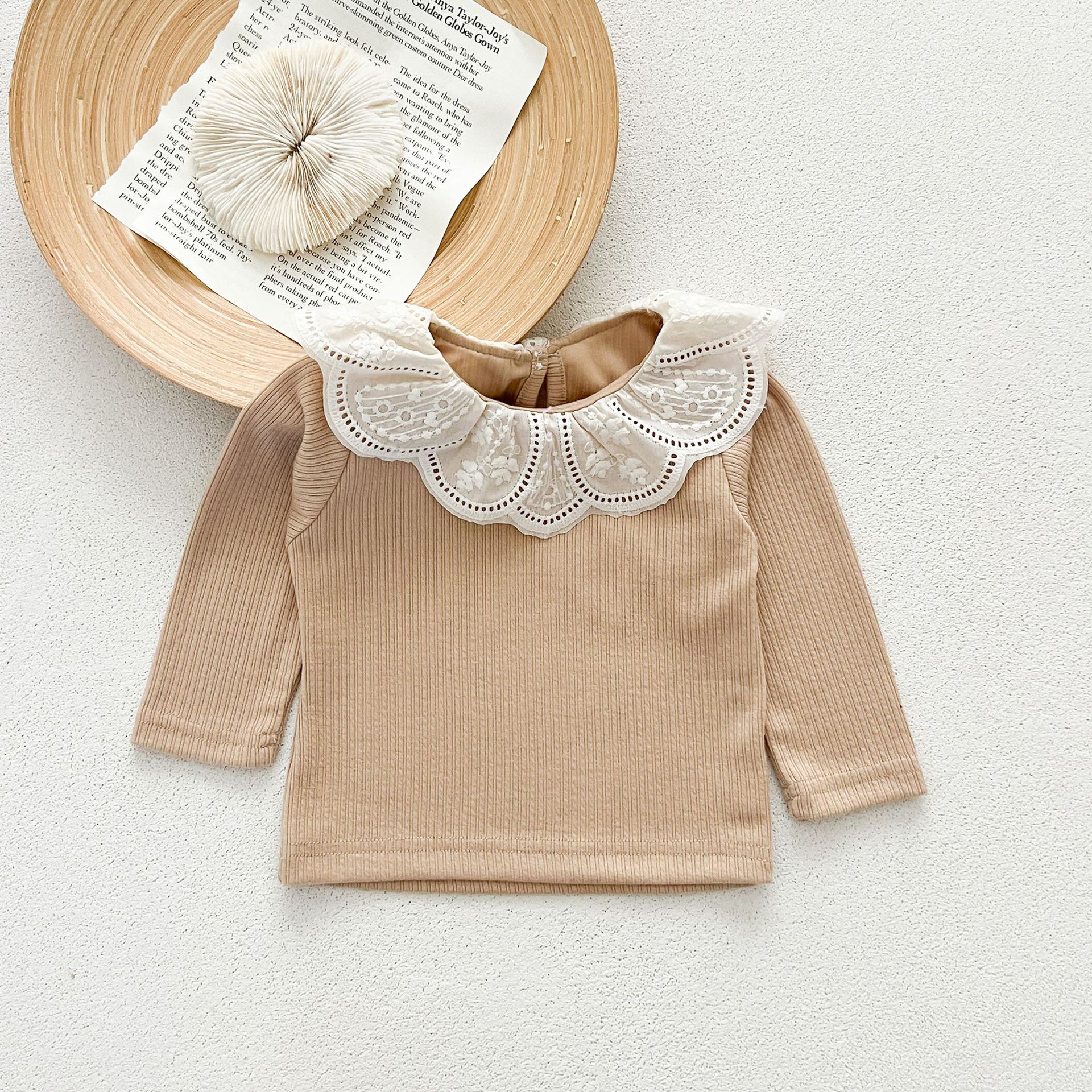 Ins 봄과 가을 달콤한 인형 칼라 스타일리쉬 티셔츠 한국 스타일 아기 소녀 가을 연꽃 목걸이베이스 셔츠 어린이 탑스토어 가기