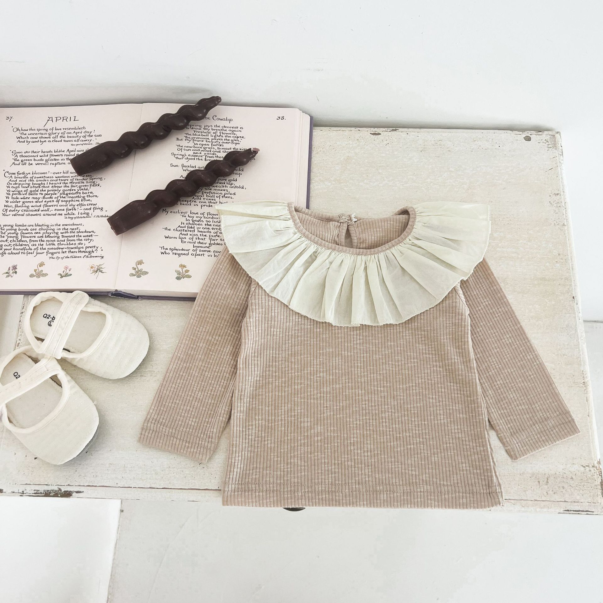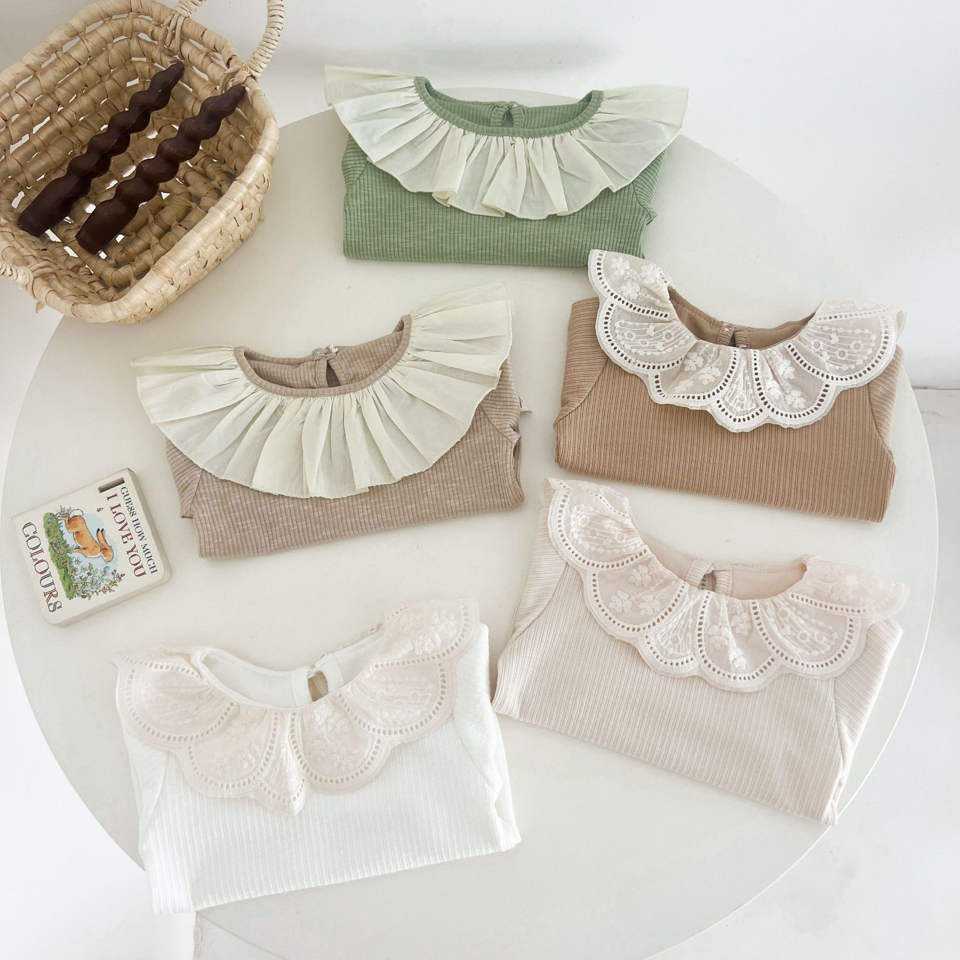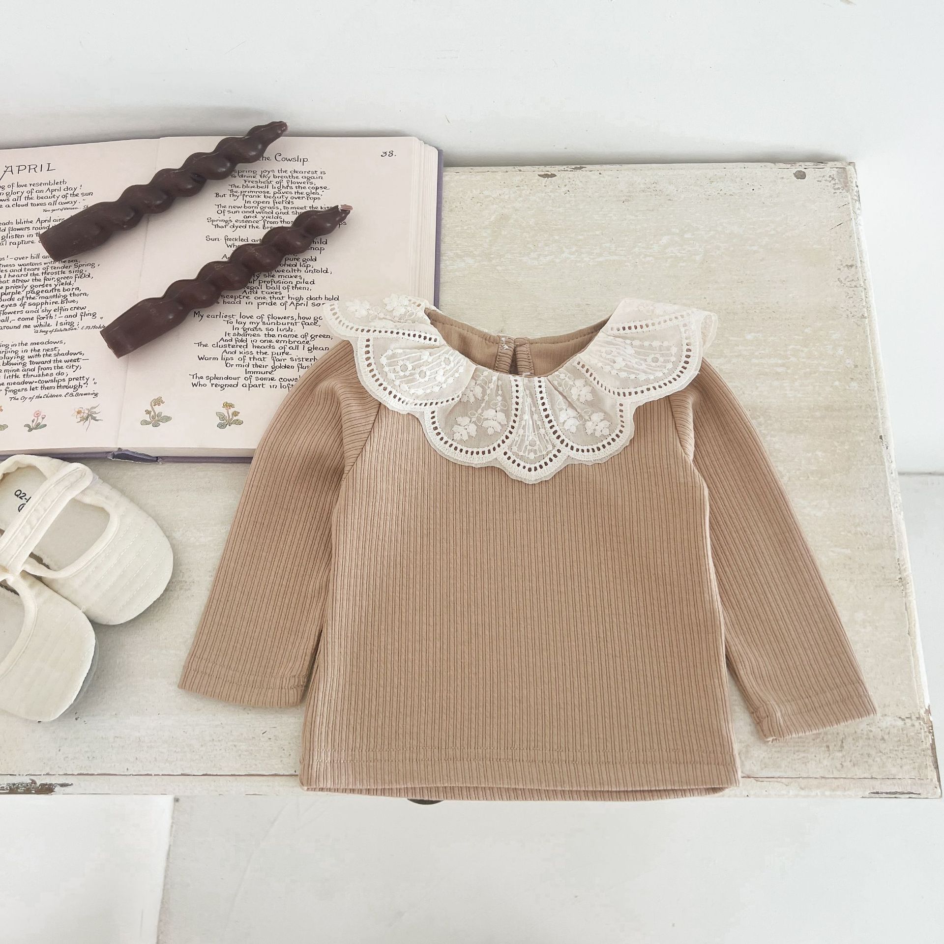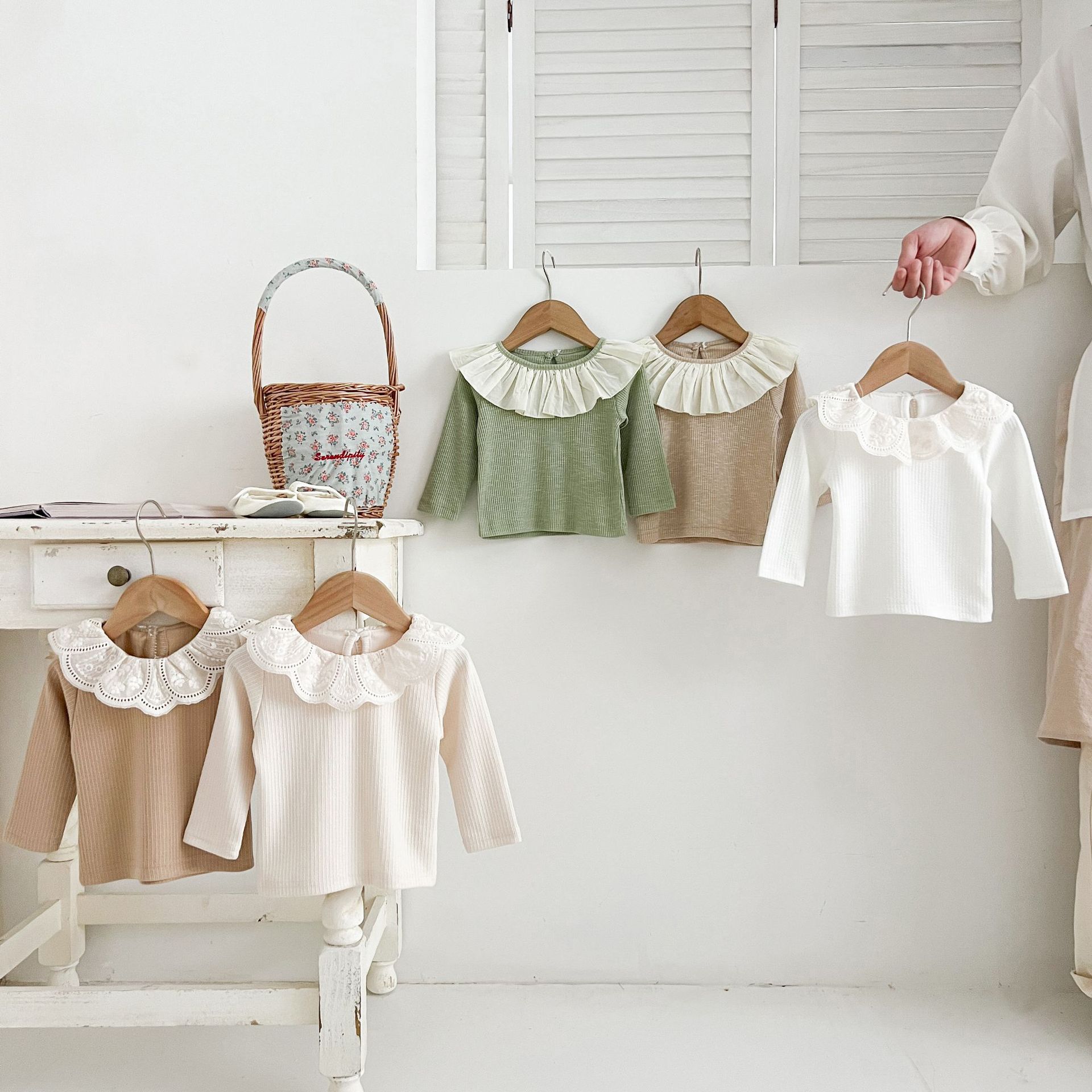 Ins 봄과 가을 달콤한 인형 칼라 스타일리쉬 티셔츠 한국 스타일 아기 소녀 가을 연꽃 목걸이베이스 셔츠 어린이 탑스토어 가기